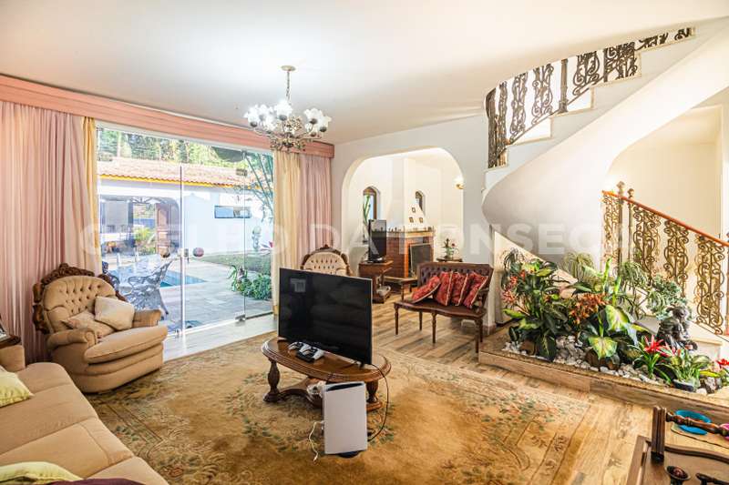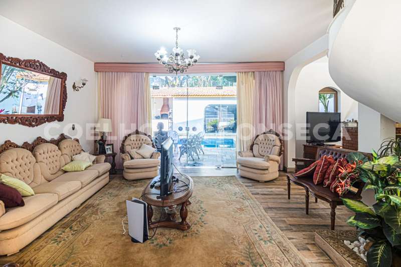 Casa no bairro Interlagos com 411m² área construída, 4 dormitório(s), 4 suíte(s), 6 vaga(s), 5 banheiro(s), piscina, escritório, dep. de empregados, varanda, pé direito duplo.