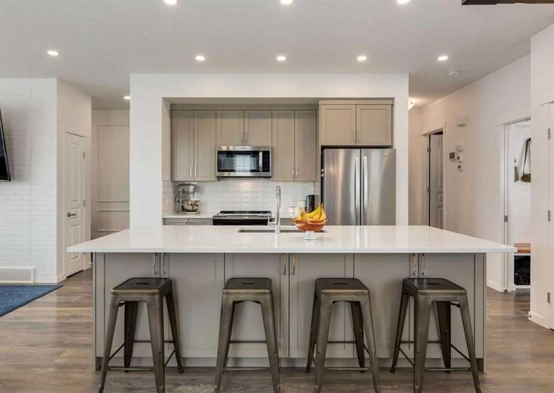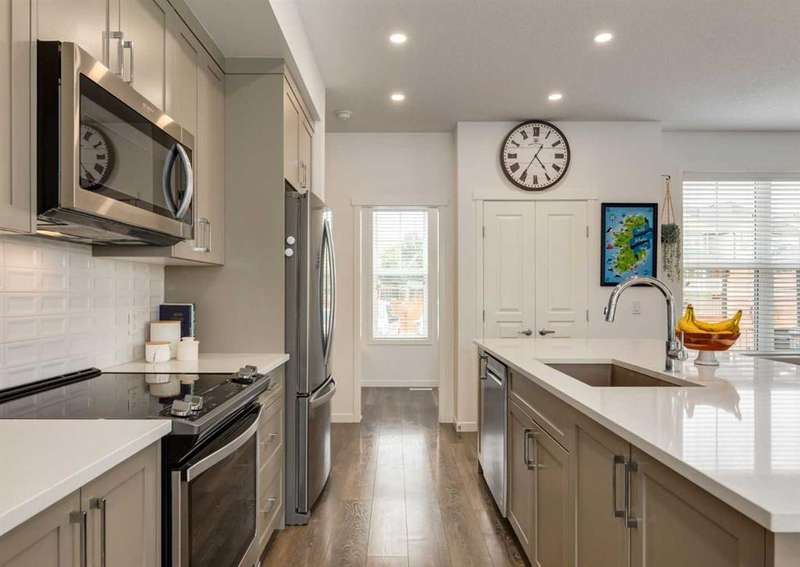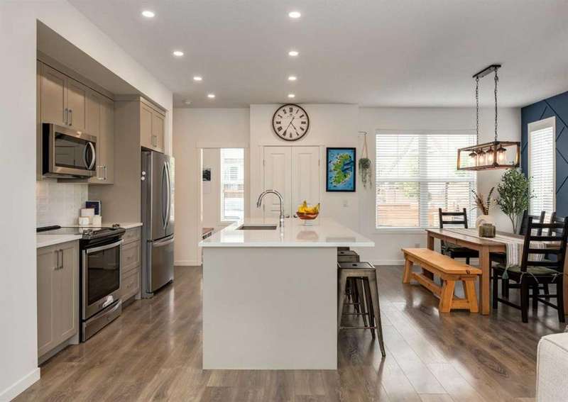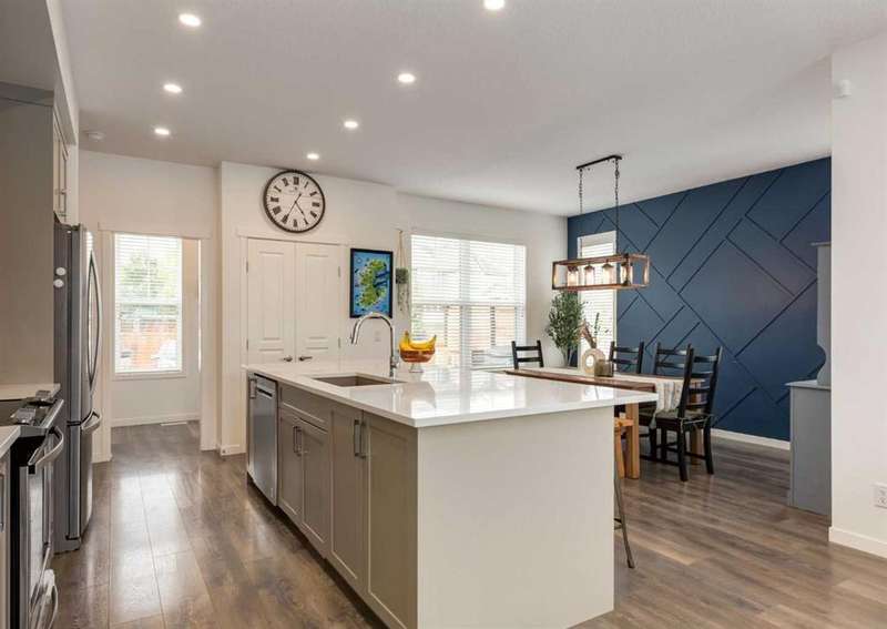 Welcome to Your Dream Home in Mahogany! This stunning, move-in ready home sits on a large oversized corner lot in the community which offers incredible space, privacy and endless potential for outdoor living. From the moment you step inside, you will notice the bright, open-concept layout designed for both everyday living and stylish entertaining. The heart of the home is a chef-inspired kitchen featuring an oversized quartz island, upgraded cabinetry, stainless steel appliances and generous storage. Whether you are hosting guests or enjoying a quiet night in, this kitchen is made to impress. The main floor also offers a spacious dining area, a cozy living room and a stylish powder room, all enhanced by luxury vinyl plank flooring and designer feature walls that add a touch of modern sophistication. Thoughtful design continues with a welcoming foyer, a convenient mudroom and central air conditioning for year-round comfort. Upstairs, relax in your elegant primary suite, complete with a walk-in closet and a luxurious 4-piece ensuite featuring dual sinks. Two additional bedrooms, another full bath and an upper level laundry room add both functionality and ease to your daily routine. Step outside to your back deck with BBQ gas line, overlooking a massive backyard which is perfect for entertaining, playing, or simply enjoying your own private outdoor oasis. Located just steps from Mahogany Lake and the Beach Club, you will enjoy exclusive access to beaches, paddle boarding, a fire pit and more. Plus, you are minutes from Stoney Trail, top-rated schools, shopping, dining, Seton YMCA, South Health Campus and all the amenities that make Mahogany one of Calgary’s most sought-after communities. This beautifully maintained home checks all the boxes - location, lifestyle and luxury. Don’t miss your chance and schedule a private showing today!