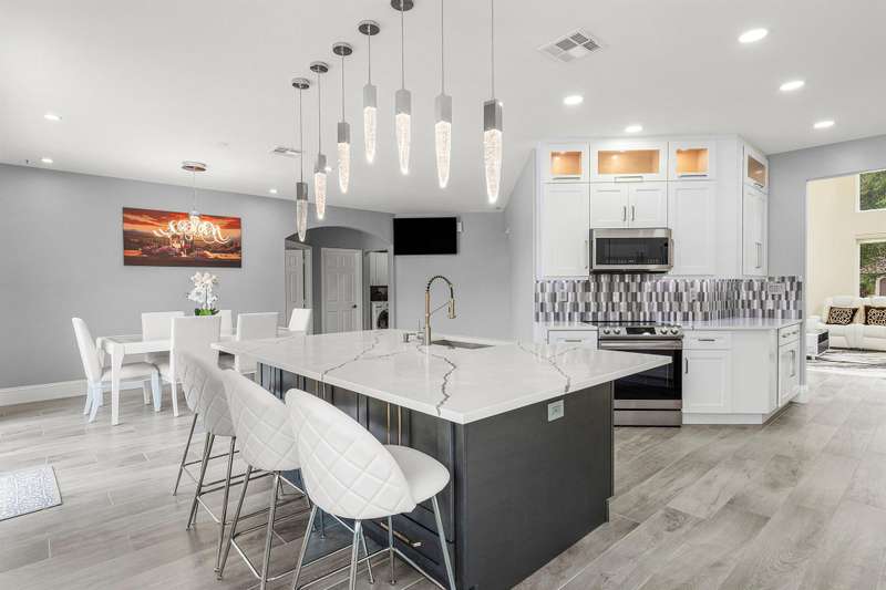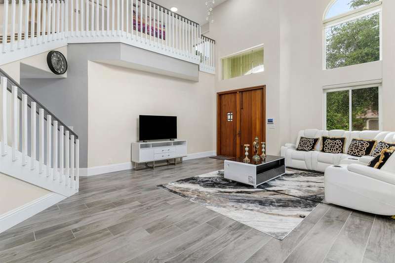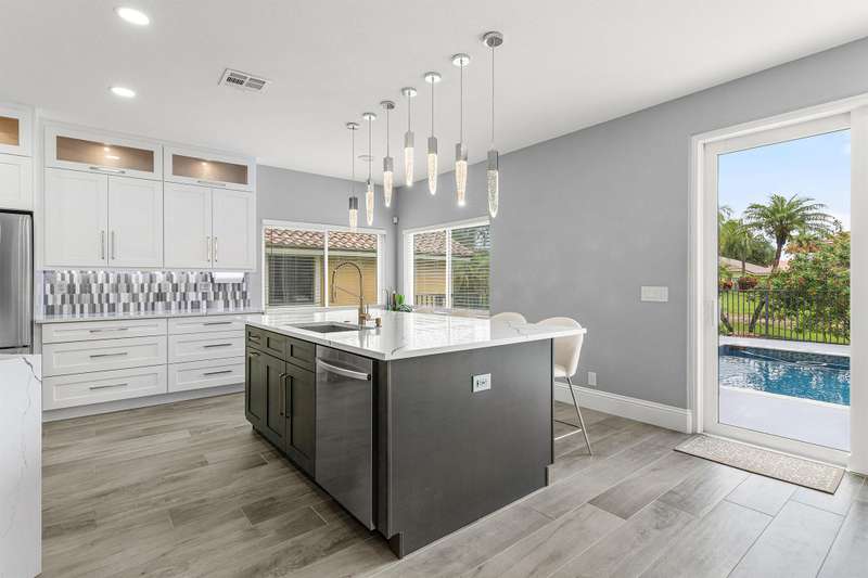 Sophisticated modern living 4BR/3BA waterfront home with a brand new roof, pool, and oversized three car garage. Light-filled interiors showcase soaring ceilings, hurricane impact windows and doors, and high end designer finishes throughout. The inviting chefs kitchen with top-tier appliances, a showpiece quartz island, and open concept flow, perfect for entertaining. The expansive primary suite is a luxurious escape, featuring an oversize layout with a private study or lounge retreat. A full bedroom and bath on the main floor provide flexible space for guests or work from home needs. Enjoy tranquil views and low HOA. Your Florida dream starts here! Coral Springs gem priced to move!