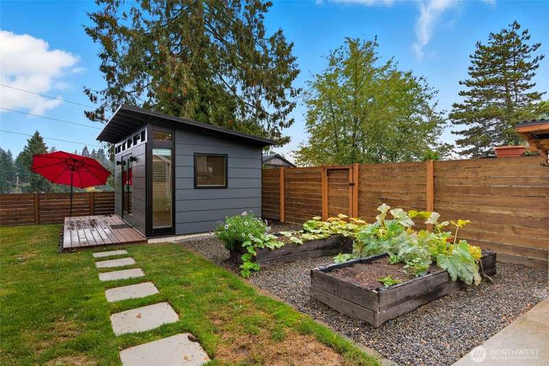 Brimming with character and modern updates, this 2-bedroom, 1-bath Bremerton rambler offers the perfect blend of charm and comfort. Situated on a corner lot next to Forest Ridge Park, the 832 sqft layout lives large with a bright, efficient design. Thoughtfully maintained, recent improvements include a completely reimagined backyard with raised garden beds, a firepit, firewood storage, and a versatile detached 10x18 bonus space that’s ideal for a home office, art studio, gym, or retreat. Fully fenced for privacy and pets, this property invites easy indoor-outdoor living. Conveniently located just minutes from Bremerton’s shops, dining, and ferry access, this move-in ready home is a rare find.