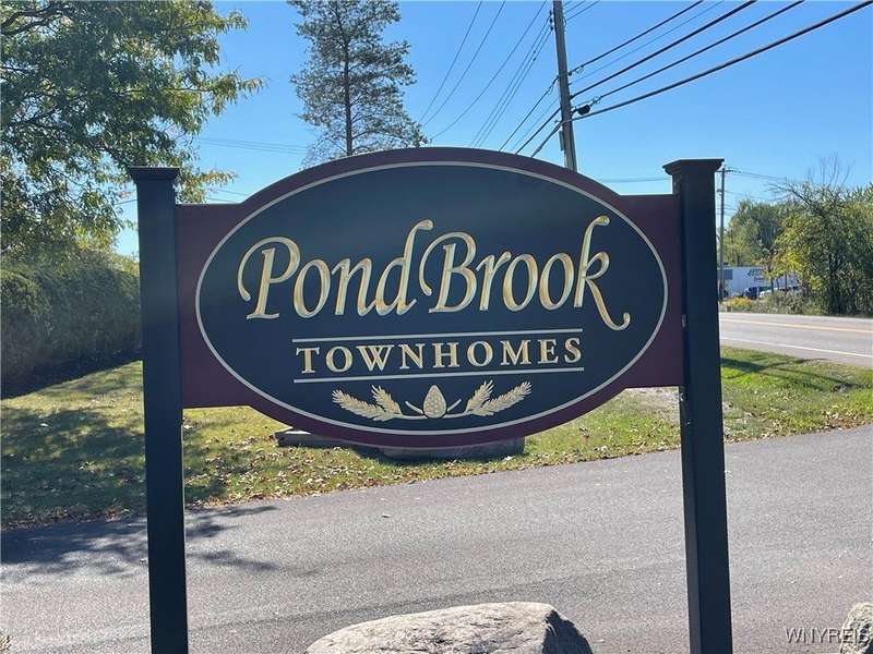 Priced to sell, Easy living ! relax and enjoy this wonderful 2 bed 2 bath townhome in the Pondbook homes in Elma, sought after 1st floor master suite ! oak kitchen (all appliances included ) kitchen eating area and separate dining/living rm combo, very generous size living room with cathedral ceilings, first floor laundry ( washer and dryer included) 2nd floor has 2nd bedroom and a nice size loft for possible office or even 3rd bedroom potential, also additional full bath could be great for guests and possible inlaw setup,, 1st floor master is large has double closets and good size bathroom with shower and soaking tub, washer and dryer also on 1st floor with half bath, full dry basement has several work benches, also has great potential for extra living space, newer high efficiency furnace, large 2 car attached garage, rear patio backs up to matured trees, great location, stones throw to Elma plaza with shops, restaurant (pizzeria) hardware store pharmacy and more, just minutes to route 400 thruway and less than 10 minutes to E Aurora village, a must see to appreciate this wonderful quiet community and the wonderful town of Elma is unbeatable, dogs or cats allowed with size limit and permission, this home could use updating but solid with great potential, update to your taste ! ( there is an assessment for roofing in the complex but this seller decided to pay it in full so that assessment will not be an extra cost for the buyer ) open Sunday 9/5 from 1-3 pm offers will be reviewed 9/8, any offers will be reviewed 9/8 at 2pm