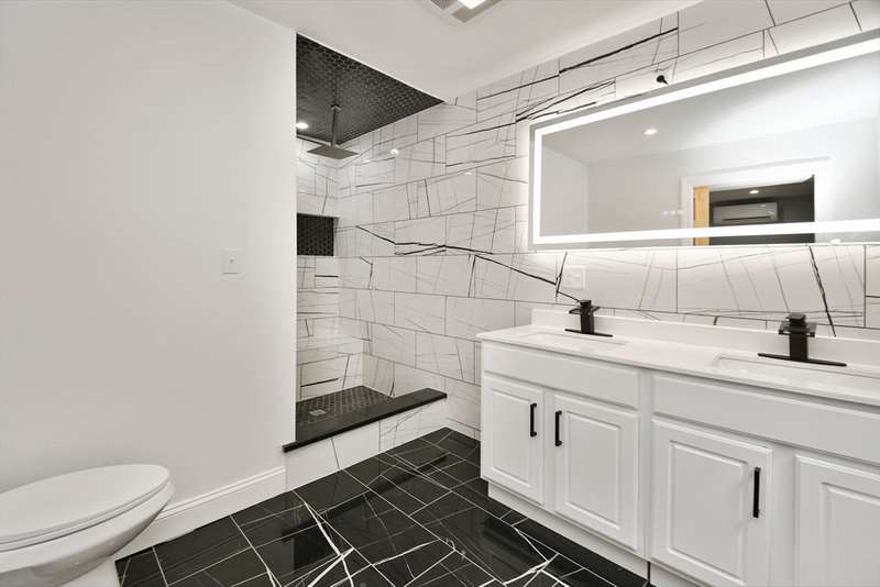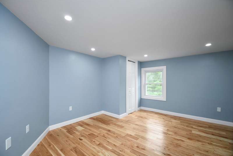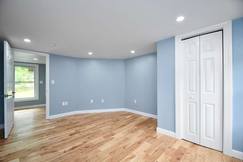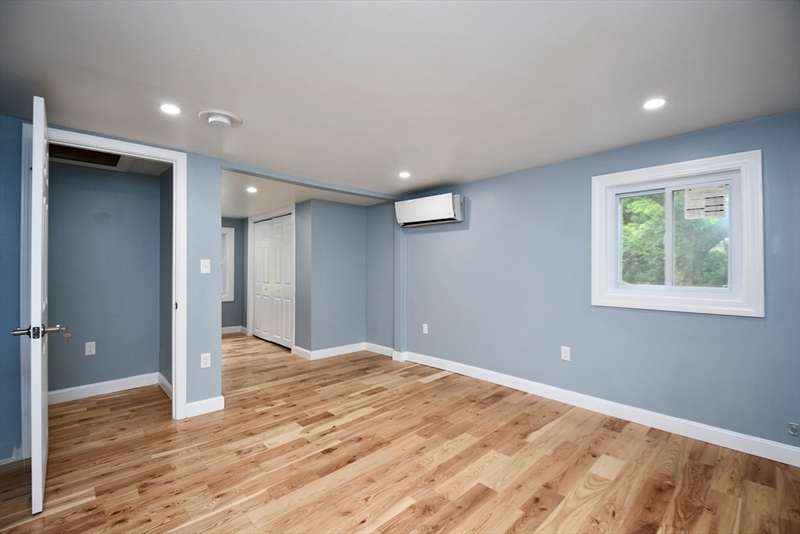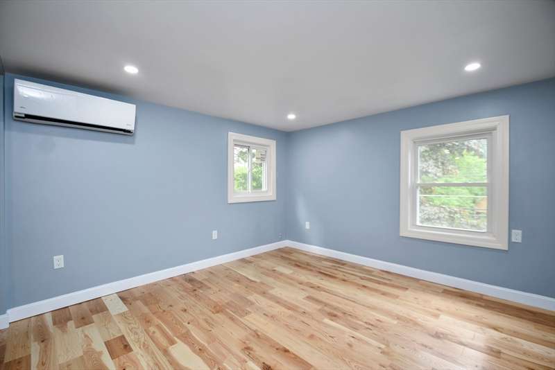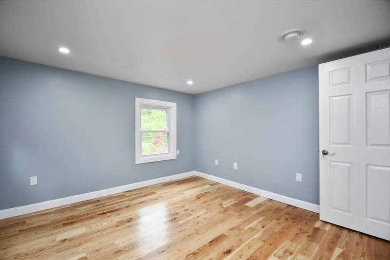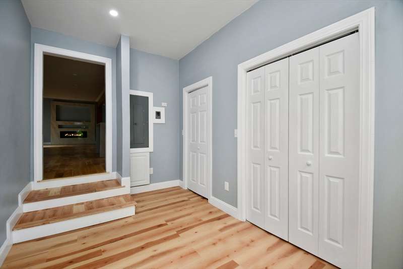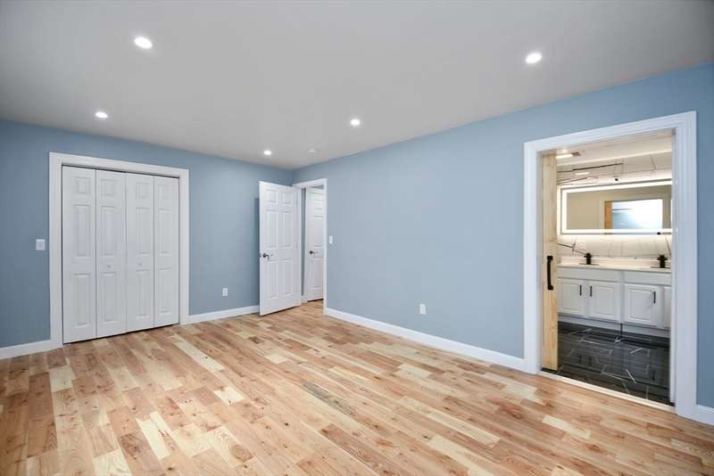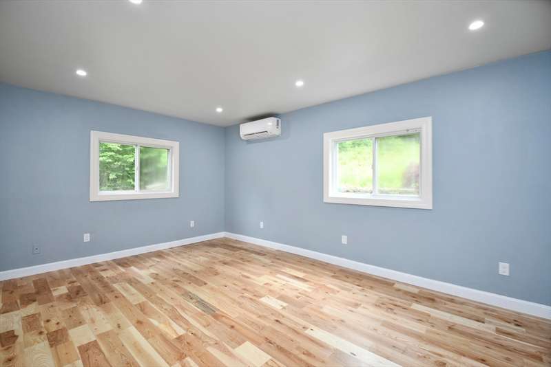 Step into this beautifully remodeled 4-bedroom, 2.5-bath home featuring a thoughtful blend of style and functionality. Recent updates include upgraded plumbing and electrical with a brand-new electrical panel. Enjoy the warmth of elegant wood flooring and energy-efficient LED lighting throughout. The open-concept layout seamlessly connects the kitchen, dining area, and living room, which boasts a striking cathedral wood ceiling. The kitchen is a true showstopper, complete with new cabinetry, quartz countertops, stainless steel appliances, and a double waterfall island. A quartz fireplace adds a touch of luxury to the living space. The first-floor primary suite offers a spa-like experience with a tiled bathroom, oversized shower, dual-sink vanity with color-changing faucets, an illuminated Bluetooth mirror, and modern finishes throughout. Additional upgrades include: New Roof (2022), New Windows (2022), New Siding (2022), Paved Driveway (2024), Passed Title V Inspection.