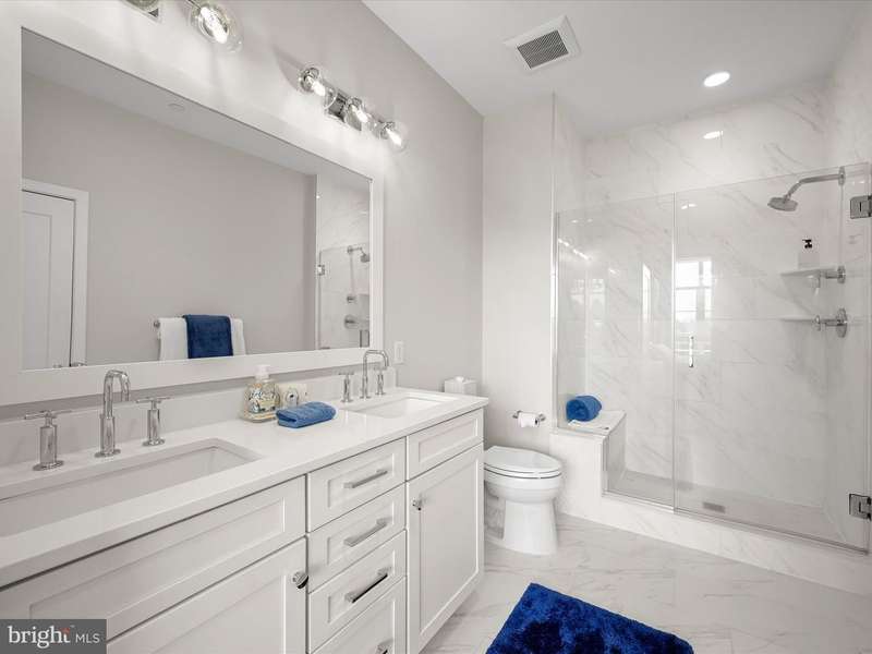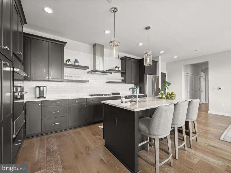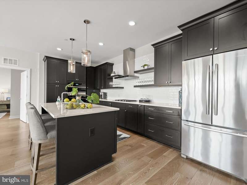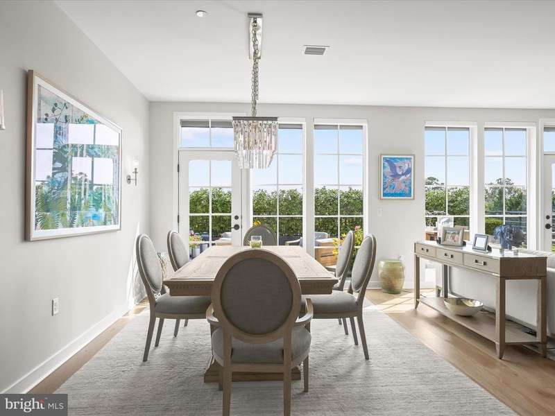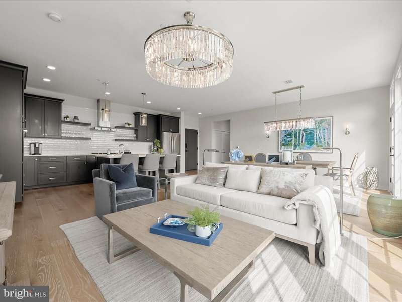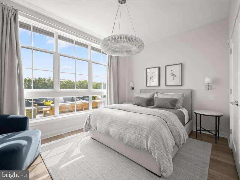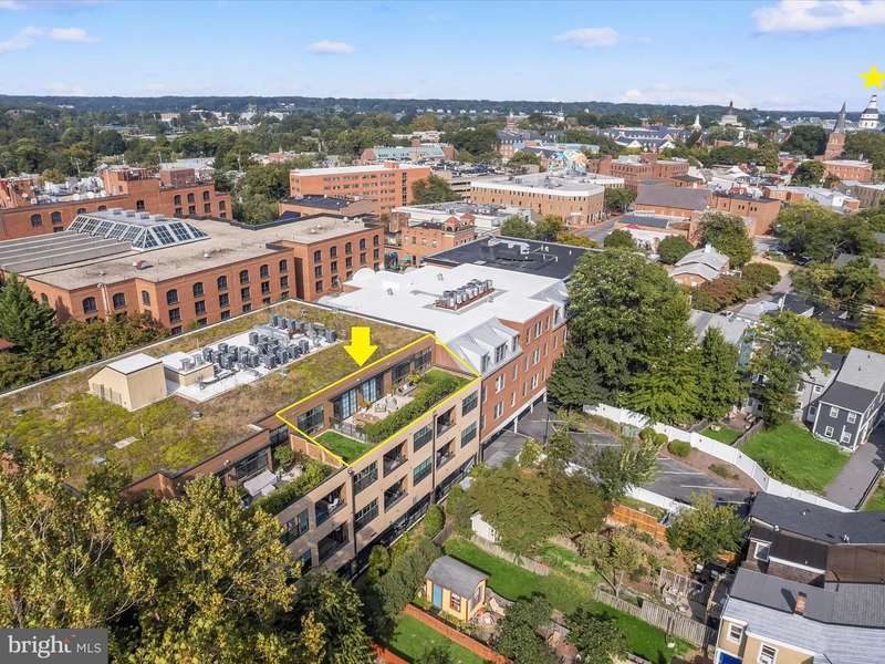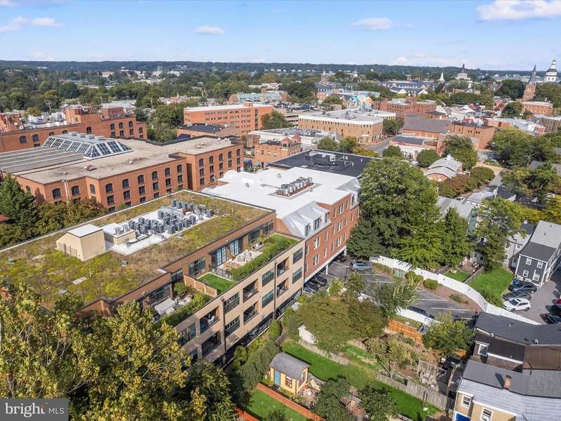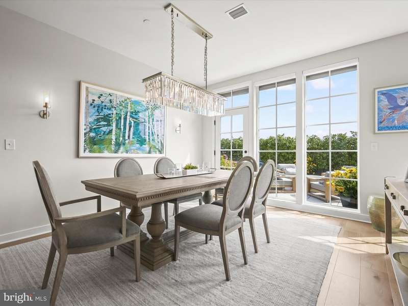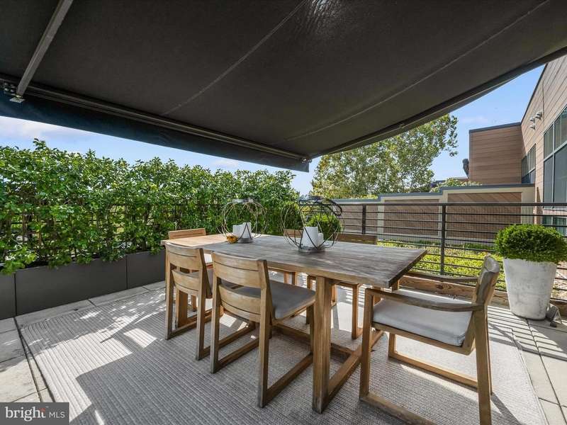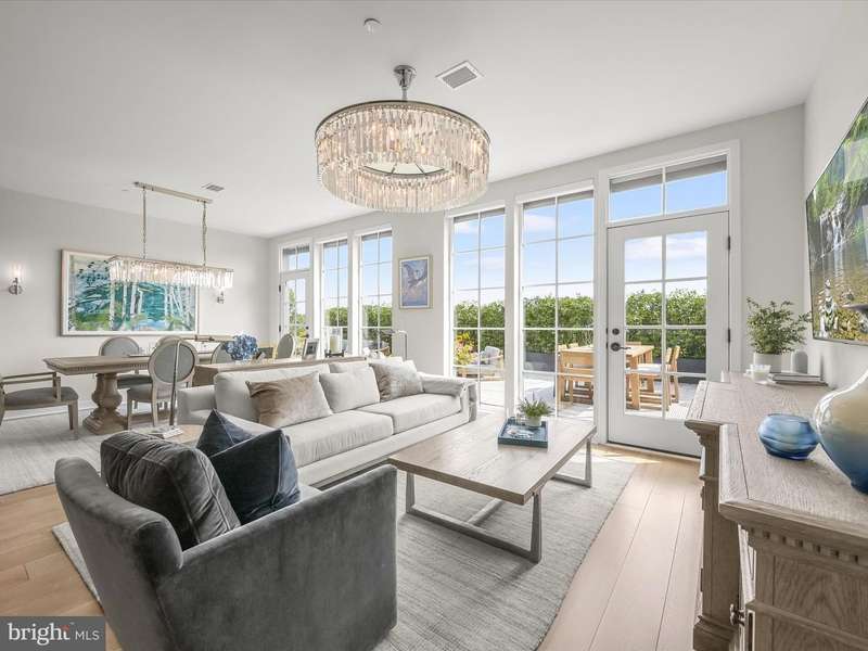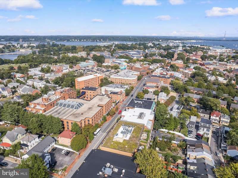 In the heart of Downtown Annapolis, this luxury penthouse captures the essence of refined living with sweeping views, refined finishes, and a terrace unlike any other. Perfectly positioned above the bustle of the city yet free from street noise, it offers an unmatched retreat with the Maryland State House as a historic backdrop, and the Blue Angels air shows can even be seen from the comfort of home. A wall of windows and glass doors welcomes you inside, filling the open concept living spaces with natural light and framing the expansive terrace beyond. Wide-plank hardwood flooring flows seamlessly throughout, complemented by striking light fixtures and thoughtful details. Both the living and dining areas open to the terrace through dual access points, while automatic shades provide convenience and privacy at the touch of a button. Professionally decorated and designed with Restoration Hardware style, the interiors elevate every room with timeless sophistication. The chef's kitchen combines beauty with function, featuring high-end soft-close cabinetry enhanced with custom inserts such as spice racks and roll-out shelving. Quartz countertops and a sleek tile backsplash set the stage, while stainless steel appliances, including a gas cooktop, provide modern efficiency. An island with a breakfast bar anchors the space and encourages gathering. On one side of the home, the primary suite creates a private sanctuary with its own wall of windows, a generous walk-in closet, and a spa-like en-suite bath. Here, a double sink vanity pairs with a floor-to-ceiling tiled shower enclosed in frameless glass for a refined finish. Two additional bedrooms are situated on the opposite side, one with a walk-in closet, direct access to the full hall bath, and a view of the living roof, while the other features a custom closet and a terrace-facing view. A stylish half bath with a pocket door and a dedicated laundry room add ease to everyday living. The terrace stands as the crown jewel of this penthouse, offering remarkable outdoor living with 600 sqft and three automatic awnings for shade and privacy. Living roofs on either side, maintained by the building, provide a serene, green outlook and enhance the sense of retreat. Additional features include a storage box and two deeded parking spaces, with one ideally located beside a community EV charging station. Every detail of this home has been considered, blending sophistication, comfort, and the best of Annapolis living.