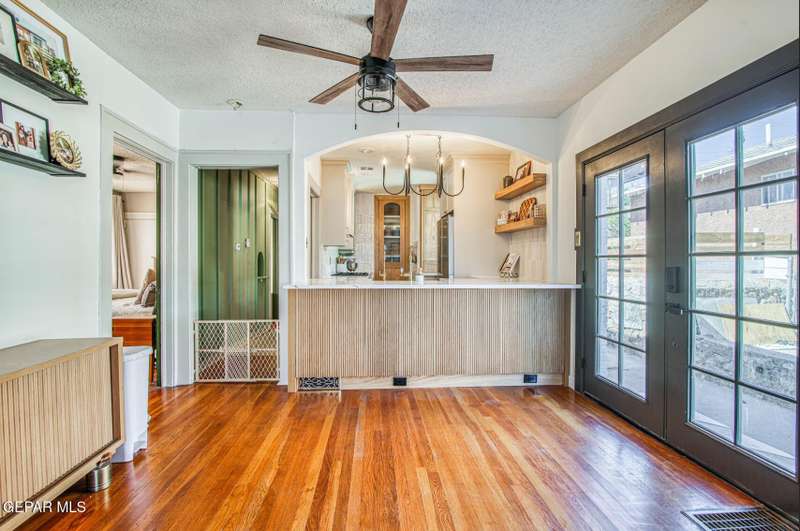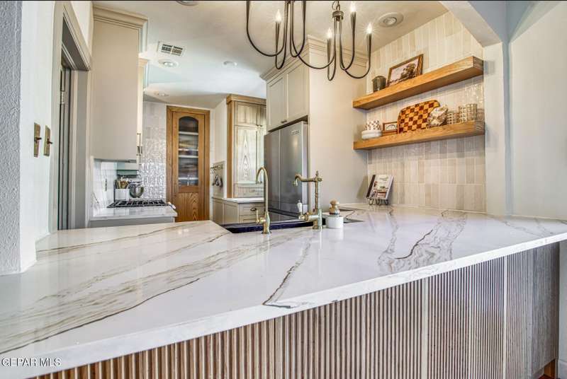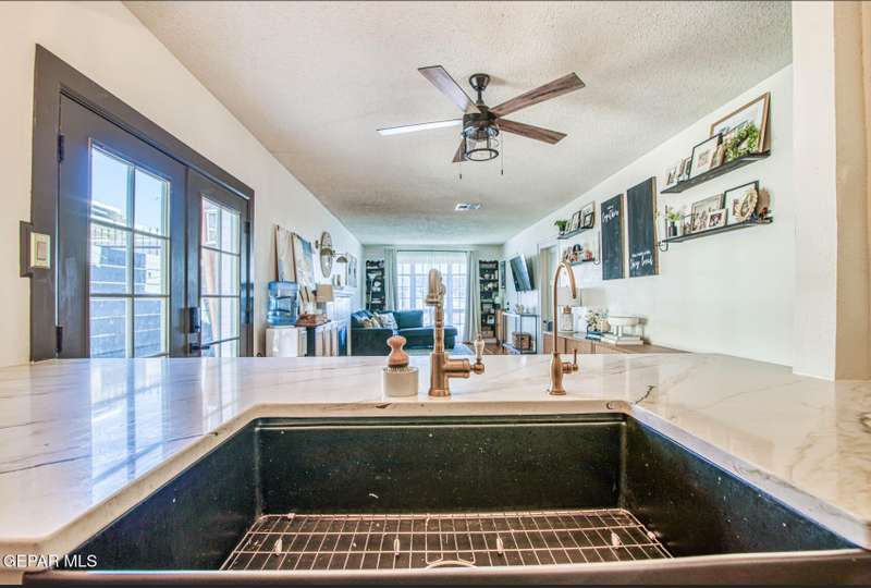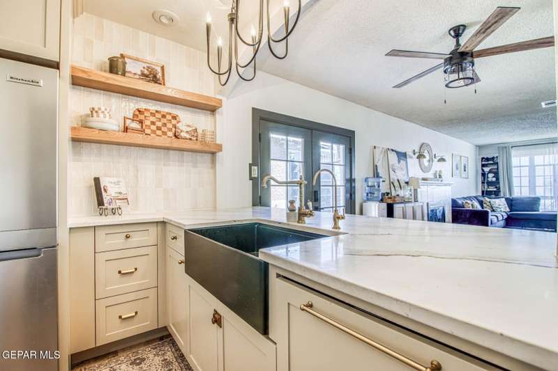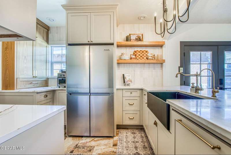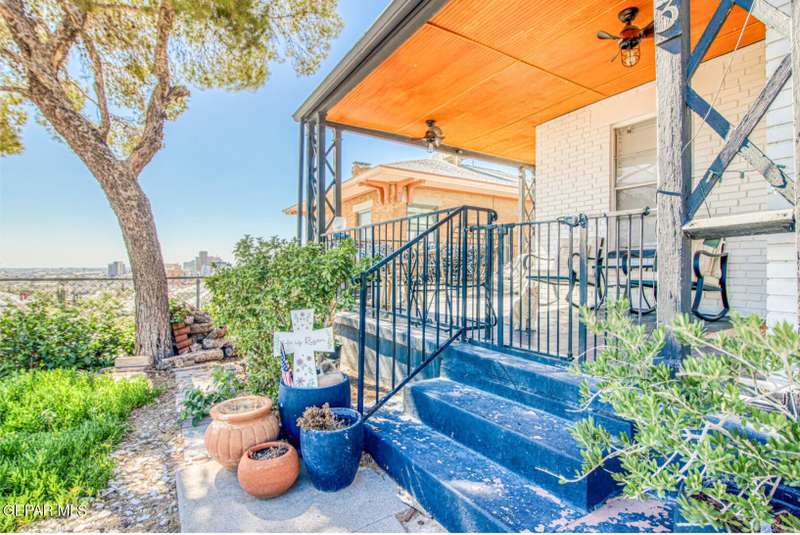 Timeless classic meets modern luxury! This beautiful craftsman style brick home boasts scenic views from a covered wraparound porch and is located just minutes from UTEP, hospitals, restaurants, parks & downtown. Upon entry, you'll notice a very spacious open concept layout with a fully remodeled custom kitchen. Additional recent renovations and upgrades include a complete bathroom remodel, tankless water heater, updated electrical systems, conversion to refrigerated air, reverse osmosis water filtration system and a fully fenced in private drive. Sizable back and side yards offer plenty of outdoor space, including a secure dog run. A detached garage equipped with electrical, gas and plumbing (add. bathroom) offers over an additional 200 sq ft, creating a potential casita/flex space. Need more storage? The basement has you covered! From original hardwood floors to uniquely elevated views of the city and downtown skyline, this home offers a living experience unlike any other!