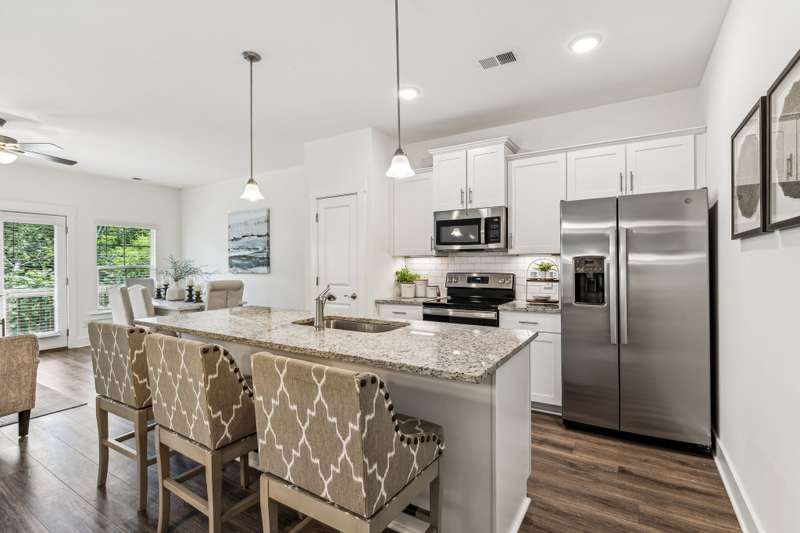 Welcome to your new home in the sought-after Simmons Ridge Community in Franklin. This move-in ready townhome features 3 bedrooms and 2.5 baths with a thoughtfully designed open-concept layout that unites the kitchen, dining, and living spaces. The modern kitchen, equipped with a large island, granite countertops, and stainless steel appliances, offers plenty of space for both cooking and seating. Upstairs, the expansive primary bedroom includes an en-suite bathroom with double vanities, providing a serene escape. The covered deck is perfect for unwinding or entertaining. Additional perks include an attached one-car garage, driveway parking, and ample guest parking. Simmons Ridge also provides excellent community amenities like a pool with a clubhouse, walking trails, and a playground. Don't miss your chance to call this stunning townhome your own!