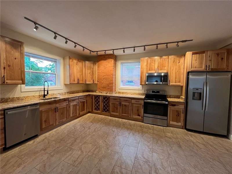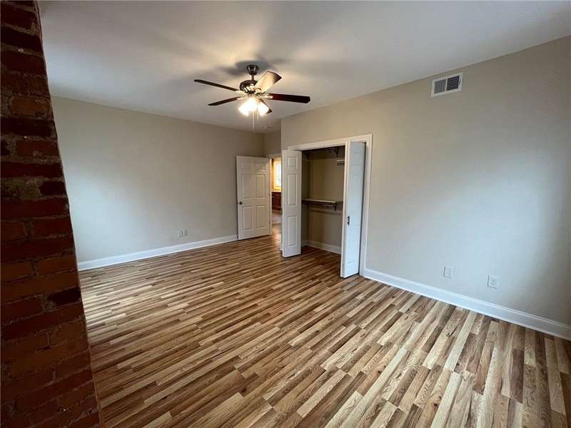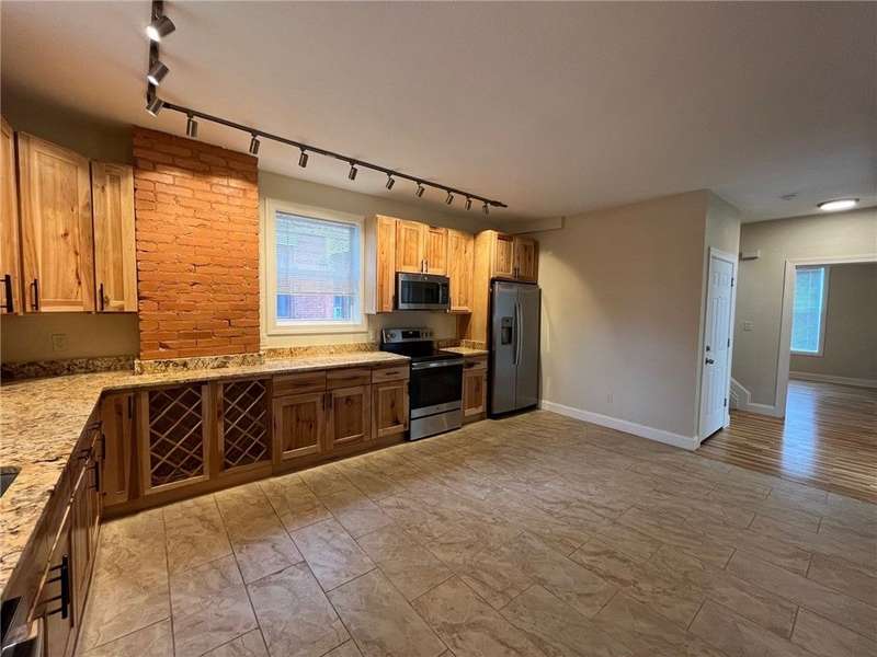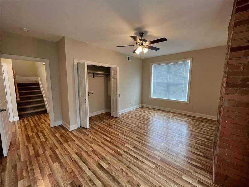 This apartment is on the 2nd & 3rd floor of a duplex. The eat-in kitchen has granite, a wine rack, & stainless steel appliances. The living room has exposed brick, ceiling fan, & access to the deck. 2 bedrooms on the 2nd floor have large closets, exposed brick, & ceiling fans. 2nd floor has a bathroom w/ a double sink vanity & ceramic tile. 3rd floor has 2 more bedrooms w/ walk-in closets, vaulted ceilings, ceiling fans, & Jack & Jill bathroom. Enjoy a washer/dryer on the 3rd floor. Landlord pays water, sewage, & trash. Tenant pays electric. There is high efficiency electric heat & central AC. 1 parking space per bedroom is permitted in a shared parking lot. Garages w/ EV charging or a carport may be available for additional rent. All our properties are pet friendly for friendly pets with a 2 animal maximum. There are no breed/weight restrictions. We require proof of rabies vaccinations (and licenses for dogs), but we do not charge additional rent or fees for animals. NO smoking.