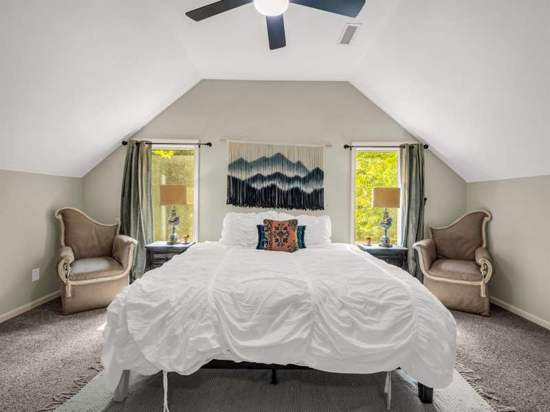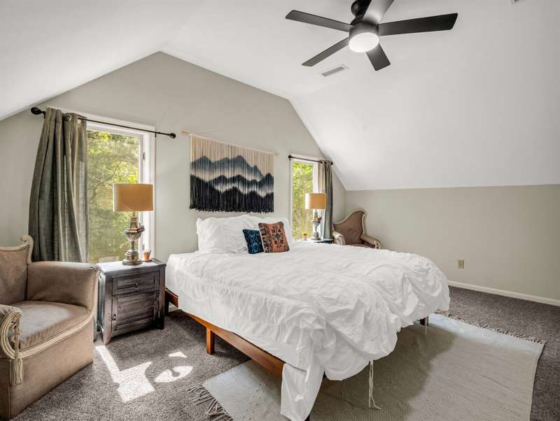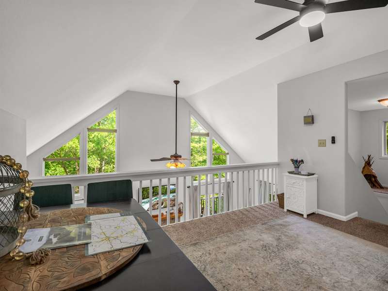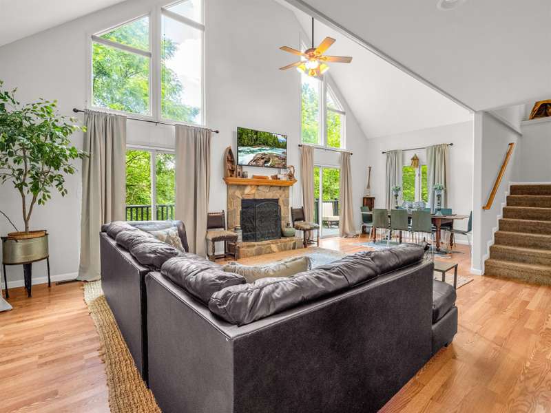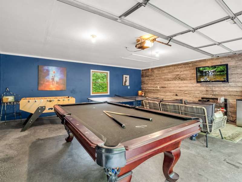 Located in a private setting behind the gates of Rumbling Bald Resort, this chic mountain hideaway is perfect for a full-time haven or an income producing short-term rental. Step into the open concept main living space, where a soaring 2-story great room w/a dramatic wall of windows floods the space w/morning light. The main level offers 2 cozy bedrooms & full bath, ideal for hosting family or friends. Upstairs, a spacious loft overlooks the great room, offering panoramic views & endless flexibility. Tucked beside the loft is a serene master suite, complete w/a generous walk in closet & spa-like garden tub. The detached 2-car garage has been transformed into a fun zone?pool table, foosball, ping pong, and video games galore! It's your own private arcade in the forest, ready for rainy days or epic game nights. Wired for Level 1 & 2 EV charging. Offered fully furnished & turnkey! NEW HVAC installed 5/2025! Brand New Whirlpool Refrigerator and GE Oven and Microwave installed 7/03/25