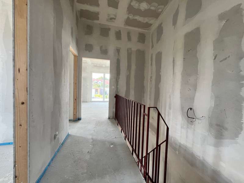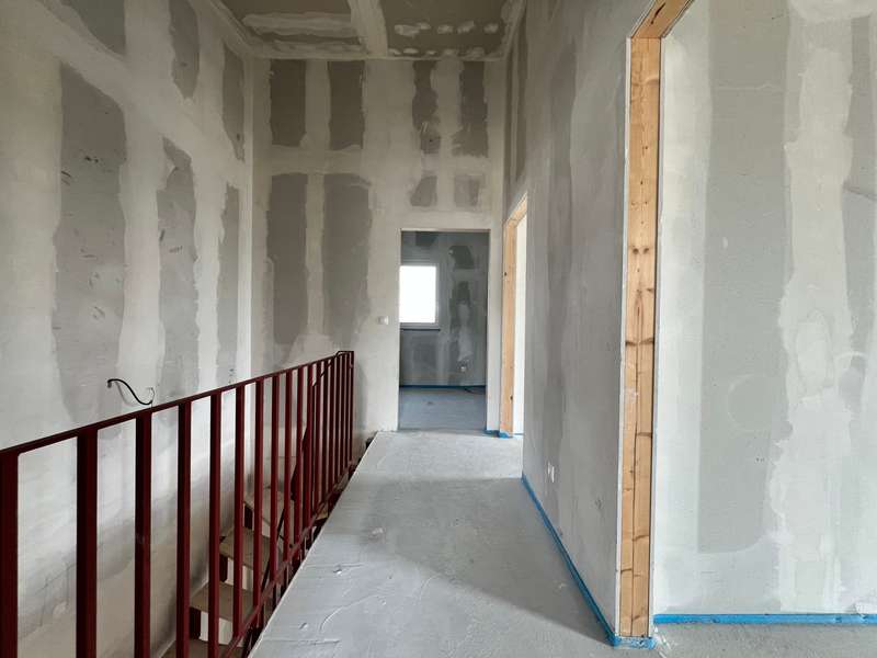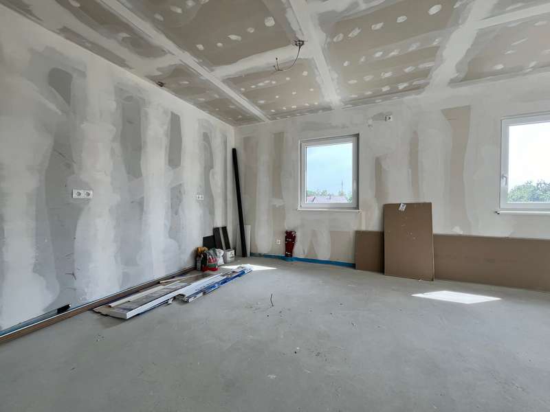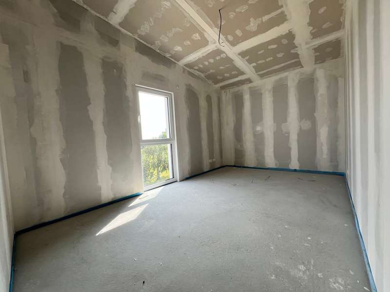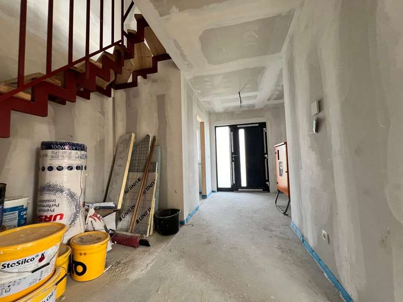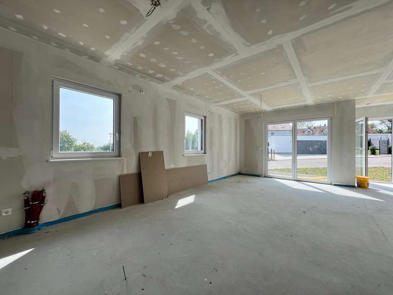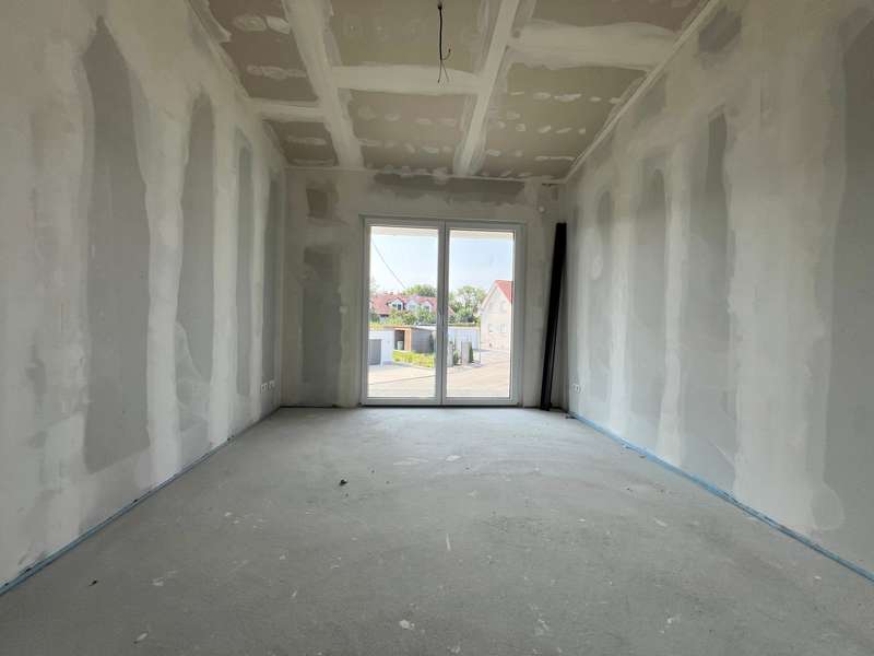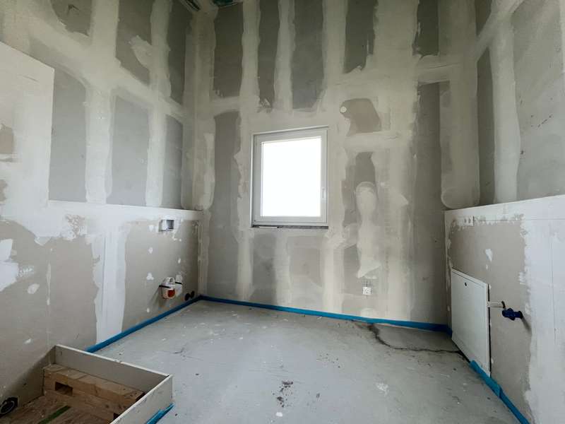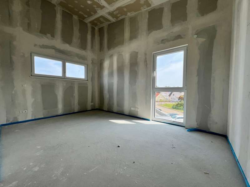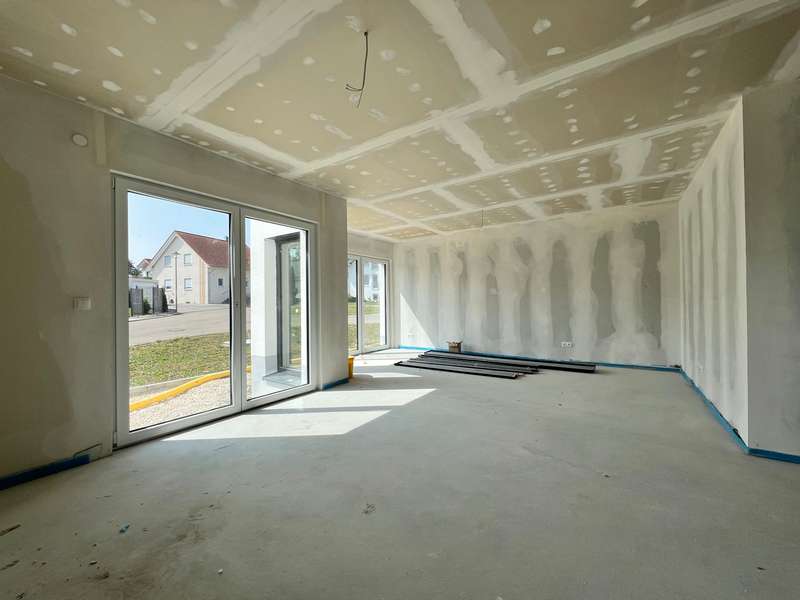 Realize a semi-detached house individually according to your own wishes - Individual design freedom This prefabricated house offers you the perfect opportunity to design your new home entirely according to your own ideas. Decide on floor coverings, wall colors, tiles and sanitary facilities yourself. Thanks to the flexible planning and the self-build option, you can realize your personal wishes and preferences and finish the house entirely to your taste. The house already has high-quality basic fittings, such as the energy-efficient timber frame construction, a modern air-to-water heat pump and pre-installed underfloor heating in all rooms. This means that the basic structure is perfectly prepared for you to proceed with your extension quickly and efficiently. The room layout has already been determined and offers you an excellent basis. The spacious living and dining area with floor-to-ceiling windows creates a bright and inviting atmosphere. The terrace gives you direct access to the south-facing garden, which offers plenty of sun and light. The modern, open-plan layout includes a kitchen and two bathrooms, which you can equip according to your personal wishes and ideas. Here you have the freedom to plan your dream kitchen and select high-quality bathroom furniture and fittings to suit your style. The walls and ceilings are ready for your individual painting work in their current state. Whether classic or modern - you can design the interiors entirely according to your ideas. You are also completely free to choose the floor coverings - from parquet flooring to tiles and modern designer flooring. The existing parking spaces offer room for two vehicles. Outside, the terrace and garden area with lawn are already finished and you can design everything else as you wish. The house is located in a quiet, family-friendly residential area. Schools, kindergartens, shopping facilities and leisure activities are in the immediate vicinity, making the location particularly attractive for families. Advantages of a prefabricated house: This prefabricated house offers you the flexibility and freedom to customize your new home. Take advantage of the opportunity to choose the materials, colors and fittings yourself and create your own personal dream home. At the same time, you can manage your budget efficiently by making your own contributions and choosing the fittings.