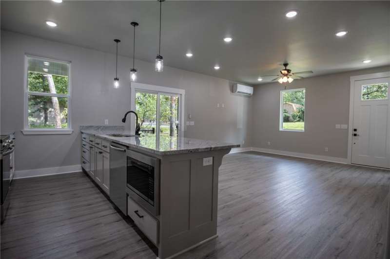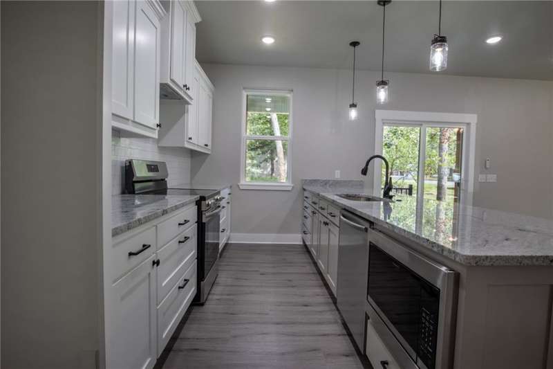 Welcome to your brand-new contemporary home, thoughtfully designed for comfort and style. This two-level residence features an open-concept main floor showcasing luxury vinyl plank flooring throughout, a chef inspired kitchen with granite countertops and a massive 12 ft peninsula with enough seating for 6 and a large open living room with 1/2 bath. Upstairs, you'll find a convenient laundry room and 2 spacious bedrooms each having there own luxury ensuite designed for both relaxation and functionality. Enjoy year-round comfort with Dual AC units, 1 for each level, energy-efficient construction, and plenty of natural light throughout. A one-stall garage with extra car port adds convenience, while the homes clean, modern design makes it standout. Extras to include wood blinds, extra storage closet in garage, large flat backyard, gutters and fully sodded yard.