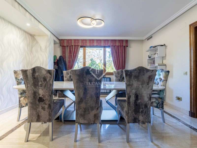 Lucas Fox is pleased to present this detached villa in an excellent state of conservation, divided into three floors and with a very good layout where you will find your haven of peace and tranquility just 12 minutes from the centre of Madrid. This is an impressive luxury villa in the Álamo de Bularas development , in one of the quietest and most private locations in the area. The villa is perched in the highest part of the Álamo de Bularas gated development , so it offers the best views of the Sierra de Madrid in the area. A perfect setting to enjoy the prestigious and relaxing municipality of Pozuelo de Alarcón on the outskirts of Madrid. On the main floor , the main rooms are arranged: a large living-dining room of more than 70 m², an office, a large dining room and a kitchen with a pantry and secondary access for service. On the other hand, a guest area with a guest toilet and a bedroom or study is offered. All these spaces are organized around a beautiful light patio in the centre of the house. On the first floor, we find the most private area with four fantastic bedrooms, the main one with a dressing room, private bathroom and terrace, and three other bedrooms, one of them with a private bathroom, while the other two share a bathroom. On the lower ground floor, the social area of the house is arranged, with a large living room with a bar and a games and study area for the young members of the family. In addition, it offers a garage with space for three vehicles, a boiler room, a toilet, a spa area with sauna and jacuzzi. The property also has a pleasant heated pool , as well as a cozy gazebo fully equipped with a fireplace, kitchen, barbecue grill and cold rooms, where you can enjoy gatherings with friends and family both in winter and summer. Exterior, there is a huge garden and a swimming pool. The property offers indoor and outdoor spaces with endless possibilities: a gym to exercise, a meditation area to relax, a painting workshop and places for meetings and intimate dinners. If you want to explore Madrid or enjoy any cultural or social activity in the centre of the capital, its famous shows and venues are just fifteen minutes away by car. Contact Lucas Fox by email or phone to arrange a viewing and see the villa with your own eyes. We are available 7 days a week to adapt to the needs of our clients. You can also visit our recently opened Lucas Fox Property Lounge on Avenida de Europa 38, Pozuelo, where we can learn about your needs in more detail and help you find your perfect home or investment.