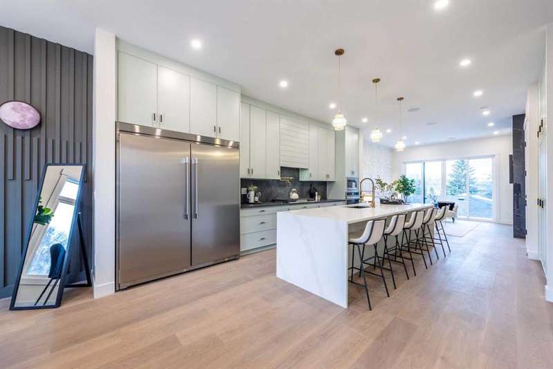Welcome to this beautifully designed, newly built single-family home, ideally located just minutes from the vibrant heart of downtown Calgary. With a rare walk-out lot and a legal basement suite, this property offers the perfect combination of luxury, functionality, and prime location. As you step inside, you'll immediately notice the exquisite craftsmanship and thoughtful upgrades throughout. The open-concept main floor is bathed in natural light, thanks to expansive windows that highlight the sleek, modern design. The chef-inspired kitchen is a true standout, featuring custom cabinetry, high-end quartz countertops, top-of-the-line stainless steel appliances, and a large island that’s perfect for preparing meals and hosting guests. The living and dining areas flow seamlessly together, creating an inviting space for both relaxation and entertaining. With high ceilings, designer fixtures, and elegant flooring, every corner of this home exudes style and comfort. Upstairs, the spacious master suite serves as a private oasis, complete with a large walk-in closet and a spa-like ensuite bath featuring a freestanding tub, glass shower, and dual vanities. Two additional generously sized bedrooms and a full bathroom provide ample space for family members or guests. The fully finished basement suite is a legal, self-contained unit with its own private entrance, making it perfect for rental income or additional living space. The suite is bright and modern, with a full kitchen, cozy living area, stylish bathroom, and separate laundry facilities, offering maximum privacy and convenience. Situated in one of Calgary’s most desirable neighborhoods, this home provides easy access to trendy shops, renowned restaurants, public transit, and the scenic Bow River pathways. Whether seeking a family home with potential rental income or a sophisticated urban retreat, this property has it all. Don’t miss your opportunity to own this exceptional home in an unbeatable location. Schedule a showing today and see for yourself what makes this property so special!
