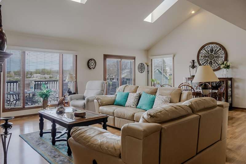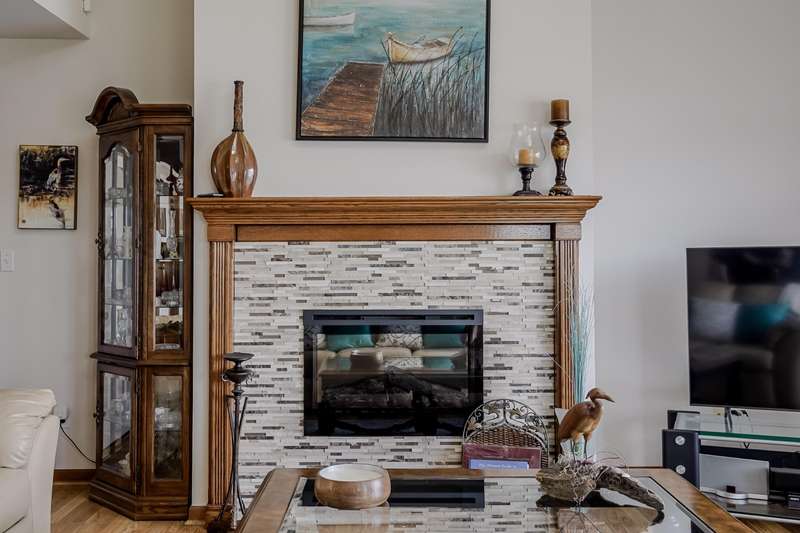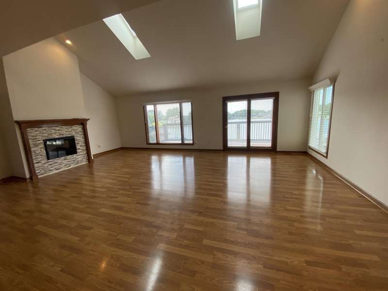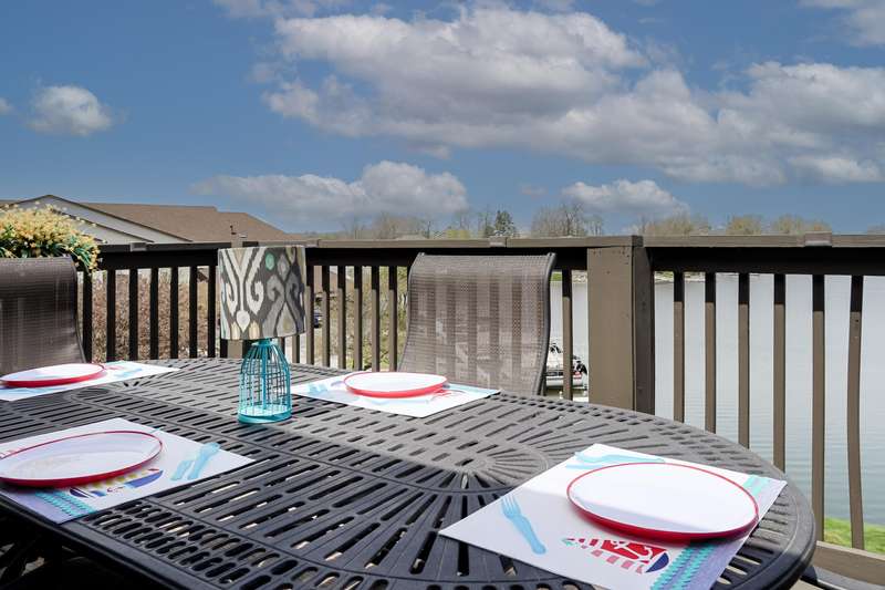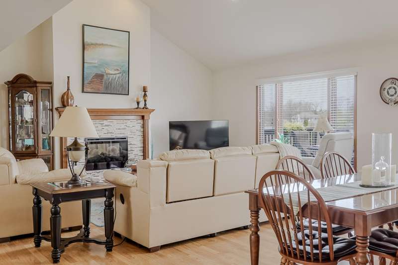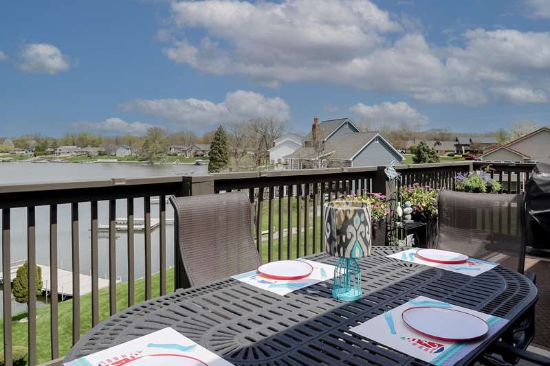 Enjoy stunning Lake views from this 3 bedroom and 2 bath condo. Easy maintenance free living located on the all-sport Lake Holiday in resort style community of Lakes of the Four Seasons and all the amenities it has to offer. A bright, open floorplan that takes you from foyer area into the large living room with Lake Views, tall ceilings , complete with electric fireplace and easy care laminate flooring, walk out to Big Deck overlooking the Lake! Living rooom is Open to the kitchen with loads of cabinets, undermount sink, granite countertops, and includes Stainless steel appliances. The primary bedroom has double closets, walkout balcony with lake view and it's own Updated ensuite bath. The Big upper level Rec room overlooks both the Kitchen and the Living room. The two other generous bedrooms have full closets, (one with double closets) laminate flooring, Lake views and share full hall bath. Plus there is a main level laundry/utility room with cabinets and shelves. The condo also has a pull down attic storage in the attached garage. This condo is located steps away from the Lake Holiday, condo boat docks and near Sandy beach with cabana picnic, playground and beach swimming area! Community offers plenty of amenities including, lakes, beaches, golf course, driving range, parks, and dog park, pool, clubhouse, pro-shop, restaurants, summer concerts and more! Well maintained Condo and MOVE IN READY!