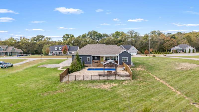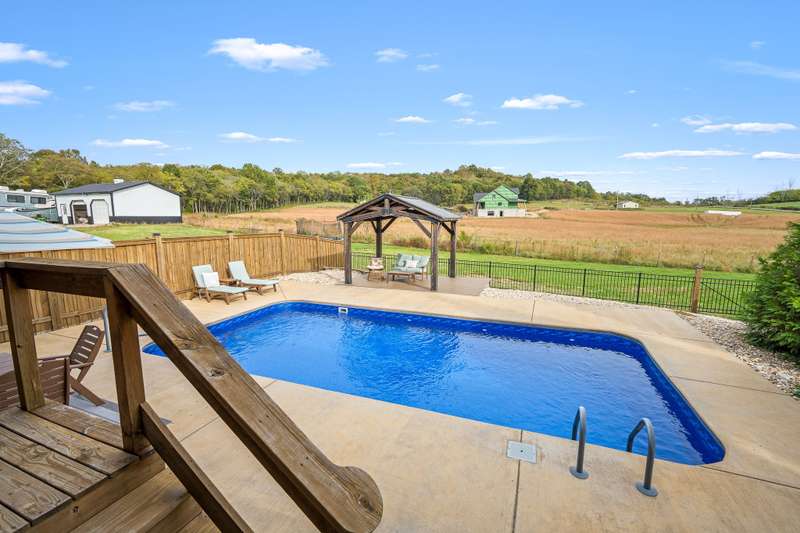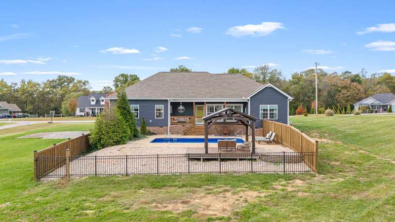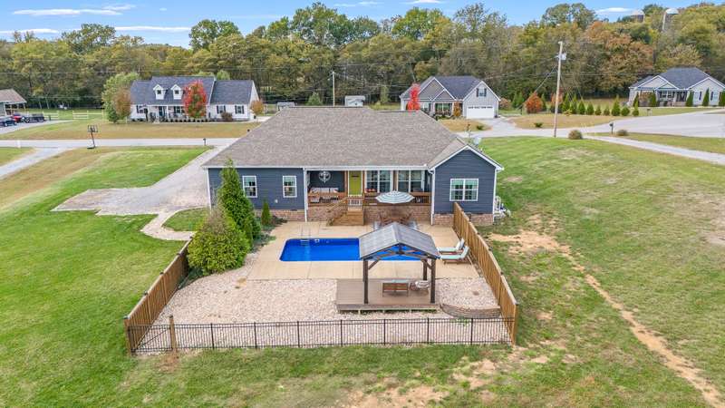 Custom Built one level home with gorgeous views, covered front porch, open floor plan, island kitchen with granite countertops, tile backsplash and gas stove, gorgeous primary bathroom with custom tile shower, soaking tub, double vanities, hardwood and tile flooring throughout, two car garage that is heated and cooled, covered back porch, in ground saltwater pool with new liner, gazebo, fenced backyard, and situated on 1.04 acres. United Fiber Internet is available. Conveniently situated 10 minutes from the interstate for effortless commutes to Murfreesboro. Additionally, it is in close proximity to the bypass. The property is merely 7 minutes from Shelbyville and 25 minutes from Tullahoma.