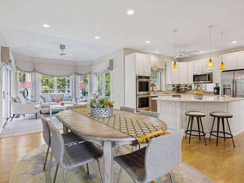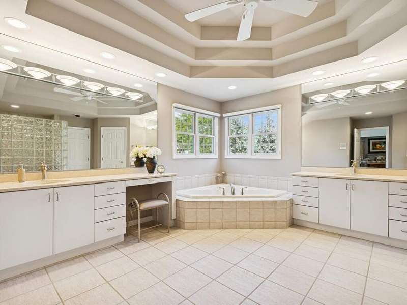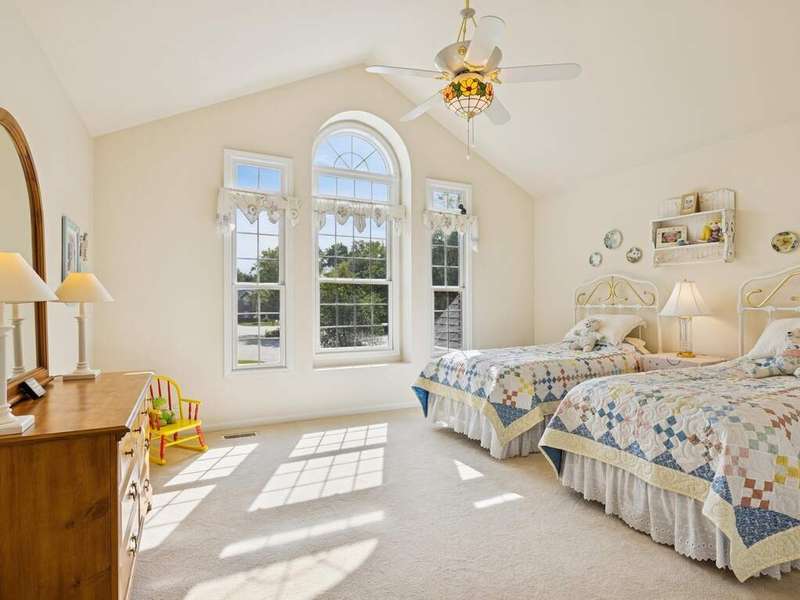 Welcome to this stunning home, on a cul de sac, in the desirable Cherry Creek Subdivision of Prospect Heights. Situated on an expansive lot in a quiet, peaceful setting, this beautifully maintained residence offers 4 + 1 spacious bedrooms, 3.5 baths, and a 3-car garage. Inside, you'll find designer touches throughout including a beautiful formal dining room, elegant living room, and a huge family room with fireplace and windows galore. A bright sunroom/sitting area adds a cozy spot to relax. The huge primary suite features a luxurious spa-like bath that feels like your own private retreat. The home's open and inviting floor plan flows seamlessly to the outdoors, where you'll enjoy a Trex deck overlooking the expansive yard. The finished lower level is a true showstopper-designed with the feel of an Irish pub, it's the perfect space for entertaining. Updates include: Roof 2017, Driveway 2016, Remodel 2017, Washer & Dryer 2024, 400 AMP service, furnace/AC 3 years old. With its blend of comfort, style, and character, this home is truly exceptional.