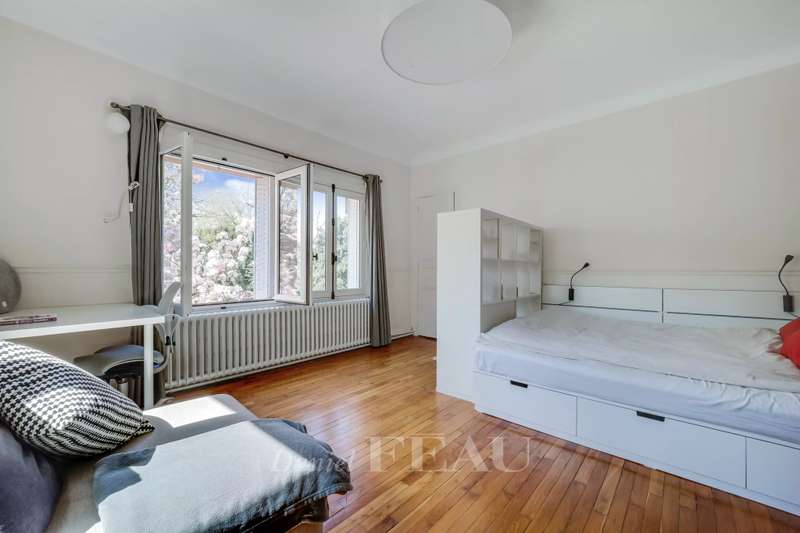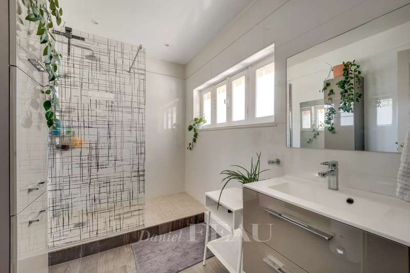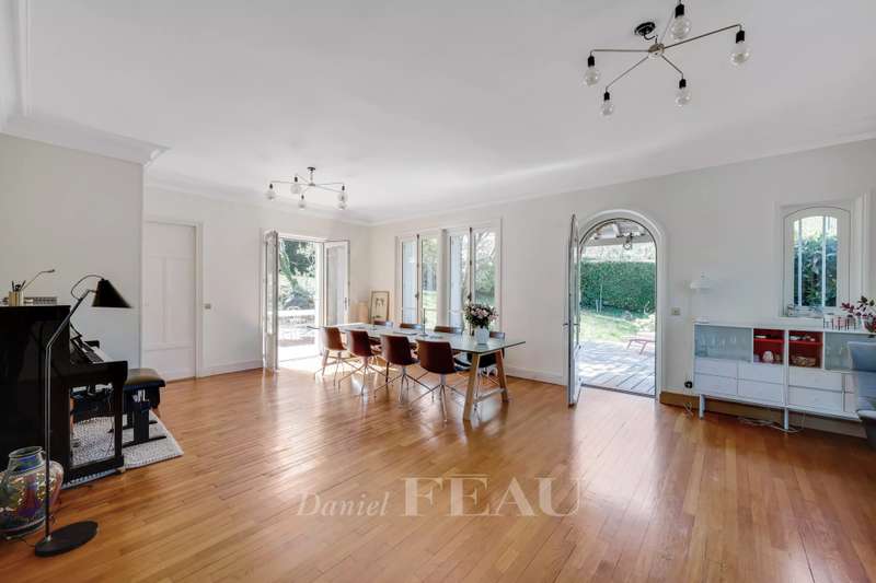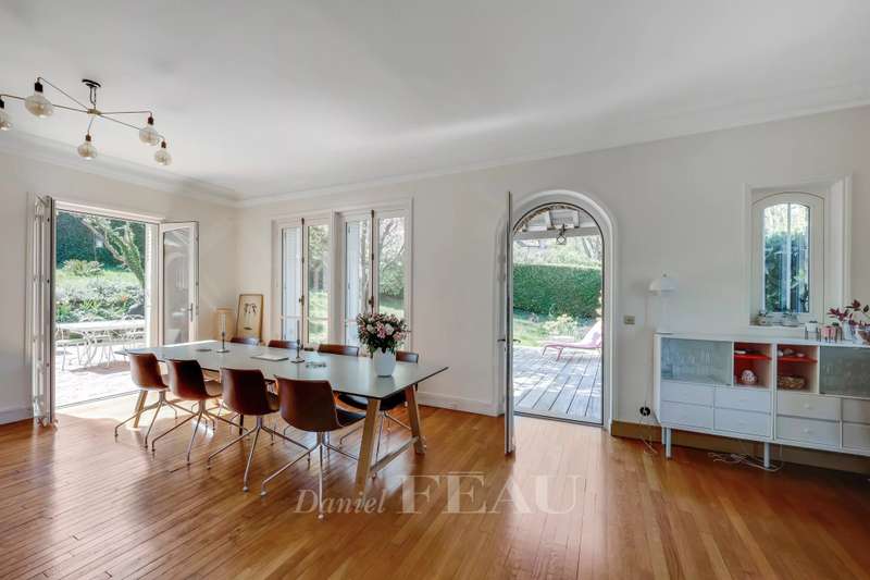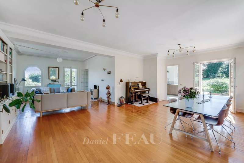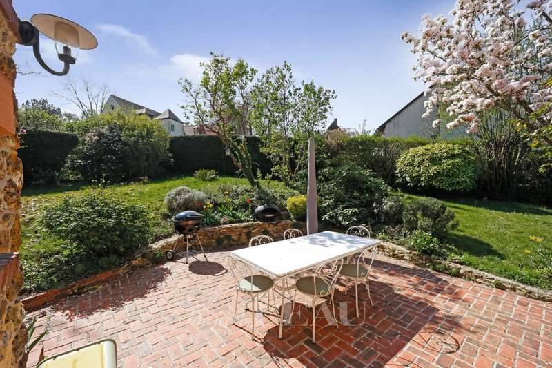 Sole Agent. This delightful late 19th century property offering 240 sqm of living space plus a basement is set in a 1000 sqm plot in a peaceful and sought-after neighbourhood just a few minutes from the centre of Fourqueux and the International High School. Allying beautiful period features including cement floor tiles, parquet flooring and high ceilings with contemporary comfort, it includes an over 60 sqm triple living/reception room with a wood burner opening onto a terrace and the south-west facing garden, a fitted and equipped kitchen, a study and a guest wc. Upstairs are a master suite with a dressing room and terrace, three further bedrooms, a bathroom, a shower room, and a separate wc. The converted attic comprises a spacious bedroom with mains plumbing. The property benefits from two entries, one from the garden and a second from the street which accesses a garage, a storage area, a utility room and a boiler room. An ideal family home in the immediate vicinity of the schools and the golf course, and with transport networks accessing Saint-Germain-en-Laye and the capital.