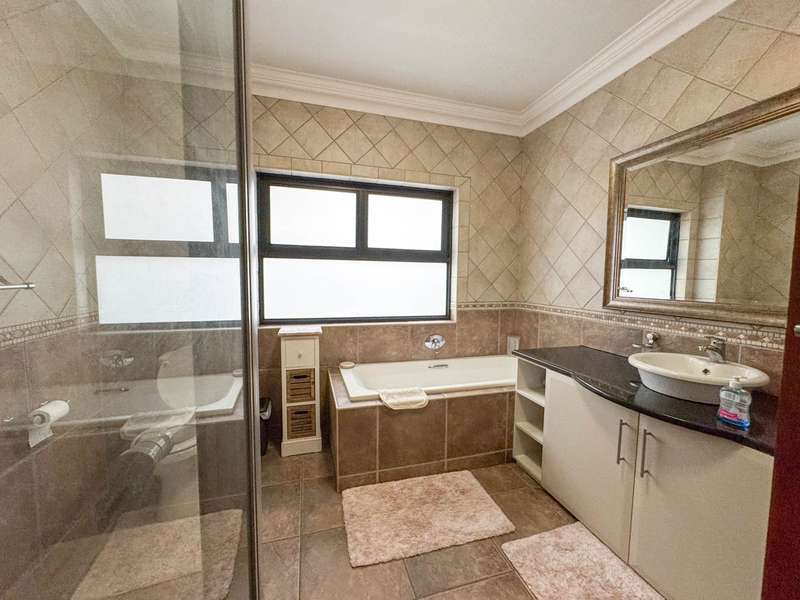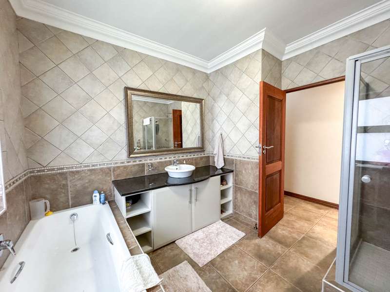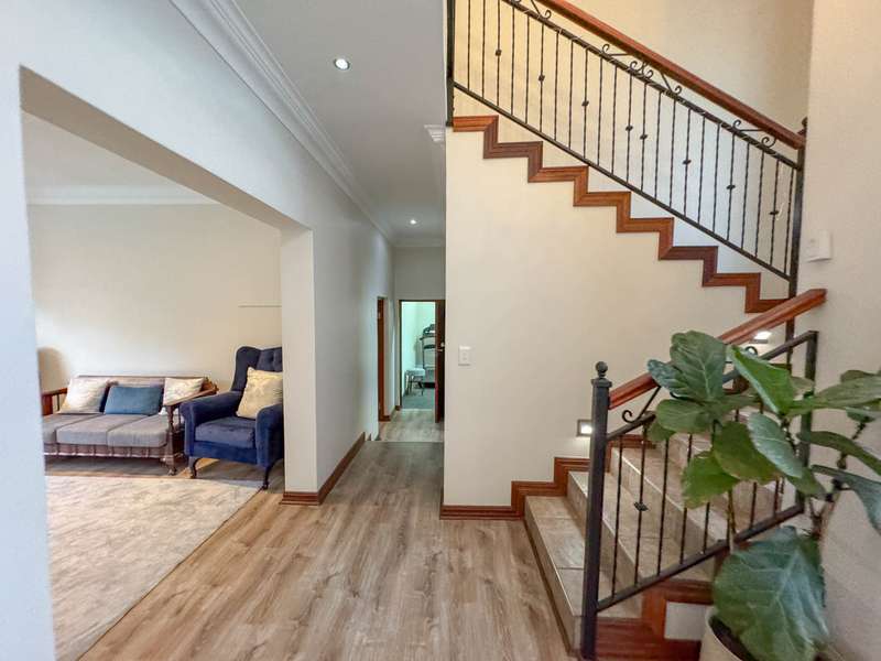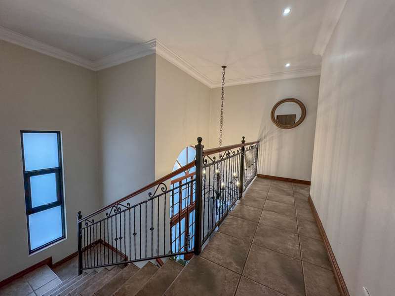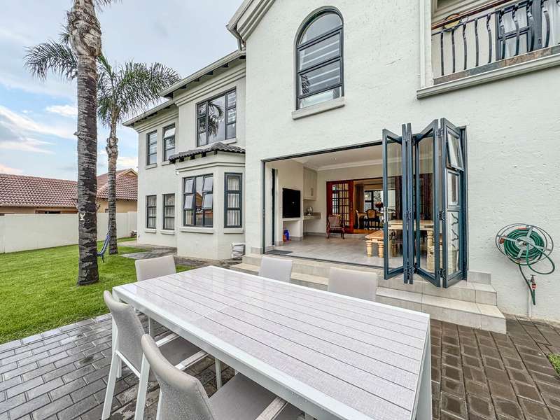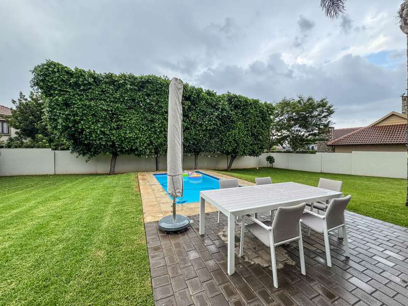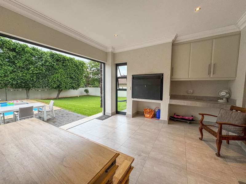 Reduced Price - Best buy in Midstream Proper - Hutton Gate! We're delighted to present this spacious family home situated in pristine Midstream on Exclusive Mandate! Immediately upon arrival, attention is drawn to the entrance, 3 garages and sought-after side parking space and big driveway for many vehicles. A welcoming entrance awaits and opens onto the dining room. The large living spaces offers a delightful kitchen, dining room, two TV rooms (fireplace) and enclosed patio area with braai fireplace. One lounge can work perfectly for a home office. The kitchen is the ideal hub of the home with breakfast bar, workspace, built in pantry, SMEG electric oven and gas cooktop, and the scullery offers space for your appliances. Also at the bottom finds a sunny guest bedroom and bathroom. Another outside room, with a shower bathroom and private access can work well for more unexpected guests or use it as another study or even for staff accommodation. Upstairs are four more bedrooms all large and sunny, and with ample built in cupboard space. The master bedroom suite is generous with a walk in dressing room and en-suite bathroom which comprises of bath, double vanity basins, shower and toilet. Three bathrooms complete the upstairs bedrooms. The outdoor living is an entertainer's delight with lots of grass and sparkling pool and an entertainment area with seating next to the pool. Bonus features: Powerful Sunsync solar system: 16kVA Inverter, three 5kW batteries totaling 15kW capacity powered by 16 photo voltaic panels each rated 460W. Midstream Electrical Services (MES) also approved the system for grid feed ("pushing electricity back") meaning you can get money back for adding to the grid. System is approved and signed off by MES with Certificate of Compliance (COC). Don't delay viewing this great family home that ticks all the boxes and is close to parks, Gautrain pick up points and within walking distance to the shops and schools.