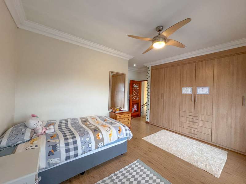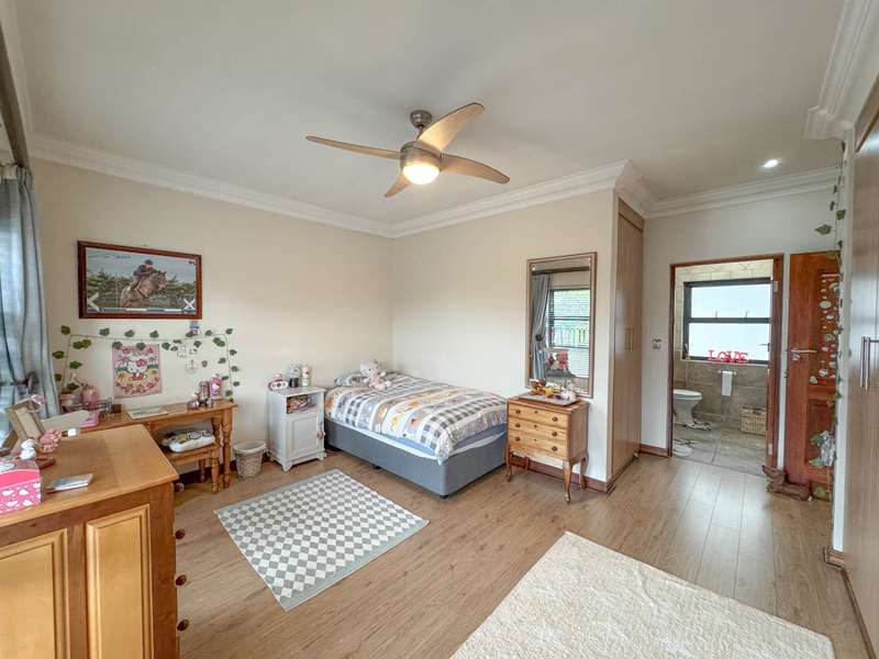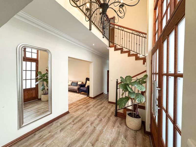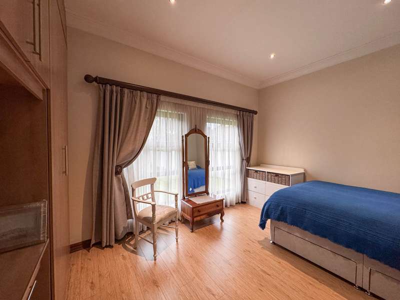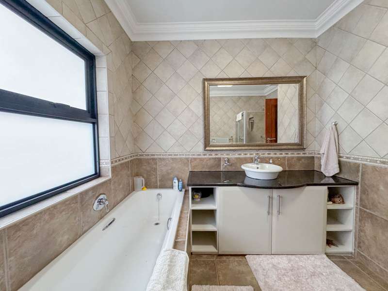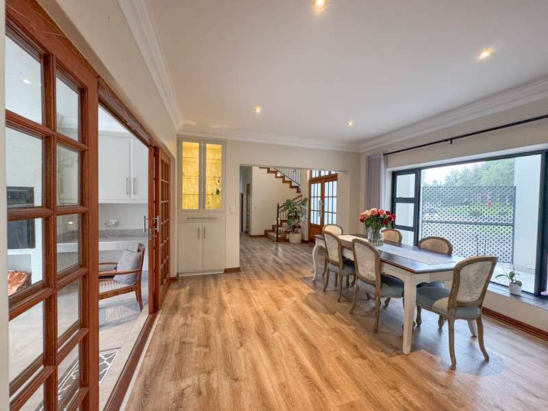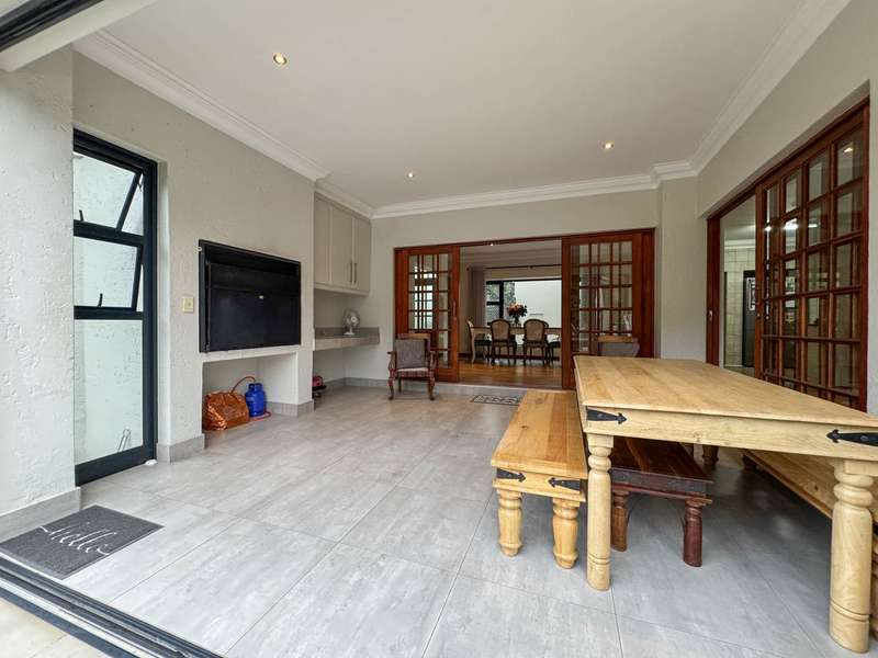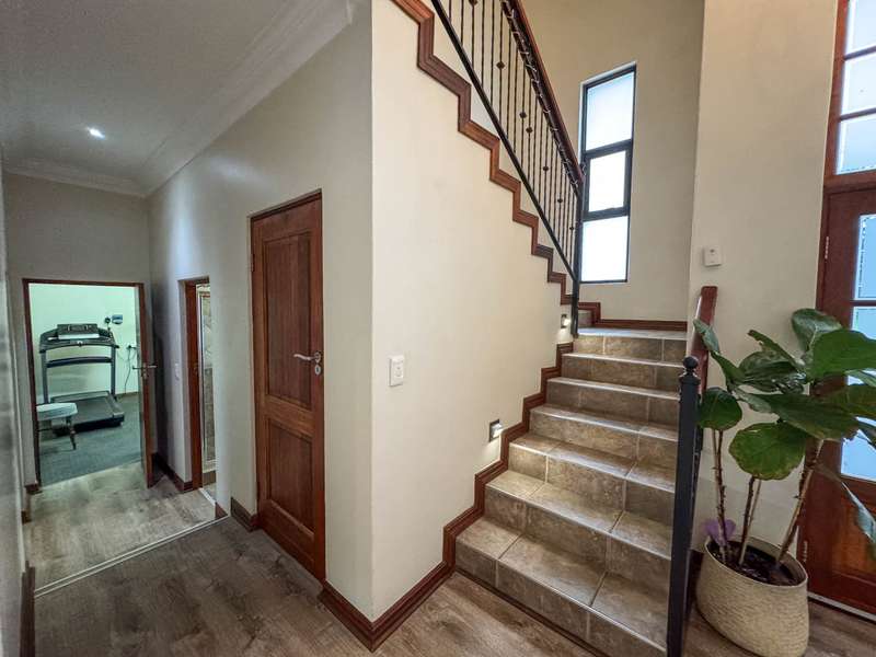 Reduced Price - Best buy in Midstream Proper - Hutton Gate! We're delighted to present this spacious family home situated in pristine Midstream on Exclusive Mandate! Immediately upon arrival, attention is drawn to the entrance, 3 garages and sought-after side parking space and big driveway for many vehicles. A welcoming entrance awaits and opens onto the dining room. The large living spaces offers a delightful kitchen, dining room, two TV rooms (fireplace) and enclosed patio area with braai fireplace. One lounge can work perfectly for a home office. The kitchen is the ideal hub of the home with breakfast bar, workspace, built in pantry, SMEG electric oven and gas cooktop, and the scullery offers space for your appliances. Also at the bottom finds a sunny guest bedroom and bathroom. Another outside room, with a shower bathroom and private access can work well for more unexpected guests or use it as another study or even for staff accommodation. Upstairs are four more bedrooms all large and sunny, and with ample built in cupboard space. The master bedroom suite is generous with a walk in dressing room and en-suite bathroom which comprises of bath, double vanity basins, shower and toilet. Three bathrooms complete the upstairs bedrooms. The outdoor living is an entertainer's delight with lots of grass and sparkling pool and an entertainment area with seating next to the pool. Bonus features: Powerful Sunsync solar system: 16kVA Inverter, three 5kW batteries totaling 15kW capacity powered by 16 photo voltaic panels each rated 460W. Midstream Electrical Services (MES) also approved the system for grid feed ("pushing electricity back") meaning you can get money back for adding to the grid. System is approved and signed off by MES with Certificate of Compliance (COC). Don't delay viewing this great family home that ticks all the boxes and is close to parks, Gautrain pick up points and within walking distance to the shops and schools.