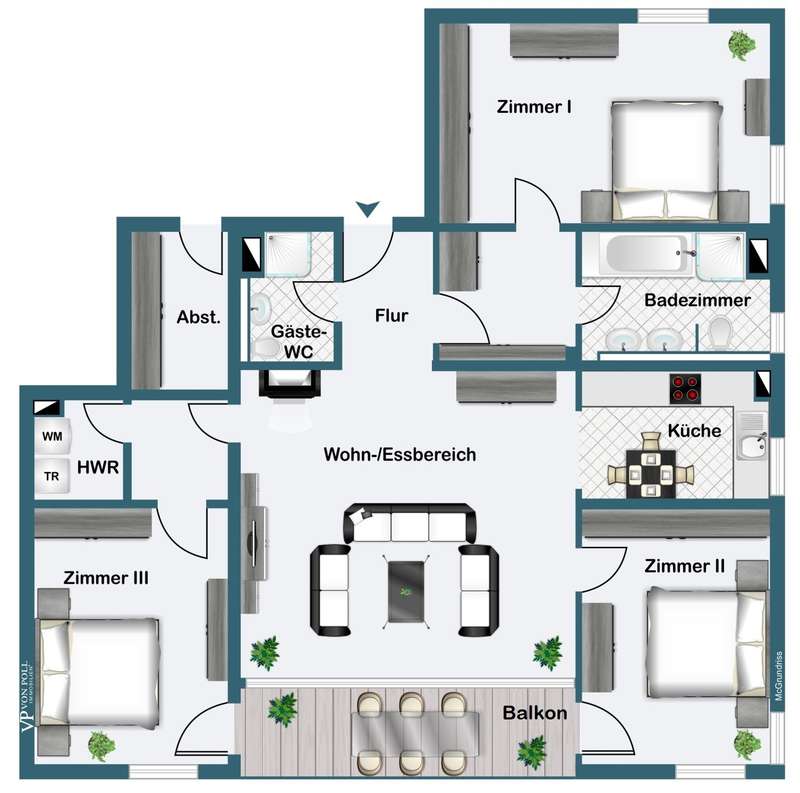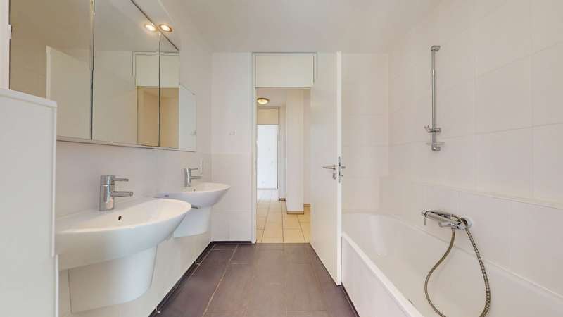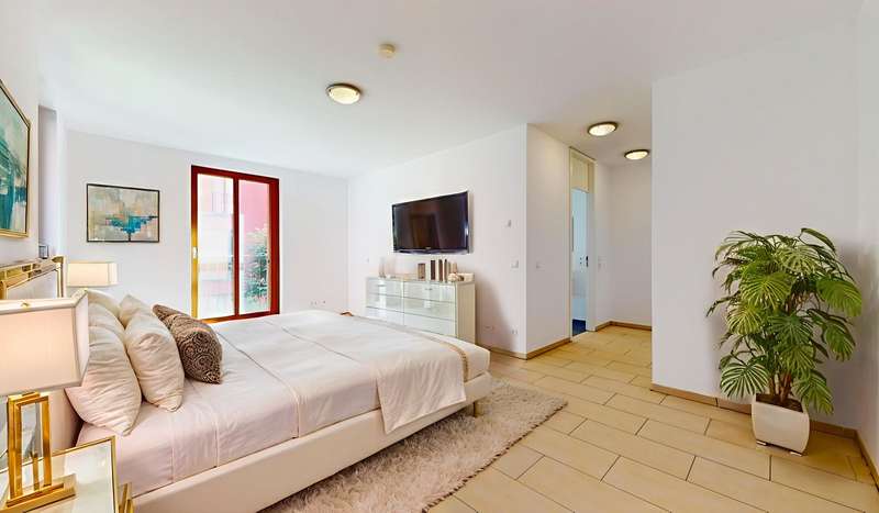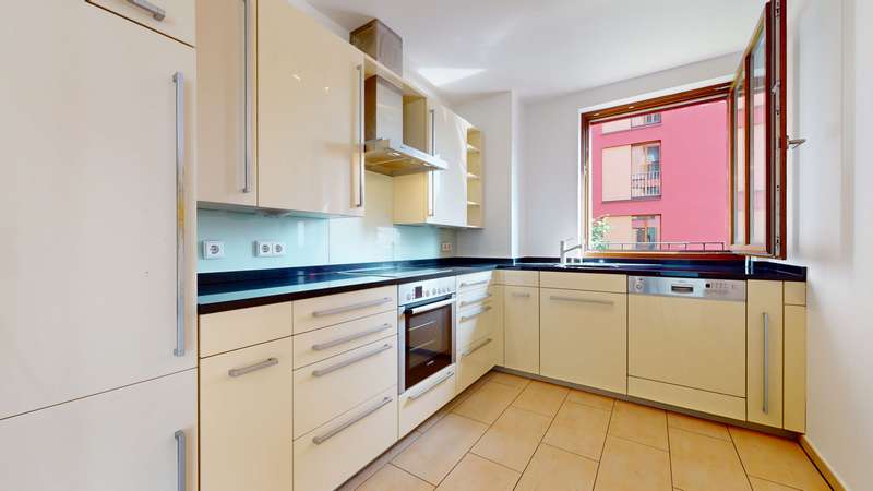 This very bright, modern and high-quality furnished four-room apartment is located in Westhafen, one of Frankfurt's most sought-after locations. The immediate proximity to the Main and the view of the water make this apartment something very special. Upon entering the apartment, you are immediately overwhelmed by the impressive size of the room and the unobstructed view of the water and the wonderful harbor. The open entrance area offers enough space for a checkroom. There is also a beautiful guest bathroom with shower. The hallway leads to the spacious bedroom and the master bathroom. The very bright master bathroom with French window is generously designed and equipped with a bathtub and a large floor-to-ceiling shower. The open-plan living/dining area with access to the spacious balcony, which faces south towards the harbor basin, forms the focal point of this exceptional apartment. From here you have access to the fully equipped kitchen, the two utility rooms and two further rooms which are ideal as bedrooms or home offices. Large floor-to-ceiling windows bring plenty of light into the rooms and bring the harbor very close. An additional storage room rounds off this offer. This great apartment is ideal for families and couples looking for something special.