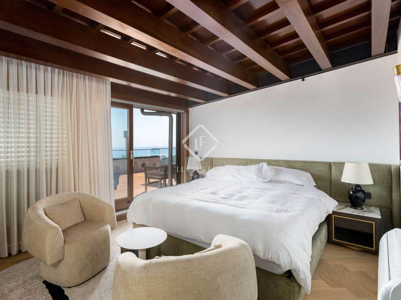 This home, fully renovated in 2024, represents a perfect fusion of modern architecture, comfort, and natural beauty. Located in a peaceful area of Calella yet just a short walk from the town center, this property offers privacy, sea views, and a constant connection with natural light and the surrounding landscape. Spread across 4 split levels connected by a bright interior staircase and a lift, the house adapts organically to the terrain, allowing for sea-view terraces on each level and beautifully landscaped areas with access from two different streets. The main floor welcomes you with a spacious living room featuring a fireplace, large windows, and direct access to a terrace with mesmerizing views. The semi-open kitchen, fully equipped, flows seamlessly into the dining area and auxiliary spaces such as a pantry, laundry room, and utility or service room. Every detail has been designed for comfortable and elegant everyday living. The upper floors offer a private and generous sleeping area: 3 bedrooms, including a spectacular suite with walk-in closet, all with access to terraces. A bright open landing, perfect as an office or reading nook, enhances the sense of space and light. On the lower level, with direct access from the street, you’ll find a spacious garage with room for multiple vehicles. Just above the garage is a versatile area featuring a large office with sea views, a gym with a full bathroom, and storage rooms—all with direct access to the garden and pool. The outdoor area is a true oasis: private pool, chill-out zone, outdoor dining space with barbecue... all surrounded by greenery and framed by breathtaking sea views. A home designed to be enjoyed with all five senses, every day of the year.
