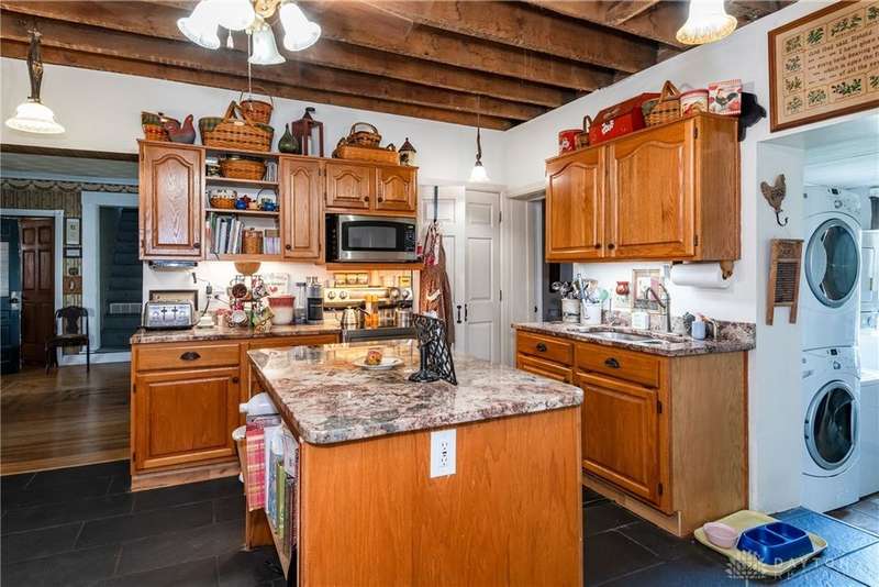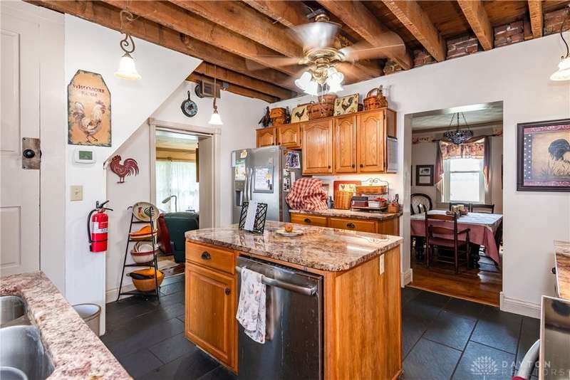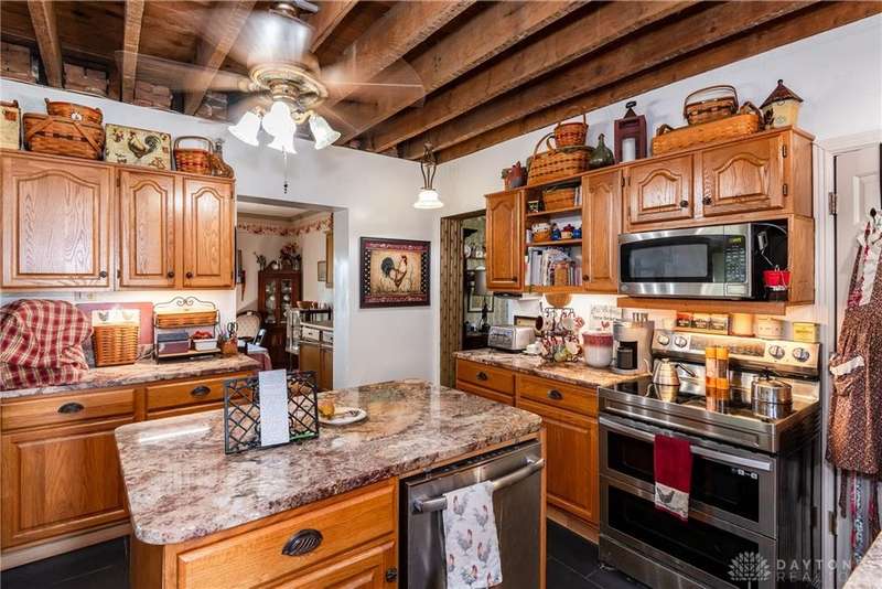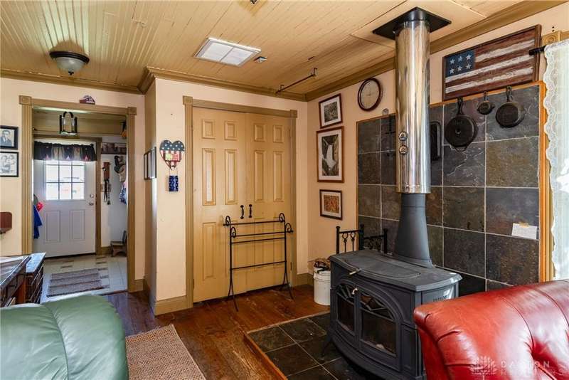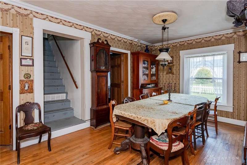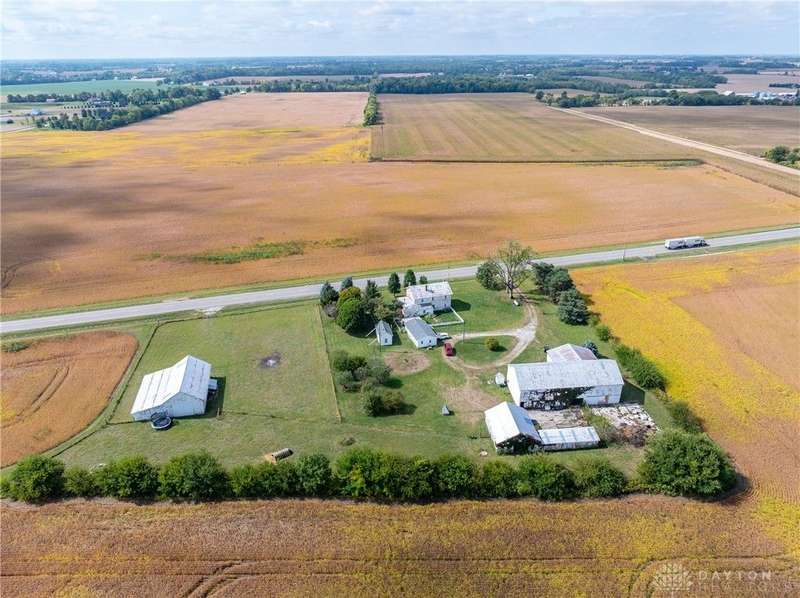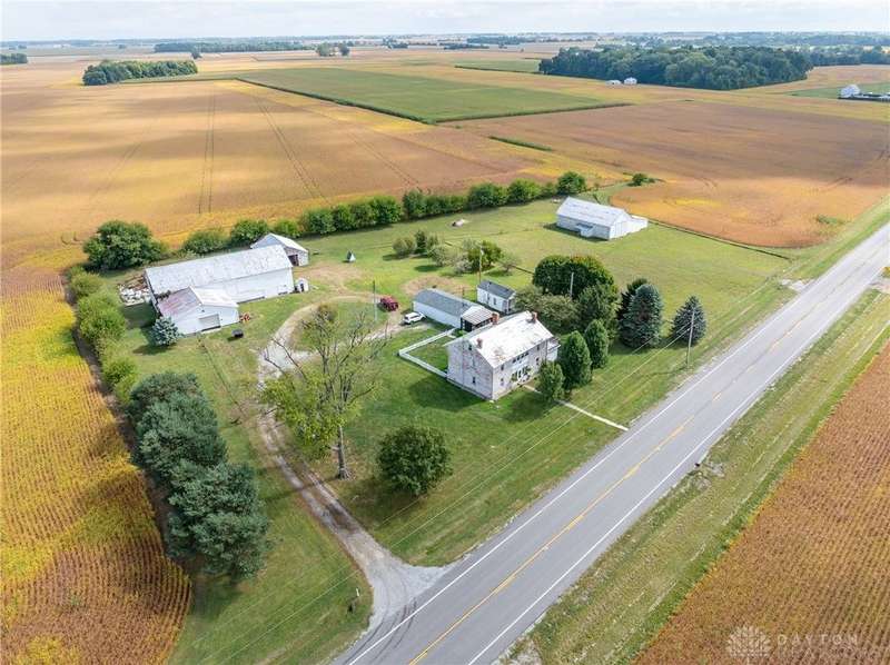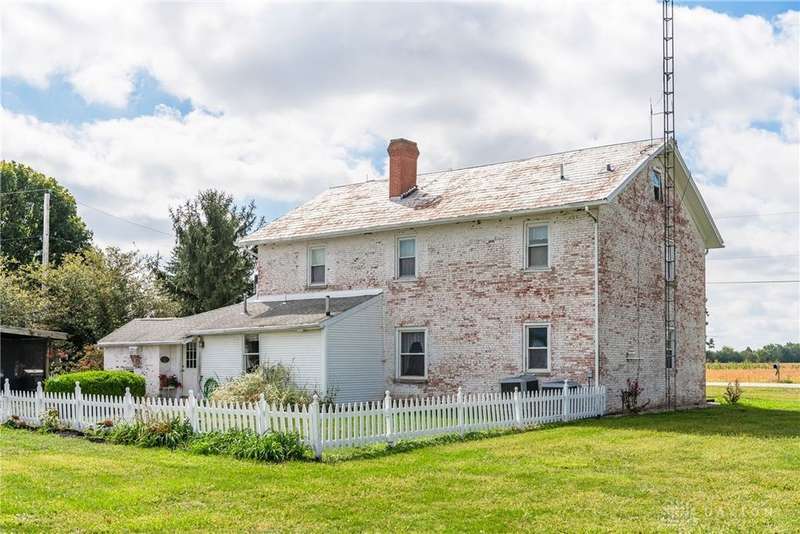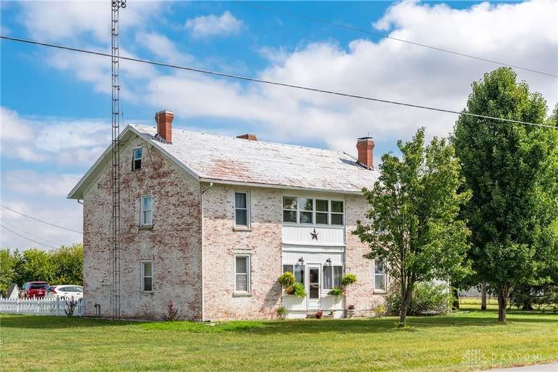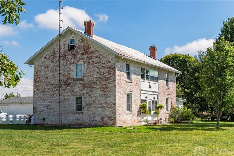 Welcome to the historic Evans Farm, known locally as "Doc Evans," a rare opportunity to own a piece of Ohio history. Built circa 1854 by the Shigley family and later home to A.B. "Doc" Evans, an influential figure in Ohio agriculture. This stately two-story brick farmhouse sits on 20.75 acres in the Greeneview School District. The 3,516 sqft home offers 4?6 bedrooms, 2 full baths, parquet oak hardwood floors, and a beautifully remodeled kitchen with granite pegmatite countertops and slate flooring. Warmth and character flow through the breakfast and dining rooms, family room with Vermont Castings wood stove, and enclosed porches, while modern comforts include updated HVAC, whole-house A/C, and a reverse osmosis water system. A 12x24 heated/cooled art or music studio with kitchenette, a two-car garage with workshop, and multiple barns and outbuildings including a 40x88 main barn with stalls and hay storage, a 57x60 pole building with pull-through for equipment, and livestock facilities make this property ideal for farming, hobbies, or multi-use living. The land features 15 acres of tillable farmland (CAUV tax benefit, generating $3,520 annual rent), 1.6 acres of fenced pasture, and a charming orchard with apple, peach, pear, and cherry trees. The seller is motivated, having already secured a new home, and is open to parceling off the land south of the residence. With its rich history, agricultural potential, and flexible opportunities, this remarkable property is being sold as-is and awaits its next steward.