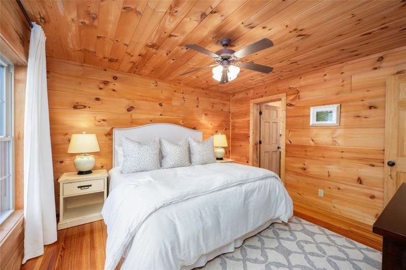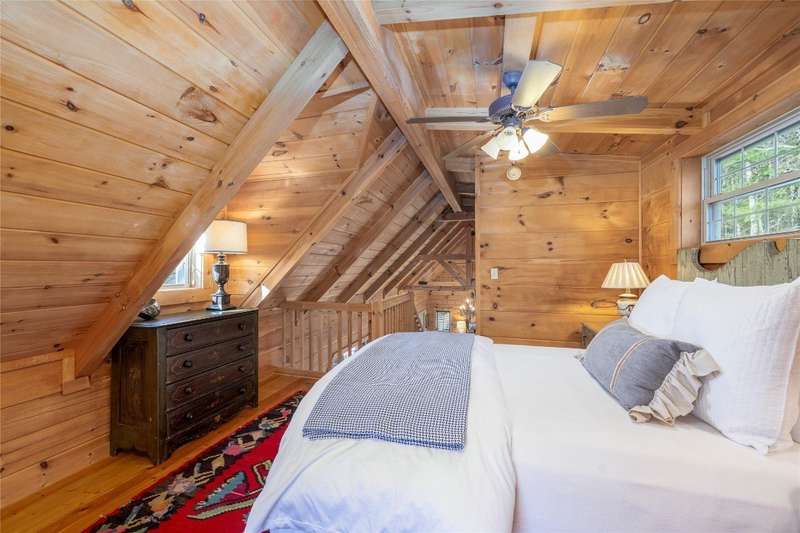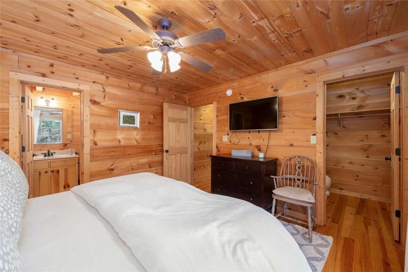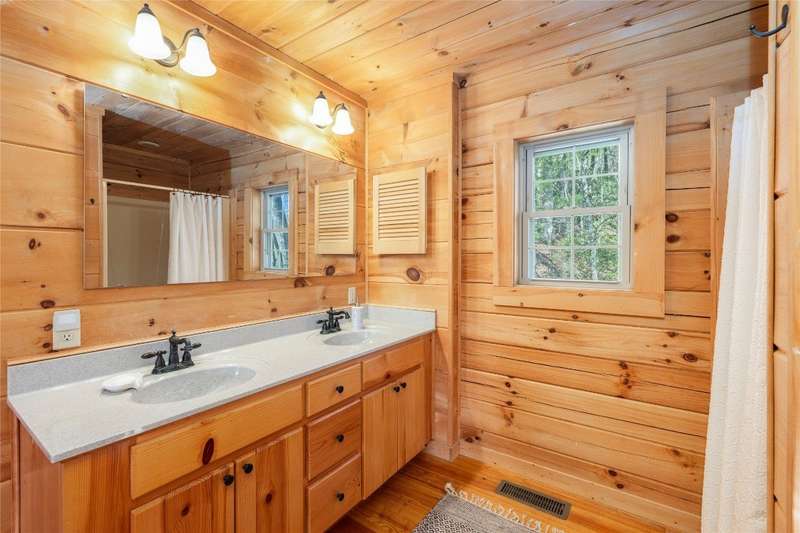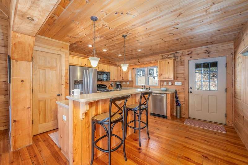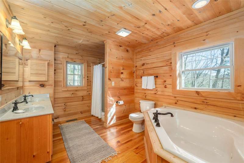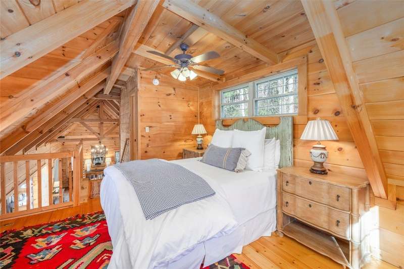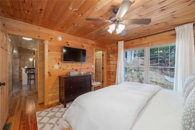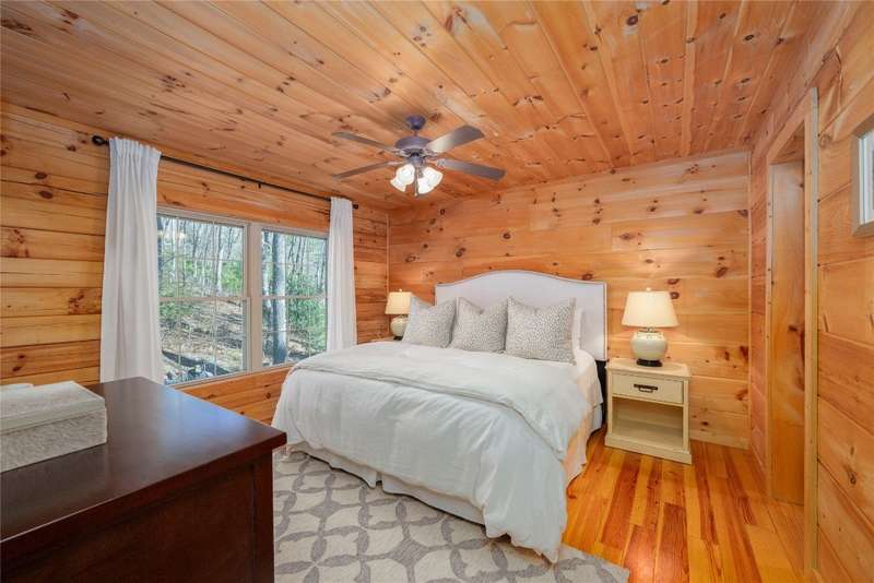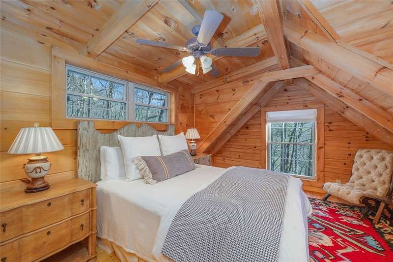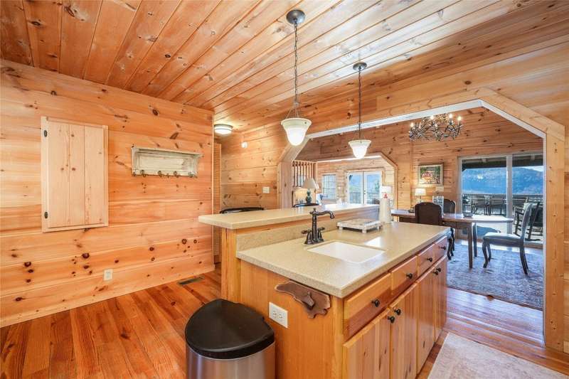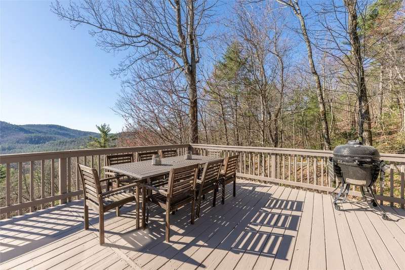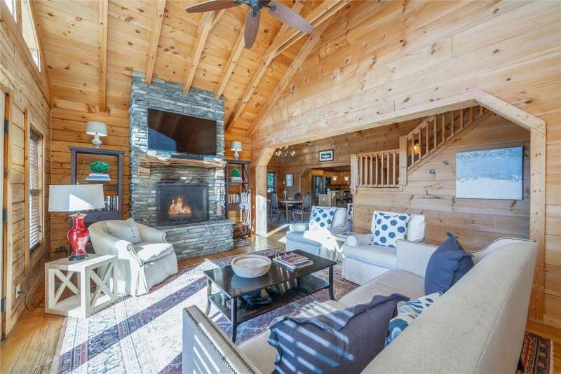 Perched on a scenic 3-acre +/- lot in Holly Berry Estates, this impressive log home captivates with its rustic allure and long-range mountain views. From nearly every room, gaze upon the beauty of Little Terrapin and pristine national forest land. Designed for mountain living with sophistication, this home blends elegant interiors, idyllic outdoor spaces, and breathtaking vistas. Step into the main living area, where vaulted ceilings with exposed timber beams create an expansive yet inviting atmosphere. The living room centers around a striking fireplace adjacent to large windows and French doors that connect to a sprawling back deck. Here, the panoramic views offer the ideal backdrop for quiet mornings or social gatherings. The adjoining dining room extends to a covered portion of the deck - complete with fireplace - making it perfect for enjoying mountain evenings surrounded by natural beauty. The thoughtfully designed kitchen combines style and function with a breakfast bar, stainless steel appliances, pendant lighting, and ample pantry storage. The main floor features two luxurious bedrooms. The primary suite's sliding doors open to sweeping mountain views and lead to another covered area of the deck. Its indulgent ensuite bathroom includes a large jetted tub, a separate shower, and dual vanities. A second bedroom with a full bathroom provides additional accommodation. On the upper level, a charming loft bedroom with its own full bathroom offers an airy retreat that is perfect for guests. Meanwhile, the lower level transforms into an entertainer's paradise, with a family room featuring a gas log stove and French doors leading to the lower, covered deck that shares the same mesmerizing views as the upper level. A large, open game and entertainment room includes a counter and sink, adding both functionality and fun. This level also has a bedroom, a full bathroom with a laundry area, and a generous utility and storage room. Modern conveniences include fiber internet, an EV charging station, a generator, and easy access to a level parking area. Combining rugged mountain charm with thoughtful design and stunning scenery, this property is a remarkable retreat for those seeking both beauty and comfort. Holly Berry Estates is situated at the base of Whiteside Mountain and has two private lakes for residents to enjoy fishing, swimming and non-motorized boating.