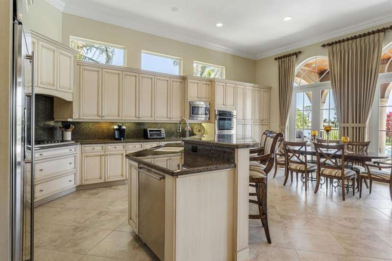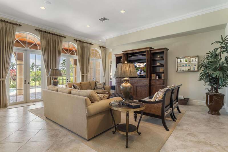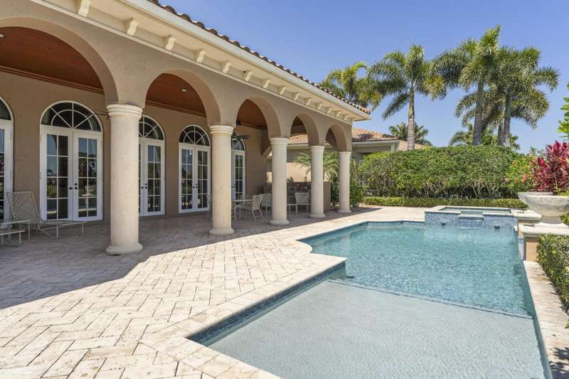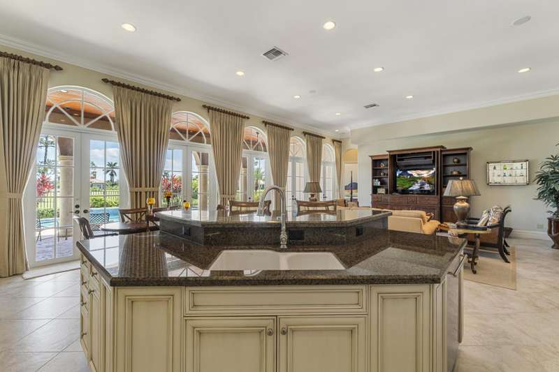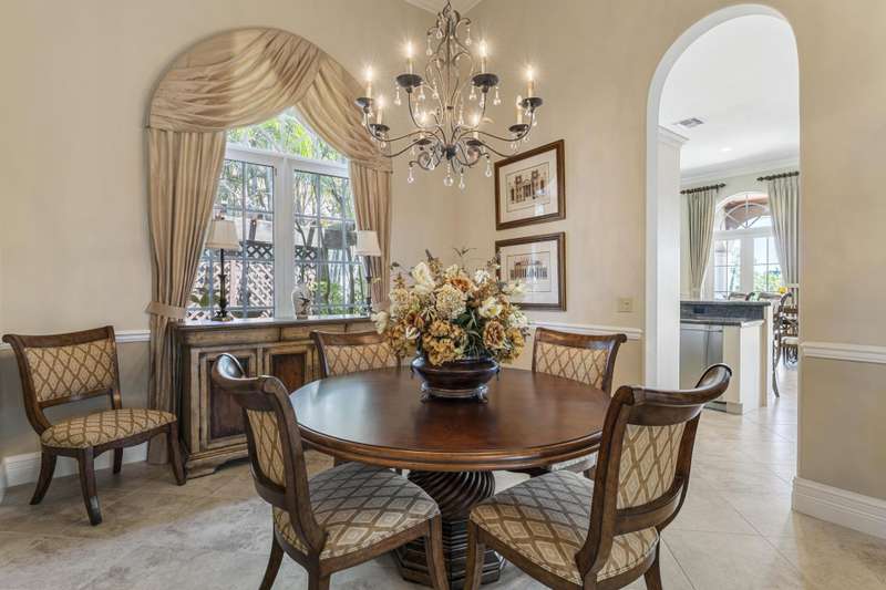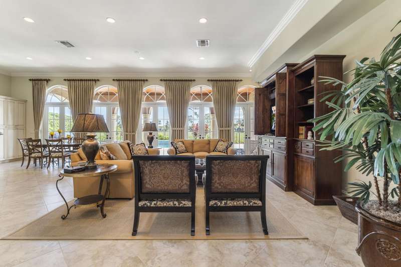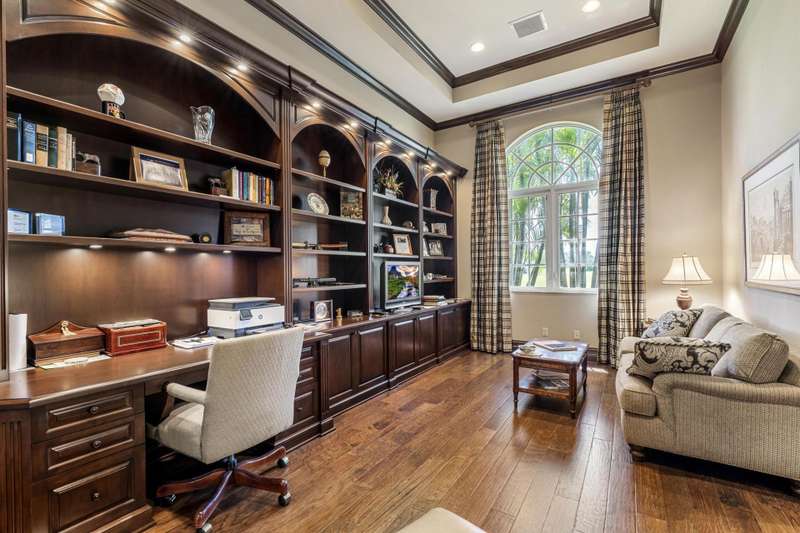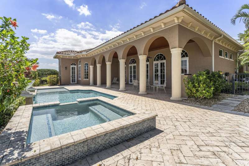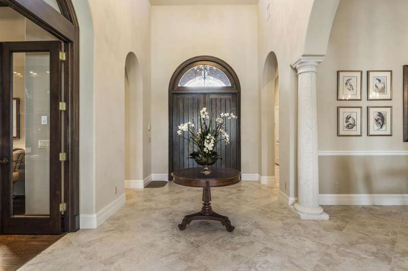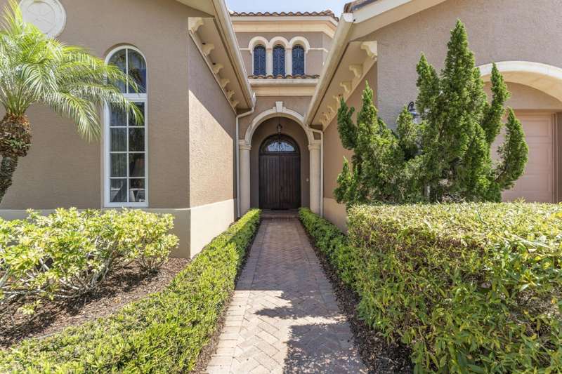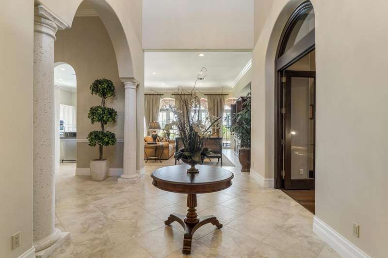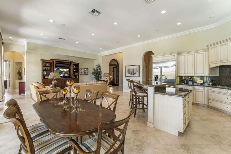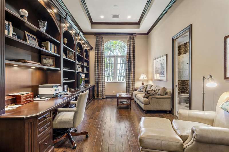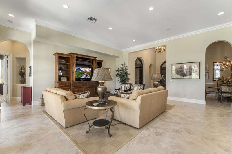 This is a fantastic opportunity in the Tesoro development that surely will not last long! This three-bedroom home, which includes a dedicated office and three and a half bathrooms, has everything for the most discerning buyer. The grand entrance is just the beginning, featuring soaring ceilings, an open floor plan, and top-of-the-line finishes that are rarely seen at this level. The home office serves as a comfortable sanctuary, complete with access to a full bathroom. The living room and family room seamlessly flow into the kitchen area, which overlooks the outdoor patio through an array of doors that provide ample natural light. The patio boasts an incredible covering with tongue and groove ceilings, making it perfect for entertaining and outdoor living. The pool has been tastefully re