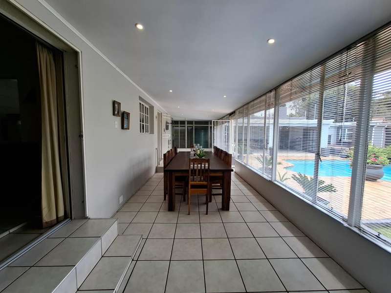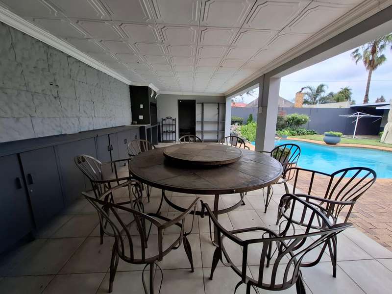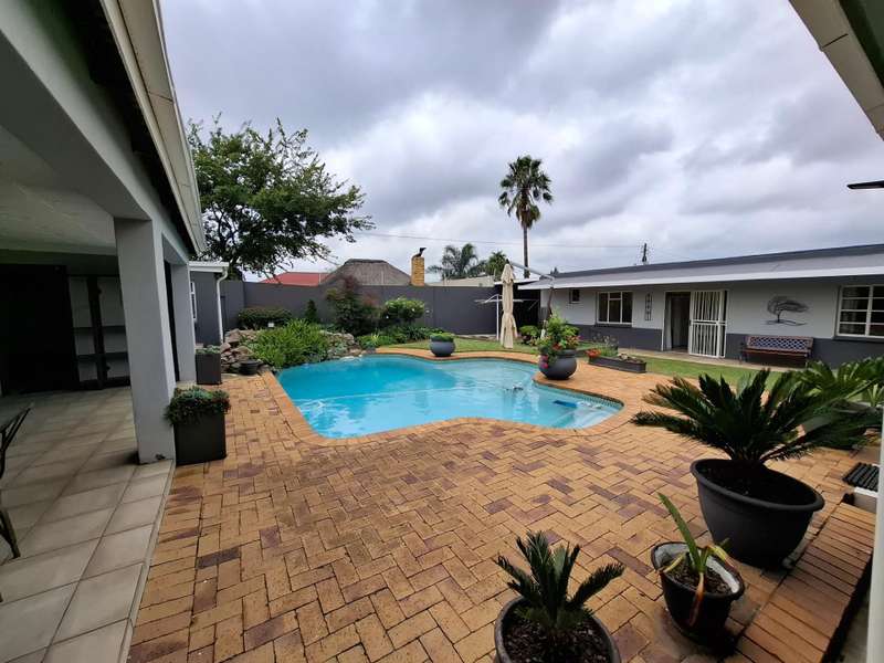 STUNNING RENOVATED HOME INCLUDES A SEPARATE FLATLET !!! MAIN HOUSE OFFERS: 3 Spacious bright and airy bedrooms 1 Full modern bathroom, beautiful tiles and fittings Large modern kitchen with ample cupboard space Open-Plan living and dining area, featuring air conditioning Enclosed sunroom, perfect for all family and friend gatherings Spacious entertainment area includes a built-in braai Beautiful sparkling swimming pool leads off from entertainment and built in braai area Store Room Staff Quarters ADDITIONAL FEATURES: Modern 1 bedroom flatlet, ideal for extended family or rental purposes. 2 Entrances to property for added convenience 2 JoJo Tanks which ensure a reliable water supply Gas Geyser Garden has been beautifully laid out and manicured. Home is secured by an electric fence, burglar bars, an alarm and cameras. Don't miss out on this one, contact us today to arrange a viewing.