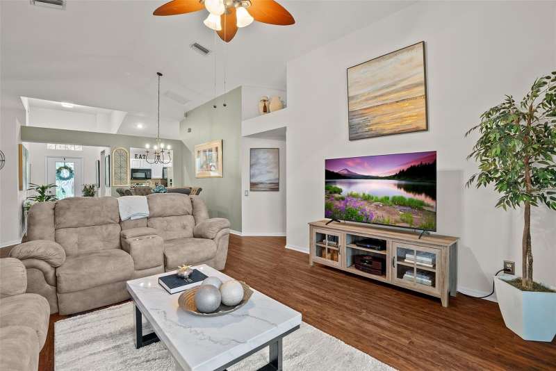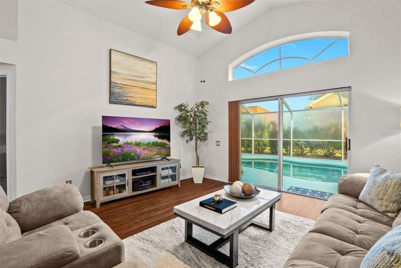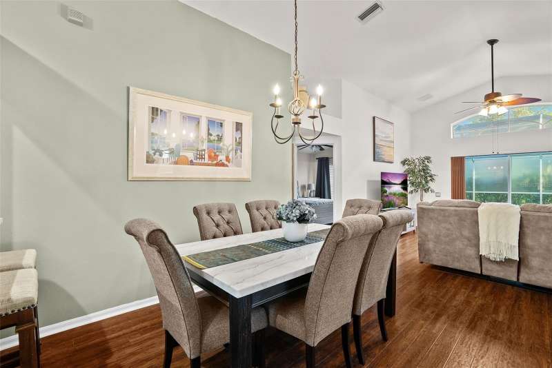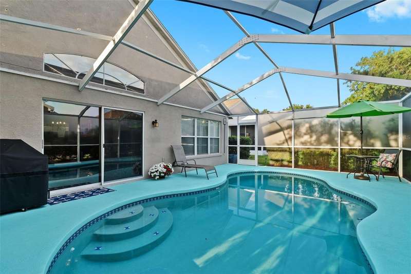 Pool Home in Cheval West. Move in ready, beautifully updated 4-bedroom, 2-bathroom, 2-Car Garage, 1655 Square Feet Of Living. New Roof in April 2020. Floorplan has an open, airy layout, vaulted ceilings with a split-bedroom design. The interior also features stylish luxury vinyl plank flooring with carpet in the bedrooms. The kitchen features granite countertops, a spacious pantry, Stainless steel appliances, flat cook top range and a pass thru to the dining area. The kitchen also includes step saving laundry closet in dinette area. The pool area features sparkling in-ground pool within a privacy screen, surrounded by lush landscaping and shrubs on all sides for added privacy. Located just minutes from the Club at Cheval which includes GOLF and tennis and much more (With paid membership fees additional to HOA). Located in the top-rated Steinbrenner High School district and minutes from the Veterans Expressway, Suncoast Trail, Tampa International Airport, and top-tier shopping and dining. Call today to schedule your private tour!
