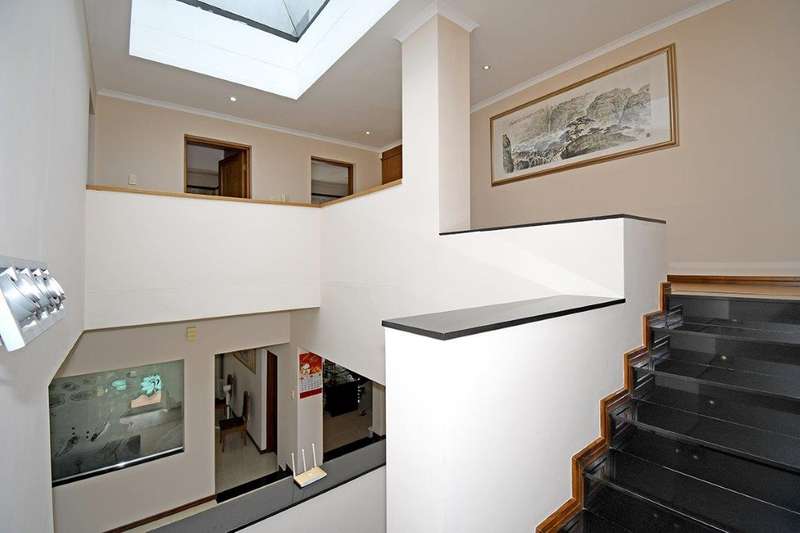 Well priced and well positioned cluster in secure complex has the credentials and accommodation for a "good buy" ! The open plan living area with porcelain tiles leads to the double volume central dining room with natural light, formal lounge with fireplace , family room and covered enclosed patio. Private study or guest suite with an adjacent bathroom. The chefs kitchen features warm wood finishes,a versatile mobile island,pantry and separate scullery/laundry. The upstairs consists of 3 spacious sunny bedrooms each with its own en-suite bathroom, air conditioner, and access to the common balcony. The outdoor offers secure easy living and entertaining in a landscaped garden with a sparkling pool. Double garage, ample visitors parking, staff accommodation, back up power, alarm, electric fence. This home offers exceptional value.
