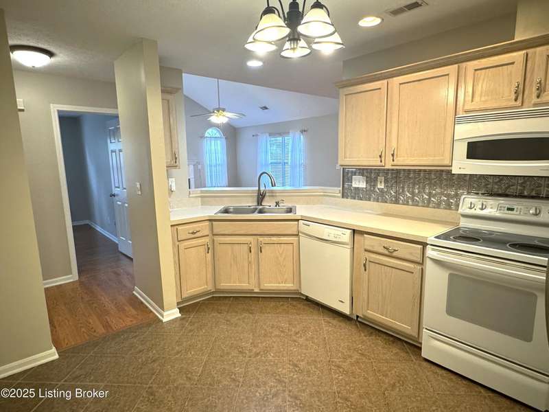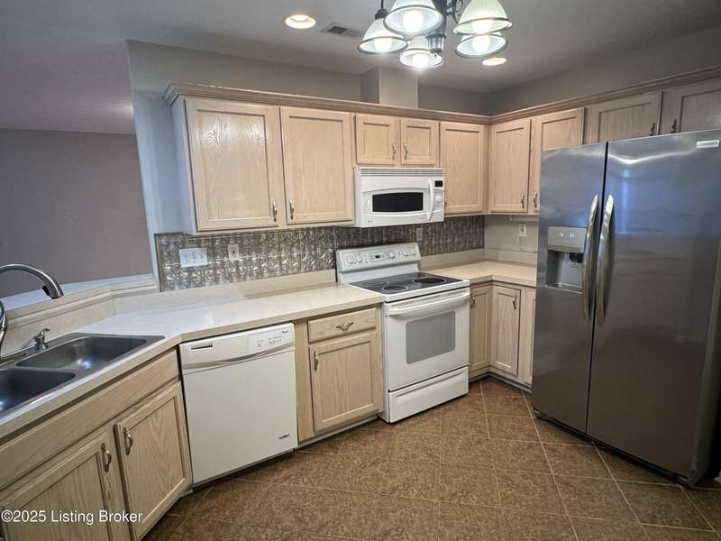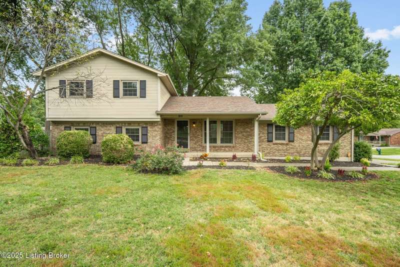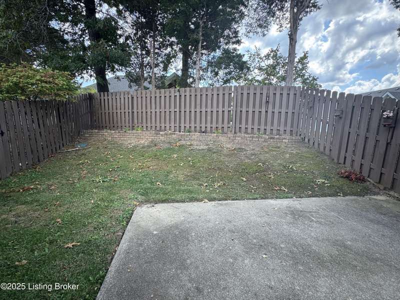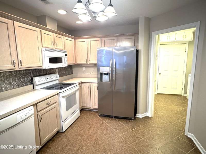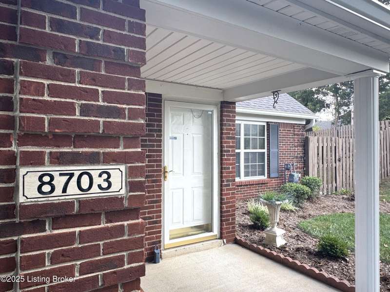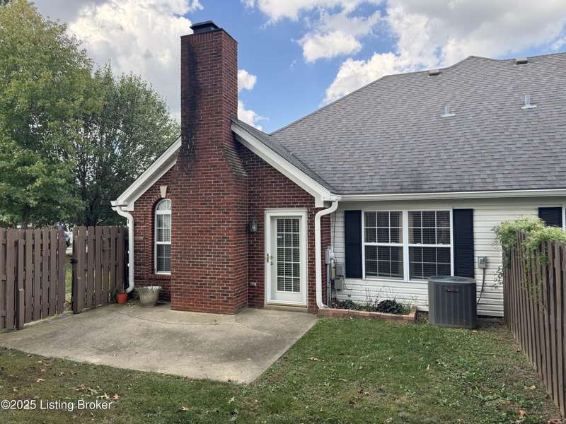 Wonderful patio home (owned in fee simple) in the desirable GLENMARY community! Located at the end of one court with a spacious FULLY FENCED YARD and large PATIO for added privacy. Welcoming COVERED PORCH entry. Foyer leads to spacious VAULTED GREAT ROOM with FIREPLACE. Sizeable dining area adjacent to kitchen with plenty of WOOD CABINETS, recessed lighting, newer appliances, and barstool dining area. Primary bedroom suite with newly remodeled TILED WALK IN SHOWER, double sink vanity, and large walk-in closet. Split floorplan with an additional bedroom and full bathroom on the other side of home. Numerous closets, quality window blinds, faux wood flooring (no carpet), and neutral colors throughout. Truly move in ready! Attached 2 CAR GARAGE once was a prized workshop with extensive shelving, cabinets, pull down attic storage, and a separate gas-powered furnace. Laundry room has numerous cabinets along with washer and dryer which will remain. Very private setting. No through traffic. Minutes to Gene Snyder expressway, shopping, restaurants and more conveniences. Low maintenance fee includes exterior maintenance, grounds keeping, snow removal, and trash.