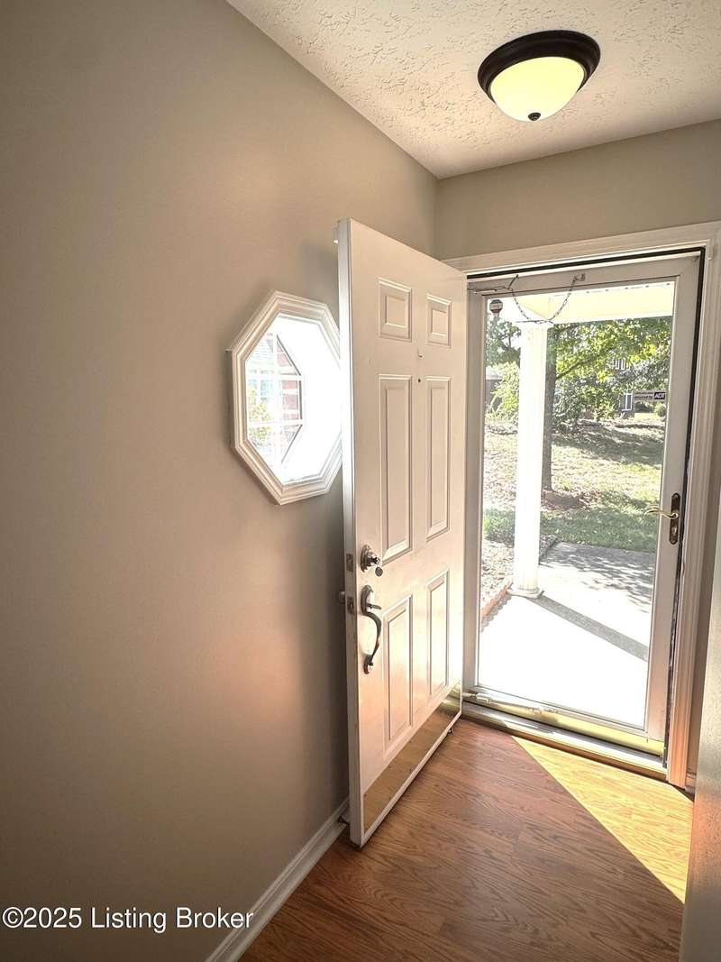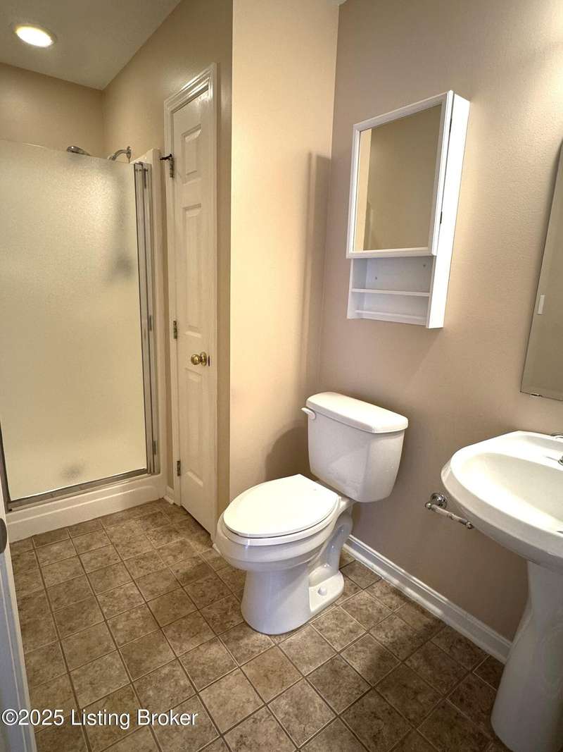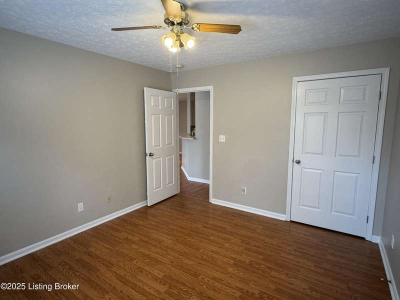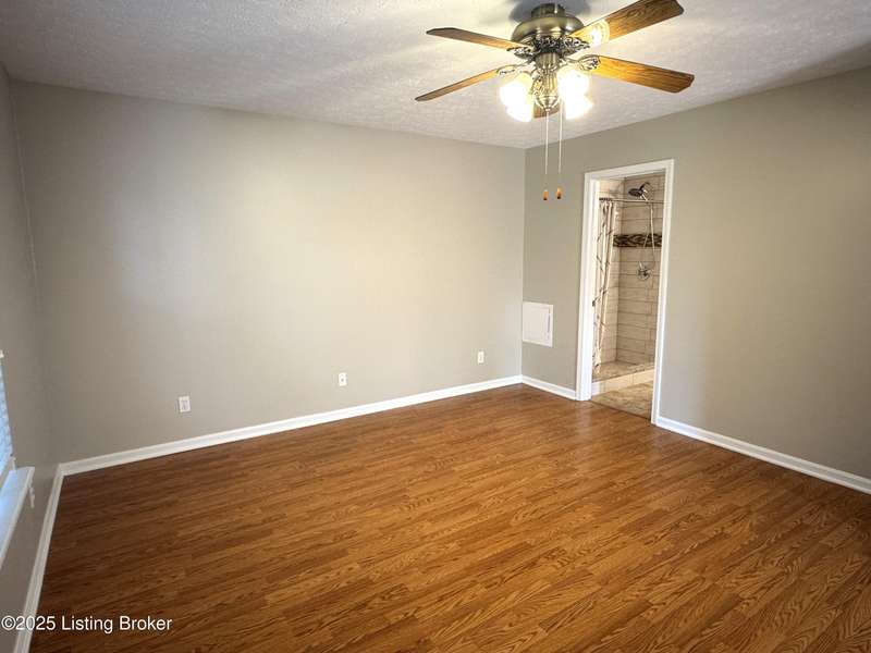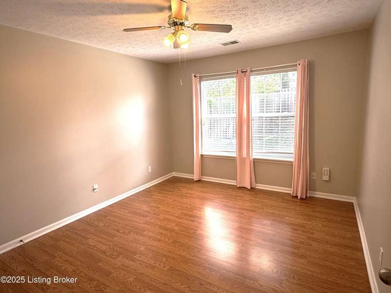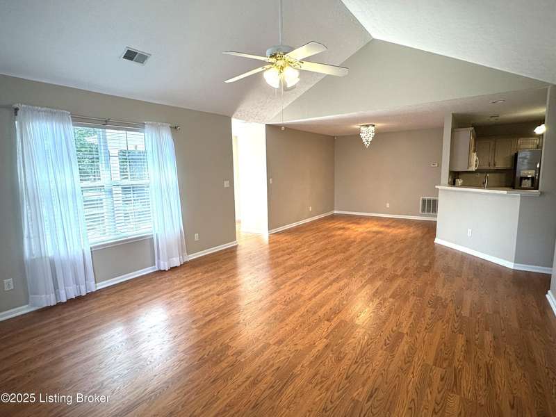 Wonderful patio home (owned in fee simple) in the desirable GLENMARY community! Located at the end of one court with a spacious FULLY FENCED YARD and large PATIO for added privacy. Welcoming COVERED PORCH entry. Foyer leads to spacious VAULTED GREAT ROOM with FIREPLACE. Sizeable dining area adjacent to kitchen with plenty of WOOD CABINETS, recessed lighting, newer appliances, and barstool dining area. Primary bedroom suite with newly remodeled TILED WALK IN SHOWER, double sink vanity, and large walk-in closet. Split floorplan with an additional bedroom and full bathroom on the other side of home. Numerous closets, quality window blinds, faux wood flooring (no carpet), and neutral colors throughout. Truly move in ready! Attached 2 CAR GARAGE once was a prized workshop with extensive shelving, cabinets, pull down attic storage, and a separate gas-powered furnace. Laundry room has numerous cabinets along with washer and dryer which will remain. Very private setting. No through traffic. Minutes to Gene Snyder expressway, shopping, restaurants and more conveniences. Low maintenance fee includes exterior maintenance, grounds keeping, snow removal, and trash.