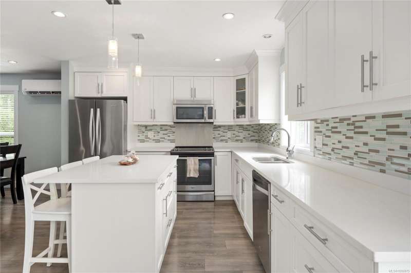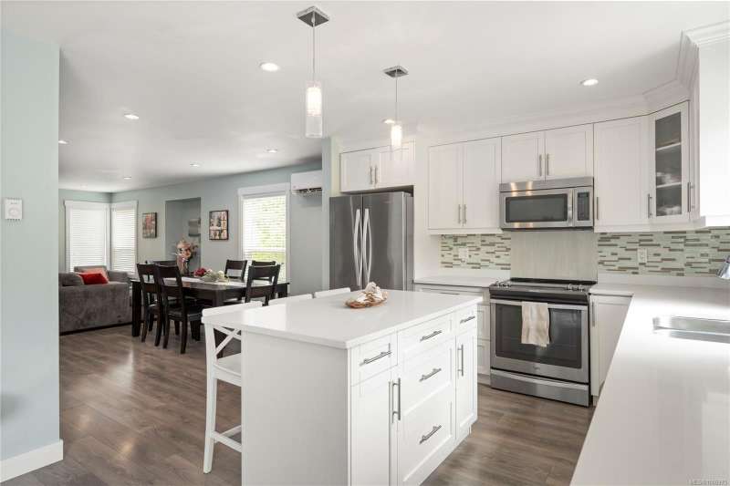 Functional family home with a furnished suite, set in a quiet & convenient spot in Pleasant Valley! Just minutes from North Nanaimo's top schools, shopping, & everyday amenities, this 5-BD, 4-BA main level entry home is perfect for families or investors. The main features a bright, open-concept kitchen w/ quartz counters, a large island with eating bar, tiled backsplash, and excellent flow to the adjoining dining, living, & family rooms. A slider off the family room leads to a sunny deck & landscaped backyard—perfect for entertaining or relaxing.