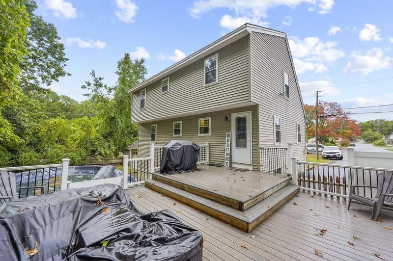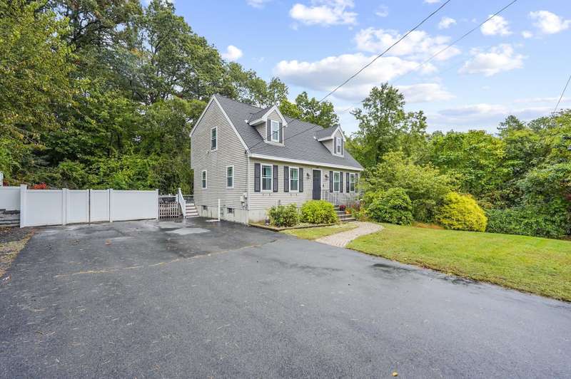 Welcome to this picture-perfect Cape — a quintessential New England gem in the heart of Nashua. The inviting kitchen features gas cooking and a center island with a breakfast bar — ideal for everyday meals or entertaining. A formal dining room offers the perfect space for gatherings, while the sunny living room boasts beautiful hardwood floors. A first-floor bedroom and convenient half bath with laundry complete the main level. Upstairs, you’ll find three spacious bedrooms, including a primary suite with soaring ceilings and a walk-in closet. A full hallway bath serves all bedrooms with ease. Need more space? The finished lower level provides significant bonus living area with a finished family room. The fully fenced backyard is your personal haven, complete with a spacious deck, patio area, and an above-ground pool for endless enjoyment. Situated on a desirable corner lot with easy access to local amenities, shopping, and major routes, this home is truly a commuter’s dream. Your search ends here — this is the one you’ve been waiting for!