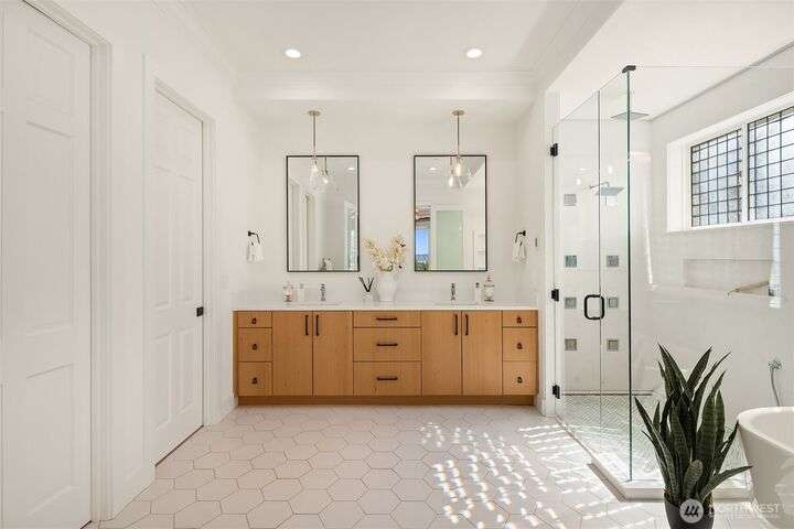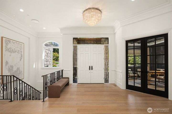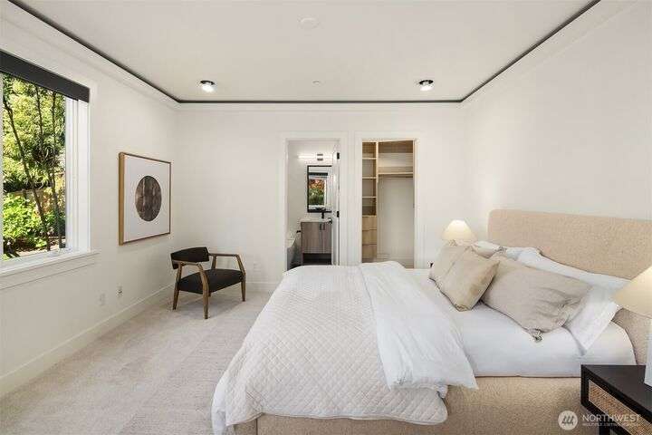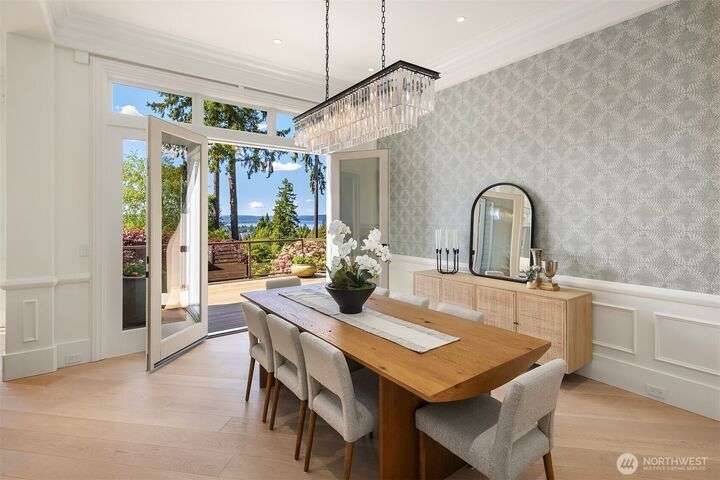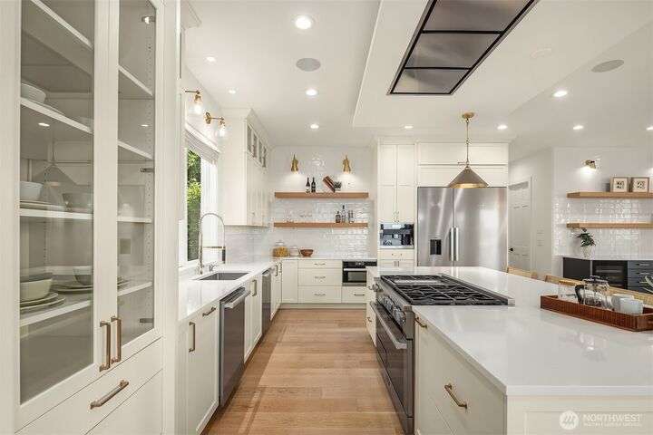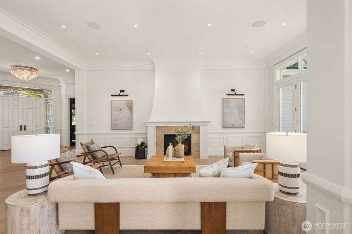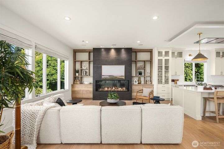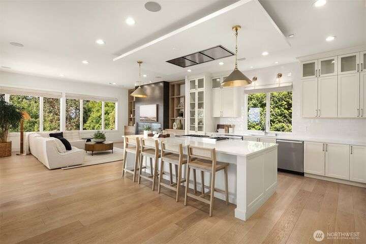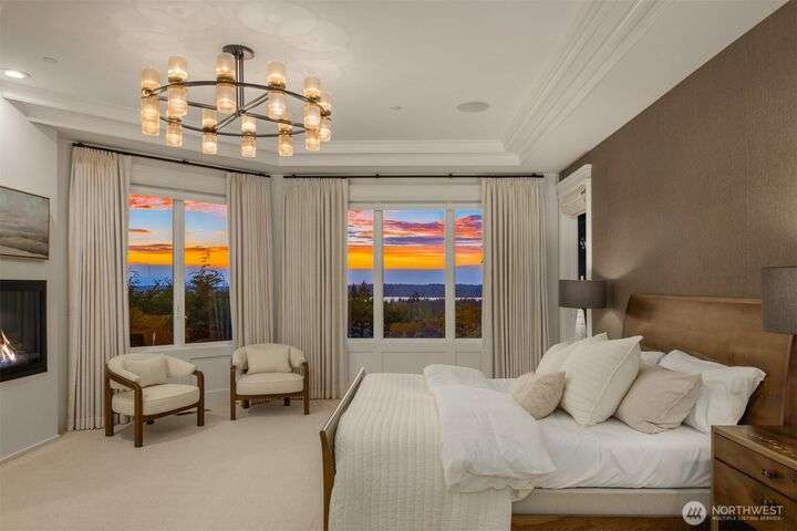 Experience sunsets & sweeping vistas from this stunning Clyde Hill luxury home. A 2022 renovation made this residence into a move-in ready home w/panoramic views of mountains & Lake WA. The main floor is an open layout connecting bright, spacious living areas. The gourmet kitchen is a masterpiece of design & function. The family room provides spectacular views. The primary suite incls a fireplace, spa-inspired bath & a Nordstrom-worthy walk-in closet. Downstairs, three ensuite beds, a large theater, a rec room w/wet bar, a wine cellar & a 2nd laundry. The highlight: a full generational living suite/ADU featuring its own kitchen & private single-car garage. This is the pinnacle of Clyde Hill living. Mins from Bellevue, Seattle, parks & more.