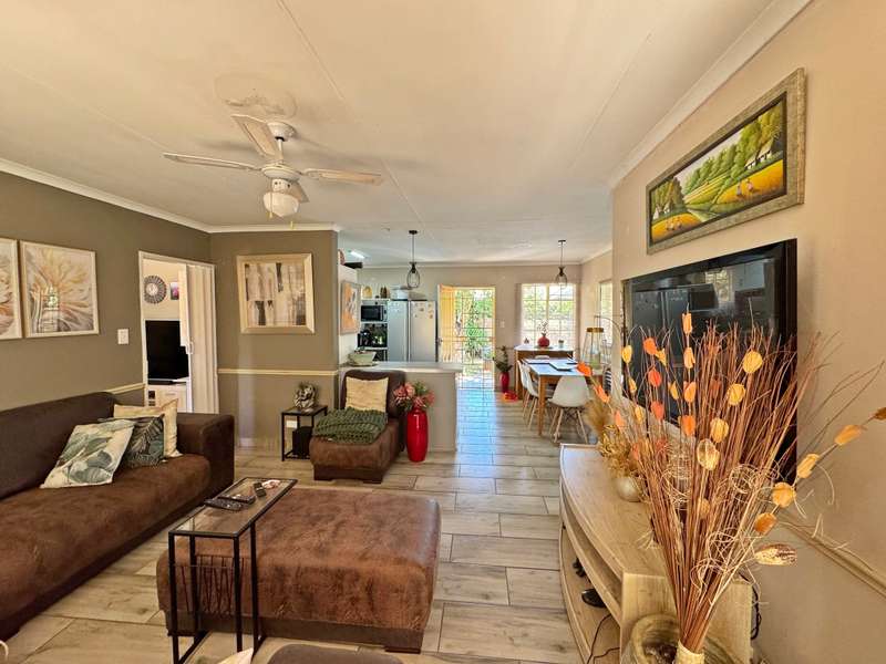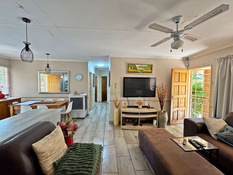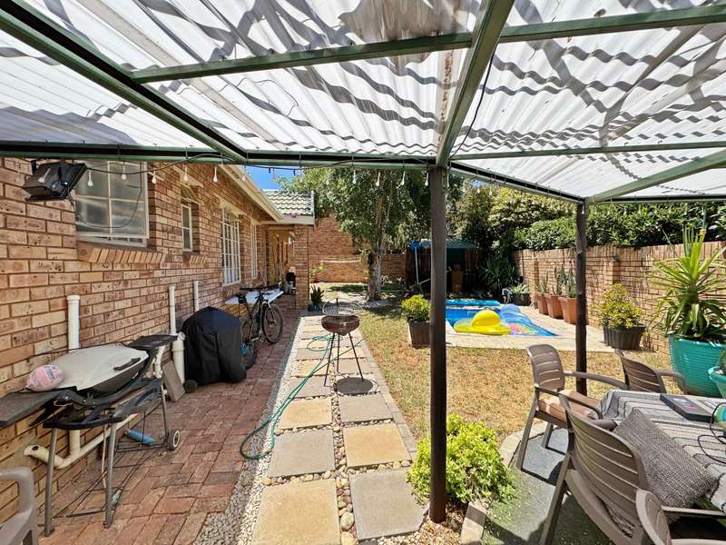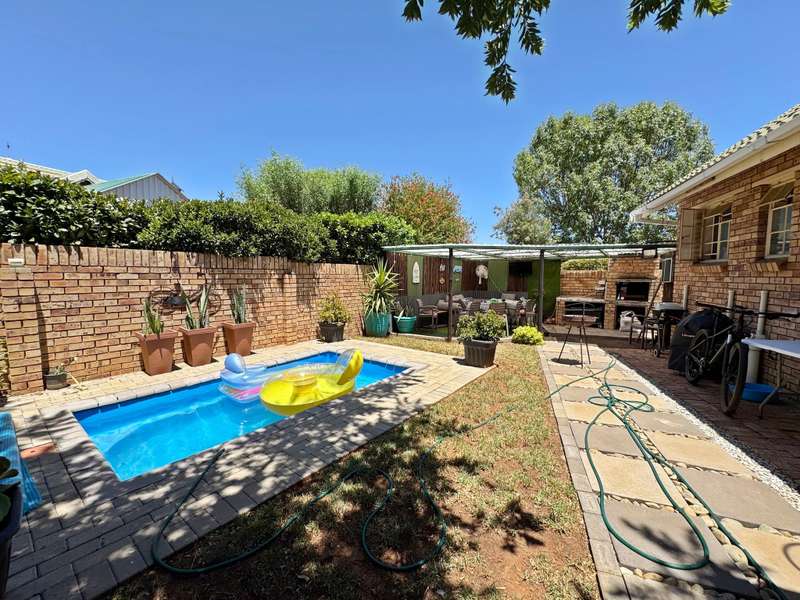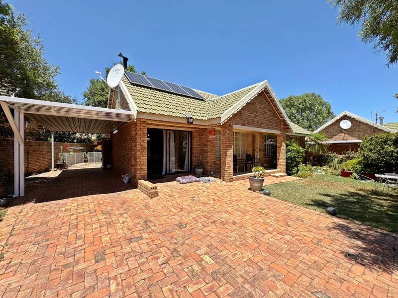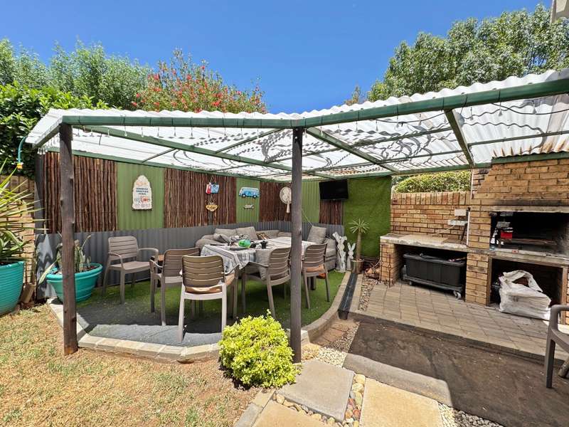 SOLE MANDATE!! This modern 3-bedroom with 2 bathrooms, townhouse is a perfect fit for first-time homebuyers or those looking to downsize without sacrificing luxury! Also includes 2 lounges, and a convenient laundry room, it offers comfort and practicality in every corner. The open-plan kitchen and dining area create a spacious, airy feel, ideal for family living and entertaining. Step outside to a covered patio with a built-in braai, overlooking a sparkling splash pool and a well-maintained garden – perfect for outdoor relaxation. With thoughtful additions like solar panels with an inverter, garden, a wendy house for extra storage, and a JoJo tank, this home is as eco-friendly as it is stylish. You’ll also have a secure carport and parking, plus an alarm system for peace of mind. This townhouse truly ticks all the boxes for a comfortable, modern lifestyle with all the extra conveniences!