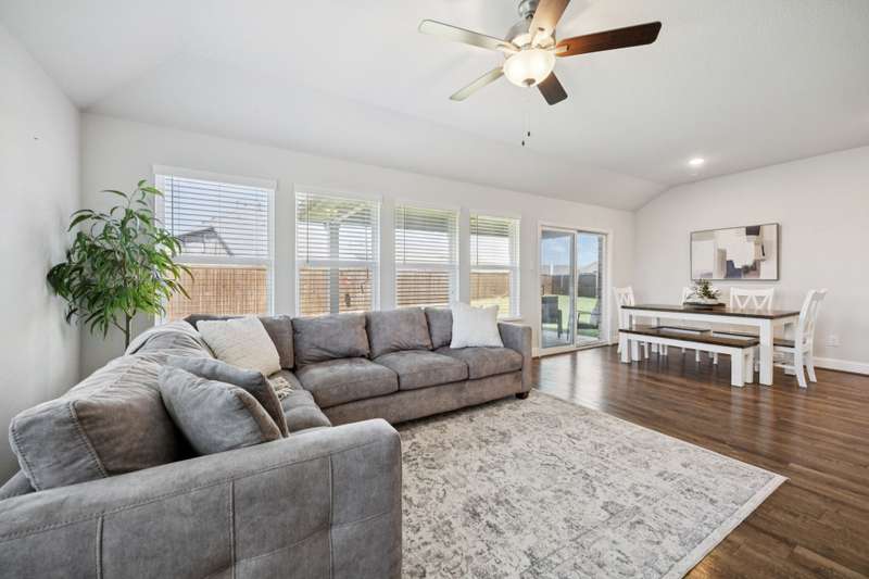 Welcome to this better than new Taylor Morrison home, ideally located on an oversized cul-de-sac lot in the highly sought-after Rockwall ISD. With beautiful curb appeal and thoughtful upgrades inside and out, this property is a wonderful opportunity and perfect for the first-time home buyer looking for a move-in ready home.From the moment you arrive, youll be greeted by the inviting stained and stamped front porch. Step inside to discover a bright and welcoming open floor plan enhanced by luxury vinyl flooring and upgraded interior doors, blending functionality with modern style.The kitchen is sure to impress with its Corian countertops, undermount stainless steel sink, 5 burner gas cooktop, marble backsplash and numerous upgrades designed to make both cooking and entertaining a joy. Additional features include cabinetry in the laundry room as well as extra cabinets above the toilets in both bathrooms, providing convenient and smart storage solutions.Enjoy outdoor living year-round with a stained and stamped back porch, gas outlet, plus an extended covered patio overlooking the spacious backyard ideal for relaxing evenings, weekend cookouts, or a future play area.As a resident of Travis Ranch, youll have access to an incredible lineup of amenities, including a community pavilion with grilling stations, multiple swimming pools, a splash park, playground, sports fields, and even an inline hockey rink. Miles of greenbelts and parks wind throughout the neighborhood, and the communitys prime location near Lake Ray Hubbard offers endless opportunities for outdoor recreation.Situated in a highly desirable neighborhood with access to Rockwall ISD schools, this home combines comfort, convenience, and community living. Dont miss your chance to make this wonderful property yours!