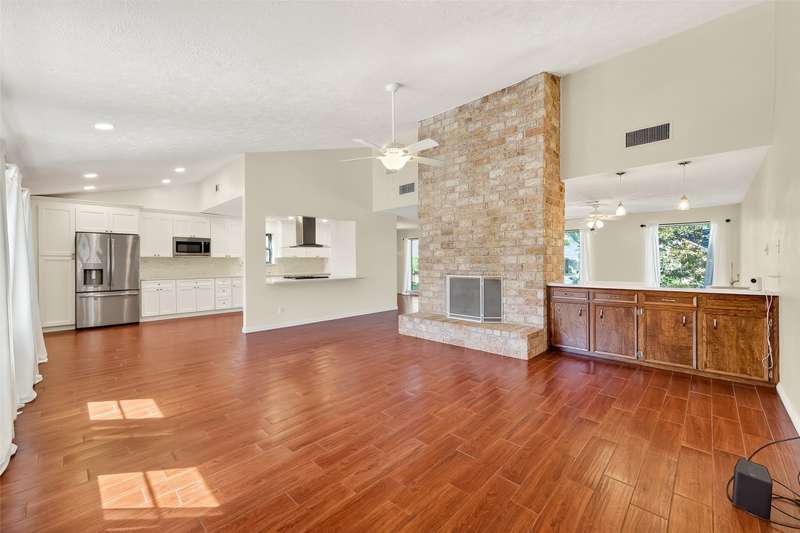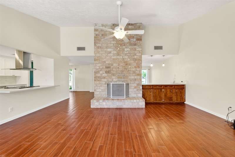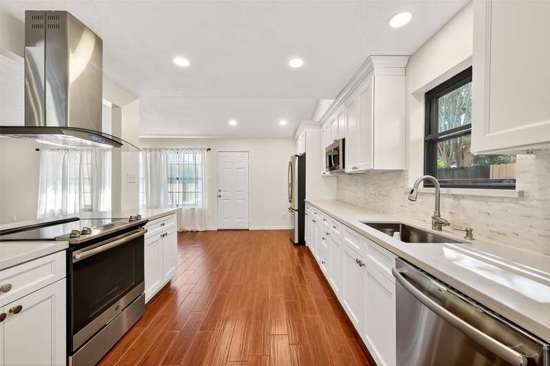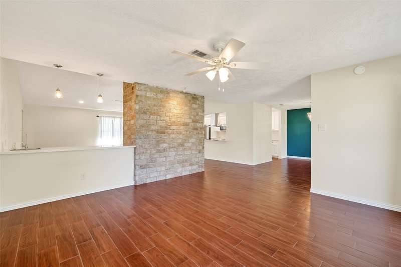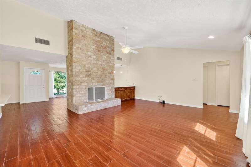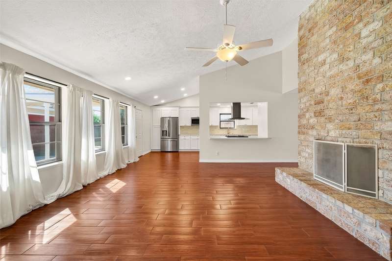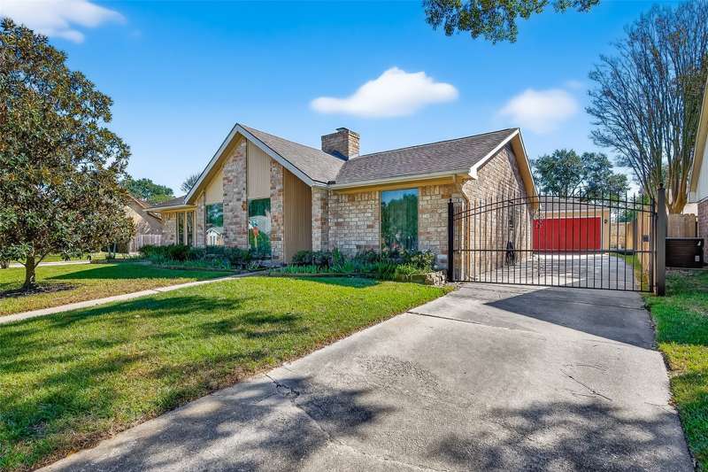 Remarkable turn key opportunity in the Memorial Parkway subdivision. Zoned to well rated Katy schools and located outside the flood plain, this pristine ranch sits upon a quiet, oversized corner lot with mature trees and landscaping. The interior features four generously sized bedrooms, an open concept living area with plentiful natural light throughout. The recently remodeled gourmet white kitchen features high quality quartz countertops, marble backsplash with new cabinets and drawers. Spacious Family Room with gas fireplace and wet bar for entertaining. Woodgrain ceramic tile throughout the living areas. The Primary Bedroom suite features a luxuriously remodeled spa-like bath, with oversized walk in shower and dual vanities. All the big ticket items have been addressed: PEX plumbing throughout the home, HVAC and tankless water heater installed in 2022. Roof installed in 2017. Driveway gate offers additional security and privacy and a 3 car garage. Pride of ownership throughout.