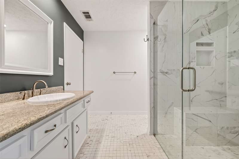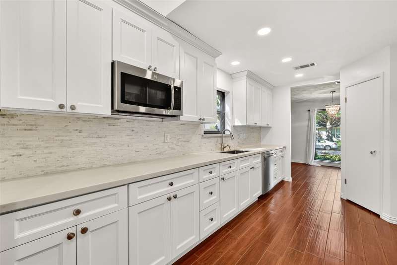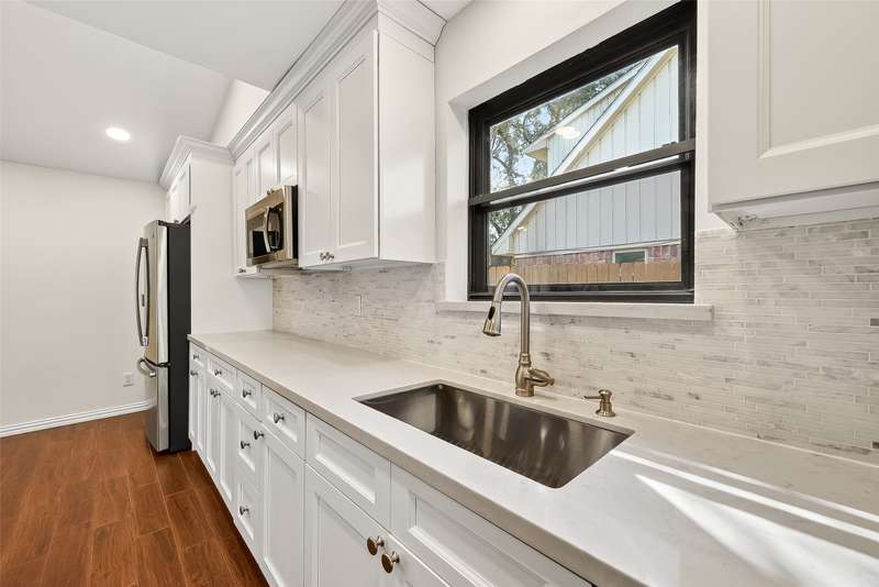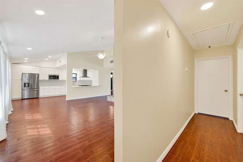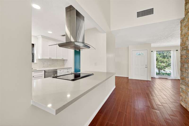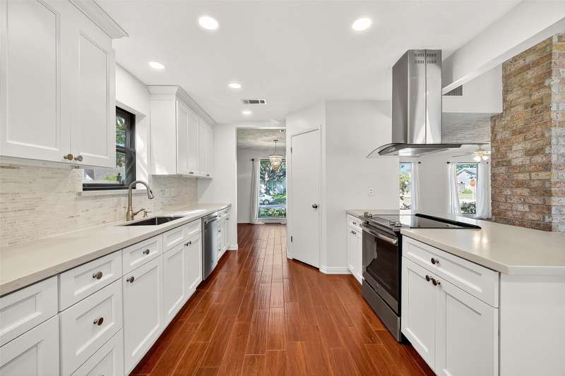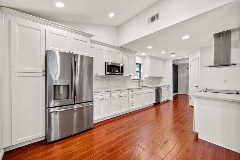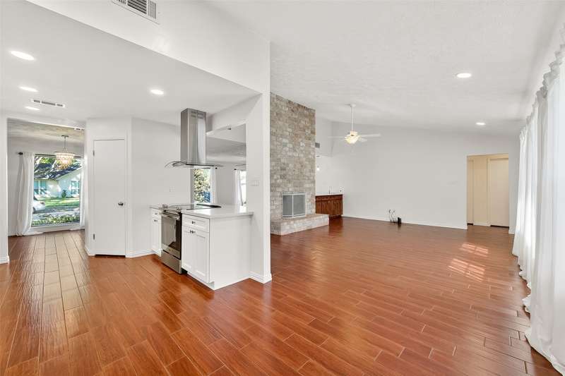 Remarkable turn key opportunity in the Memorial Parkway subdivision. Zoned to well rated Katy schools and located outside the flood plain, this pristine ranch sits upon a quiet, oversized corner lot with mature trees and landscaping. The interior features four generously sized bedrooms, an open concept living area with plentiful natural light throughout. The recently remodeled gourmet white kitchen features high quality quartz countertops, marble backsplash with new cabinets and drawers. Spacious Family Room with gas fireplace and wet bar for entertaining. Woodgrain ceramic tile throughout the living areas. The Primary Bedroom suite features a luxuriously remodeled spa-like bath, with oversized walk in shower and dual vanities. All the big ticket items have been addressed: PEX plumbing throughout the home, HVAC and tankless water heater installed in 2022. Roof installed in 2017. Driveway gate offers additional security and privacy and a 3 car garage. Pride of ownership throughout.