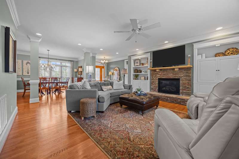 Your dream home is waiting on Shoveler Dr! Perfect for entertaining, with gorgeous indoor AND outdoor living spaces. You will want to spend every morning and evening relaxing in your all-weather porch (heater makes it comfortable for all but the coldest of winter days) and gorgeous multilevel patio with fireplace. The home boasts a cooks kitchen, with large island, newer appliances, and plenty of storage. Second floor has 3 more bedrooms, 2 full baths, and a bonus for office, exercise, or play spaces. The yard blooms with every season and there is even raised garden space for the green thumb in the family. The driveway is ready for a half court challenge or even a volleyball match (net included). Storage is no problem, with pull-down attic access, multiple eave storage areas and shelving above the garage door. Easy access to shopping and schools.