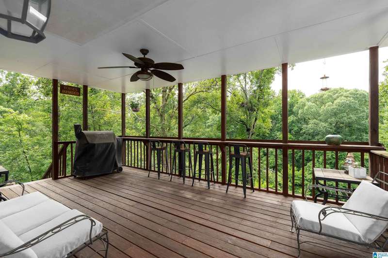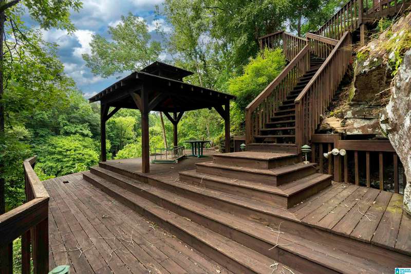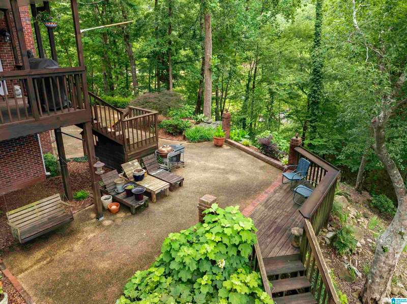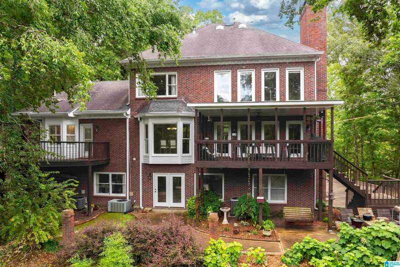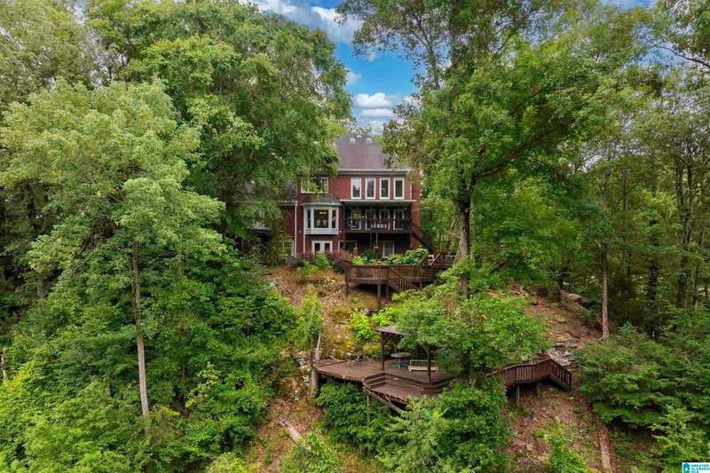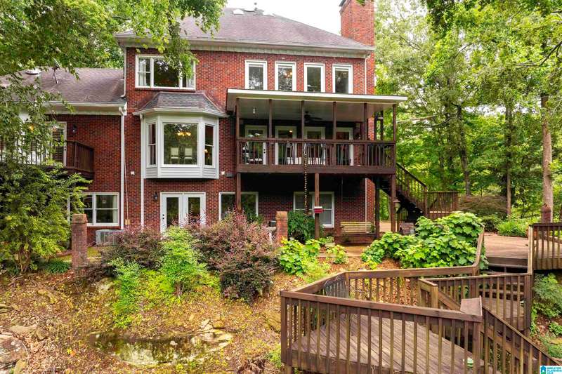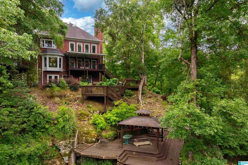Privacy plus in this all brick Riverchase Home overlooking the Cahaba River. A must see! Taking a winding drive through the forest leads to this awesome, home sitting on a wooded 1.25+ acre lot. This home has a wonderful floor plan for indoor and outdoor entertaining. A dream come true updated kitchen with custom cabinetry, granite countertops and tile backsplash. Double ovens, built-n wine rack, breakfast bar and island. A view to die for from den and breakfast room. Covered deck with view of the Cahaba River. Main level primary bedroom with sitting area and Double Palladian window, bath suite with walk-in closets, free standing soaking tub and double sinks. Step out on your own private deck from this suite. Upstairs are 4 large bedrooms and 2 full baths. Plus a huge Den with wood burning fireplace and wet bar. Basement has playroom, 3 car garage and workshop area and loads of additional unfinished area. Multiple decks leading to the Cahaba. Enjoy private campfires and music.