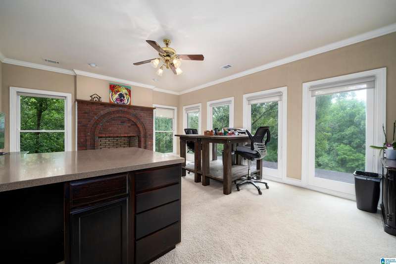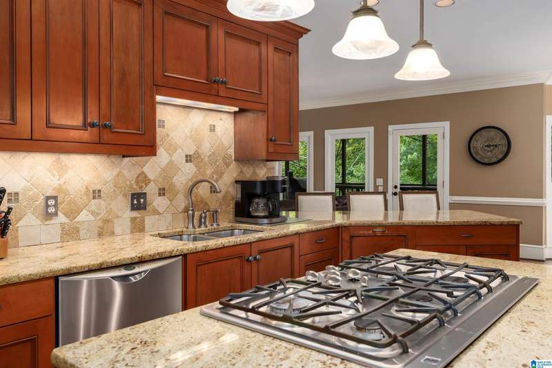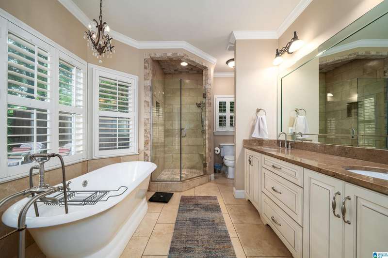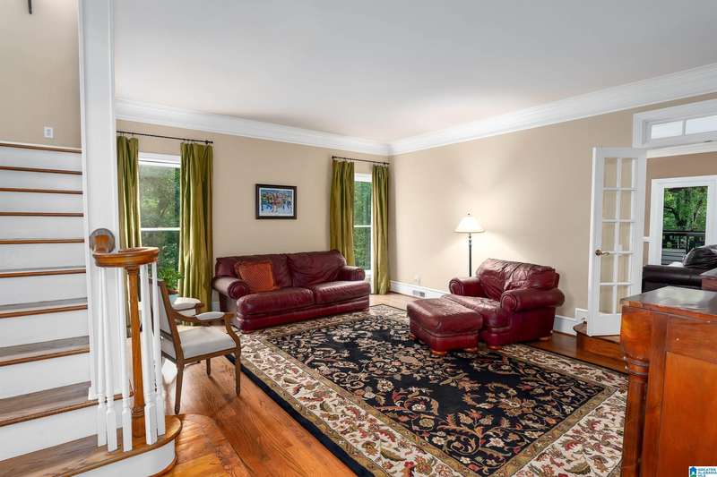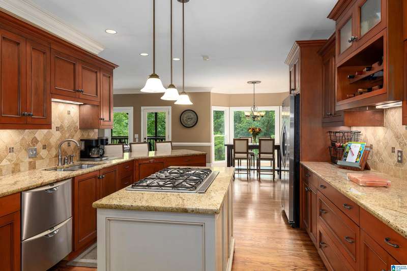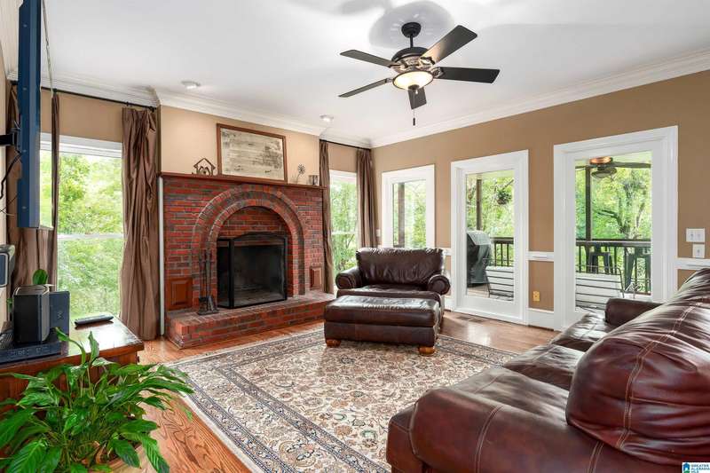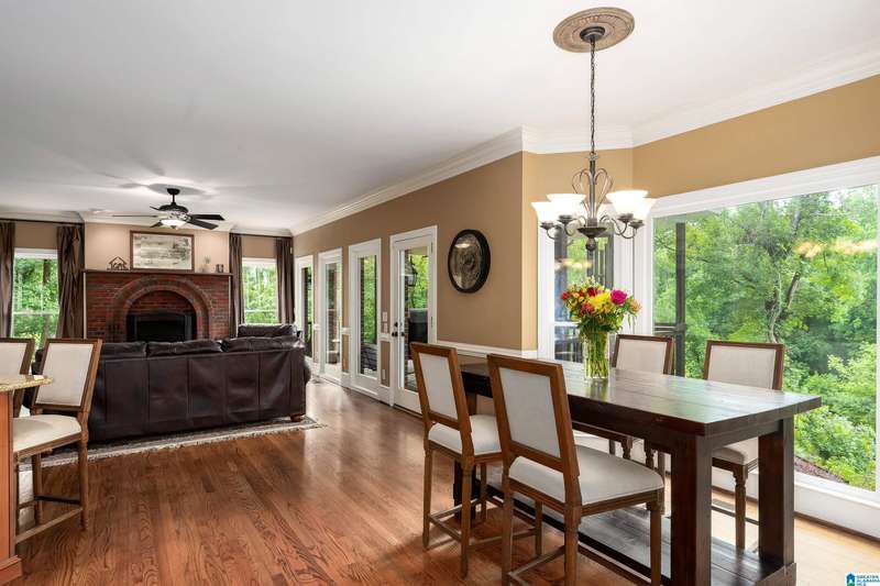 Privacy plus in this all brick Riverchase Home overlooking the Cahaba River. A must see! Taking a winding drive through the forest leads to this awesome, home sitting on a wooded 1.25+ acre lot. This home has a wonderful floor plan for indoor and outdoor entertaining. A dream come true updated kitchen with custom cabinetry, granite countertops and tile backsplash. Double ovens, built-n wine rack, breakfast bar and island. A view to die for from den and breakfast room. Covered deck with view of the Cahaba River. Main level primary bedroom with sitting area and Double Palladian window, bath suite with walk-in closets, free standing soaking tub and double sinks. Step out on your own private deck from this suite. Upstairs are 4 large bedrooms and 2 full baths. Plus a huge Den with wood burning fireplace and wet bar. Basement has playroom, 3 car garage and workshop area and loads of additional unfinished area. Multiple decks leading to the Cahaba. Enjoy private campfires and music.