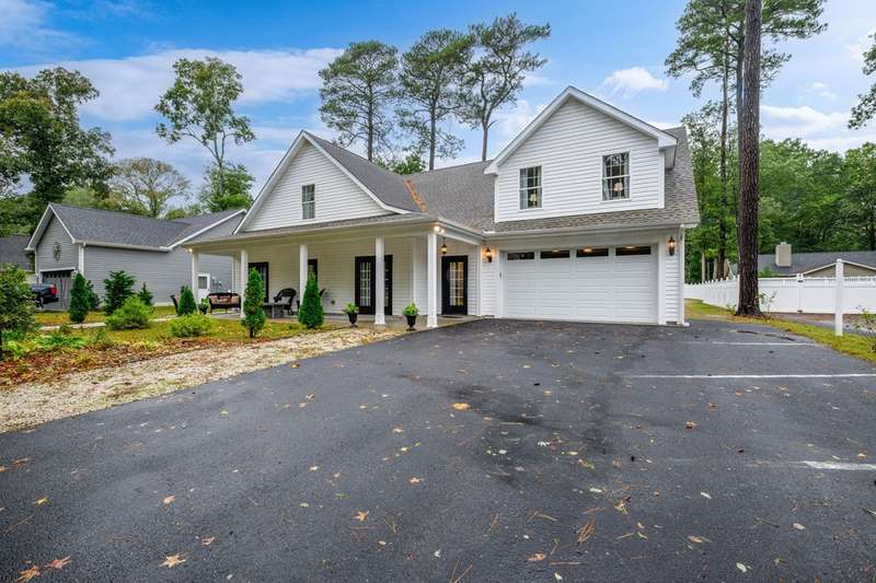 Welcome to elegant living on the water in the sought-after community of Seagrass Plantation. This beautifully updated 4-bedroom, 2-bath home blends luxurious upgrades with serene natural views, offering the perfect combination of comfort, style, and tranquility. Step inside to find a thoughtfully designed 1-level floor plan featuring hardwood flooring throughout the main living areas and the owner's suite. The heart of the home is the extensively renovated kitchen, a true chef's delight, with high-end cabinetry, quartz countertops, soft-close and roll-out drawers, a large peninsula, wall oven, combination microwave/convection oven, wine fridge, and additional custom details. Adjacent to the kitchen is a bright office space with timeless trim and paint details. Enjoy the spacious rear sunroom addition, a perfect retreat to unwind while overlooking the picturesque pond and wildlife framed by mature trees. The views continue outside to a professionally landscaped yard, rear patio - ideal for entertaining or quiet reflection. The Owner's Suite is a sanctuary of its own with a tray ceiling, two large walk-in closets, and double doors opening to a spa-inspired en-suite bath. Indulge in a soaking tub, walk-in tiled shower, dual vanities with smart mirrors, and a private water closet. Plantation shutters throughout the home provide an elegant touch and enhanced privacy. Additional exterior features include a finished garage with drywall, paint, and epoxy flooring for a polished look; a paver-lined driveway; and a tasteful side garbage can enclosure. Accessibility features include a level entryway, wide hallways, and grab bars installed in the showers. You and your guests will enjoy exceptional amenities in this vibrant waterfront community: tennis and pickleball courts, swimming pool, clubhouse, private beach, community gazebo, and included lawn care and trash pickup. Don't miss this opportunity to live in one of southern Delaware's most desirable neighborhoods, just minutes from beaches, dining, and shopping. Schedule your private showing today!