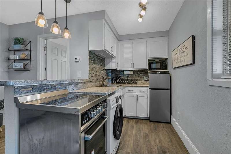 Totally updated 4 bedroom house - Newer kitchen cabinets, countertops, ss appliances, all new flooring, wood & carpet. New bathroom fixtures, all walls newly painted. Laundry room has cabinets & counter space. Deck off kitchen, total chain link fencing. Detached garage with new opener, new AC. Easy walk to Musinger Gardens and splash pad play area. Turn key House.