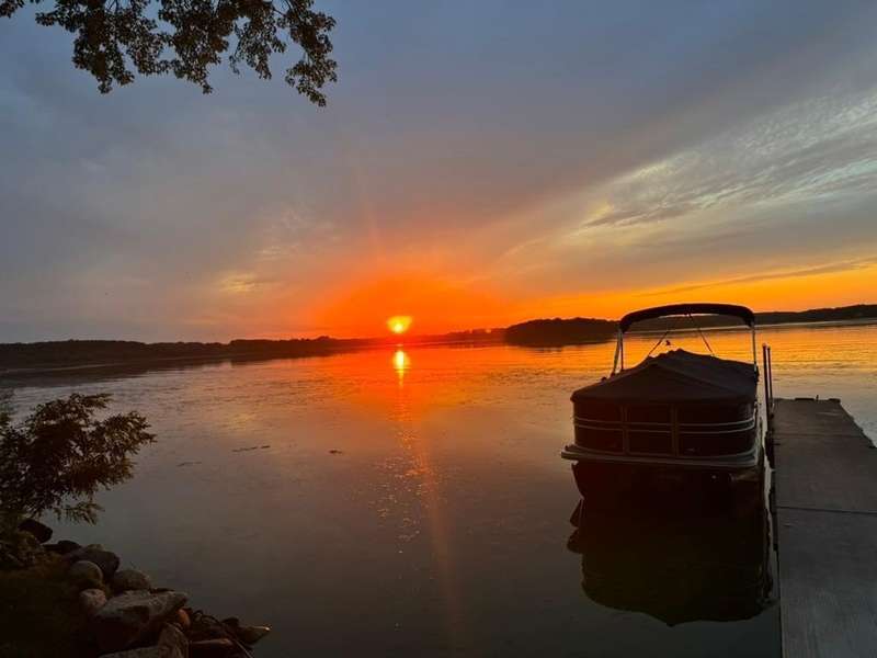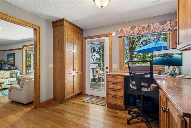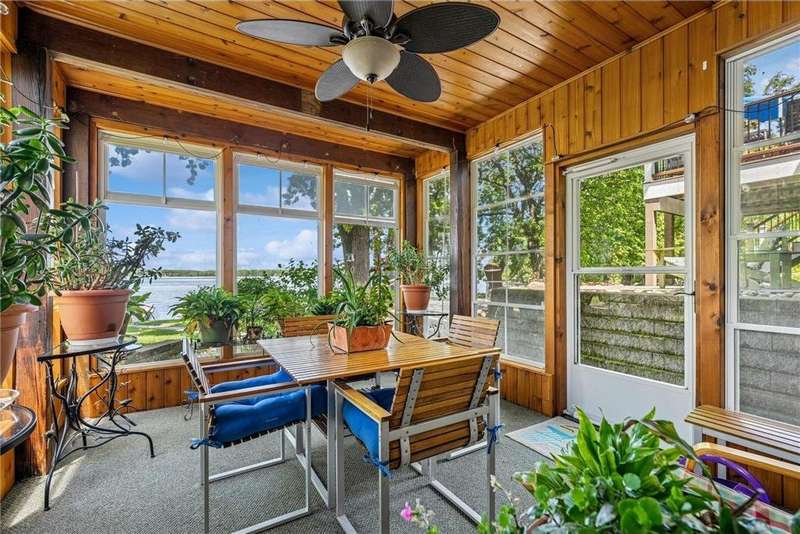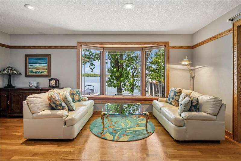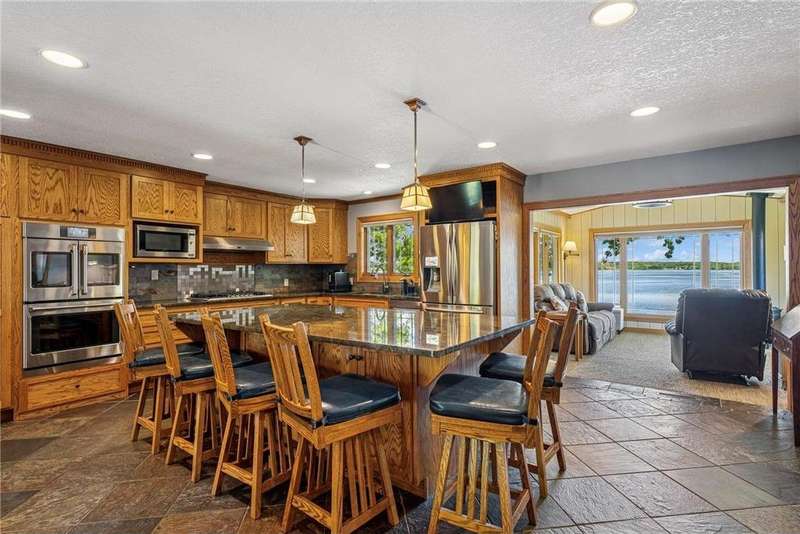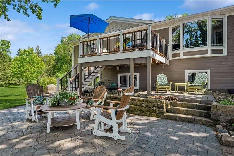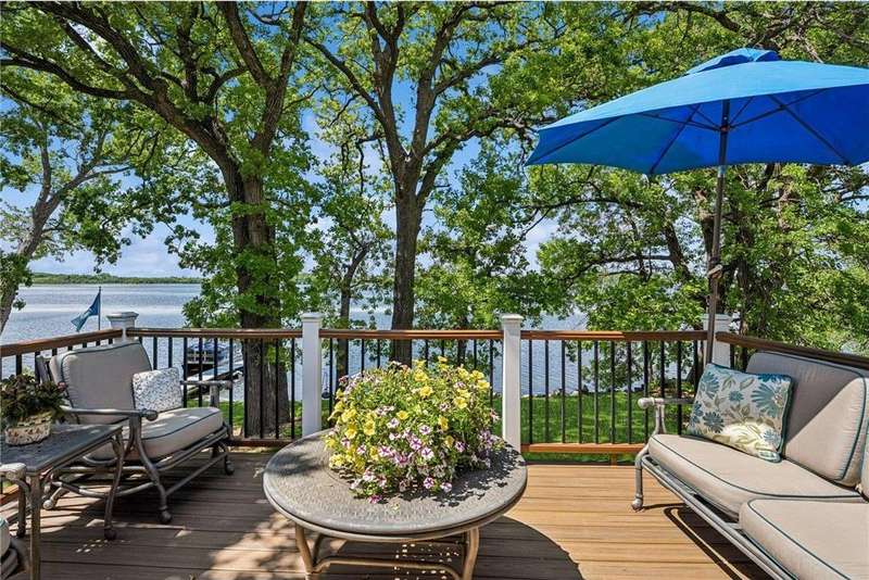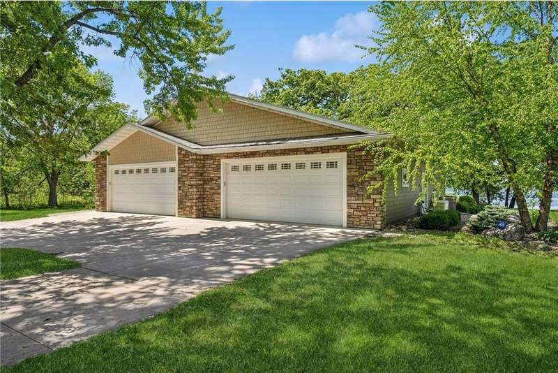 Experience lakeside luxury in this exquisite property, boasting stunning million-dollar waterfront views on a beautifully landscaped acre. This home features high-end finishes throughout, a chef's kitchen designed for entertaining and equipped with smart appliances, a variety of dining spaces to gather in, a spacious family room highlighted by a lovely limestone fireplace, custom built-ins, and ample storage. Upgraded amenities include in-floor heating, a whole-house backup generator, a security system, and a convenient half bath off the garage. Bask in the primary ensuite featuring dual walk-in closets, a soaking tub, a steam shower, with underfloor heating and heated towel bars for added comfort. Four bedrooms have their own walk-in closets and some also have built-ins. Embrace the outdoors with multiple inviting spaces where people can relax, including a sunroom, three-season screened porch, composite deck, and charming patios. The property also offers a four-car garage, an additional oversized single-car garage, a storage shed for lake equipment, a greenhouse, raised bed gardens, and a firepit, all on a level lakeshore. The shoreline is reinforced with rip rap to prevent erosion, and an invisible fence surrounds the yard for added pet security. As a bonus, the dock and outdoor furniture are included. The expansive and quiet 940-acre lake provides year-round recreational opportunities, from serene boat rides and fishing to various water sports and stunning sunsets. Just across the road, are 400 acres of the vast 970-acre Boyd Sartell Wildlife Management Area, with its wooded hillsides offering home to a host of wildlife. Different seasons bring eagles, osprey, deer, fox, pelicans, swans, cormorants, and loons to the lake. Whether you’re an outdoor enthusiast or simply seeking a private and peaceful sanctuary, your dream retreat awaits!
