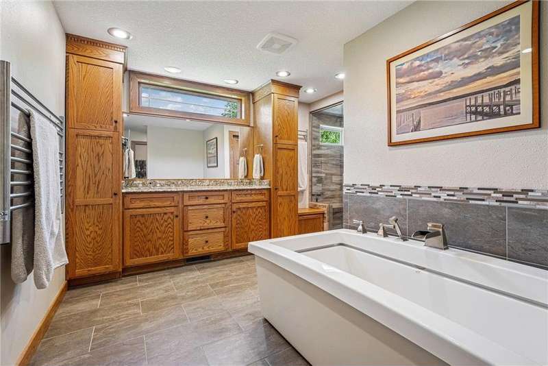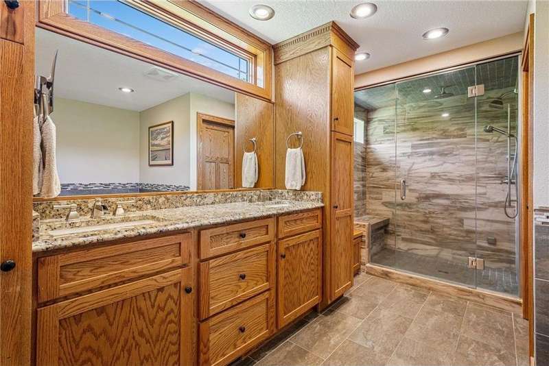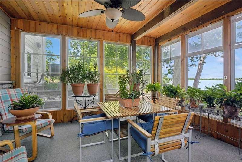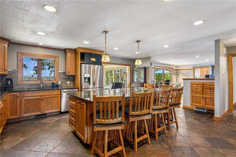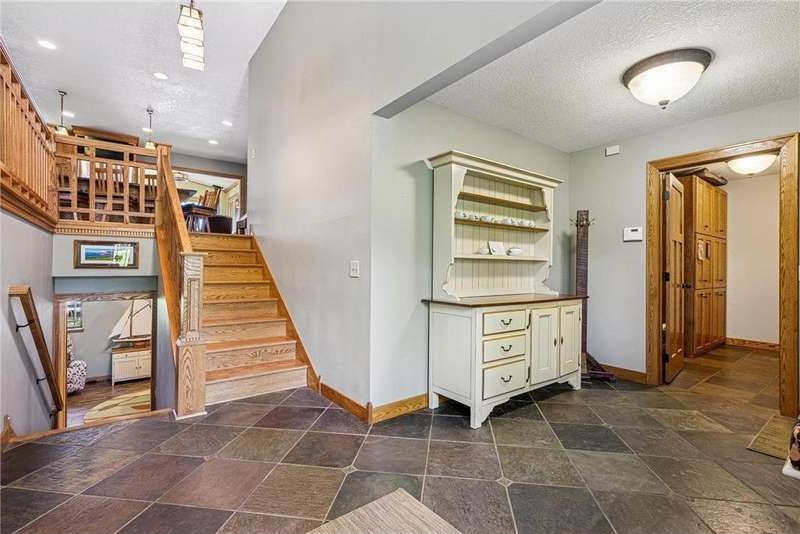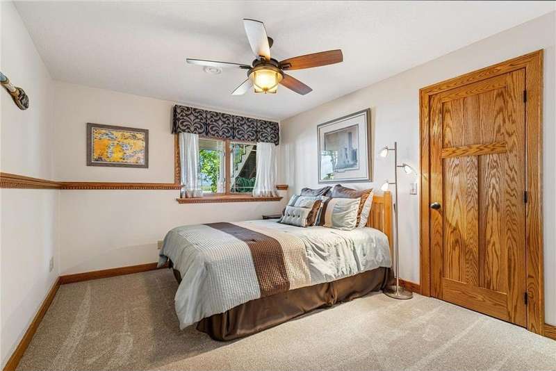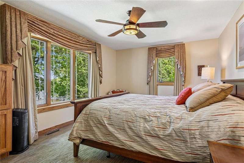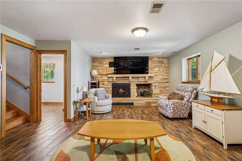 Experience lakeside luxury in this exquisite property, boasting stunning million-dollar waterfront views on a beautifully landscaped acre. This home features high-end finishes throughout, a chef's kitchen designed for entertaining and equipped with smart appliances, a variety of dining spaces to gather in, a spacious family room highlighted by a lovely limestone fireplace, custom built-ins, and ample storage. Upgraded amenities include in-floor heating, a whole-house backup generator, a security system, and a convenient half bath off the garage. Bask in the primary ensuite featuring dual walk-in closets, a soaking tub, a steam shower, with underfloor heating and heated towel bars for added comfort. Four bedrooms have their own walk-in closets and some also have built-ins. Embrace the outdoors with multiple inviting spaces where people can relax, including a sunroom, three-season screened porch, composite deck, and charming patios. The property also offers a four-car garage, an additional oversized single-car garage, a storage shed for lake equipment, a greenhouse, raised bed gardens, and a firepit, all on a level lakeshore. The shoreline is reinforced with rip rap to prevent erosion, and an invisible fence surrounds the yard for added pet security. As a bonus, the dock and outdoor furniture are included. The expansive and quiet 940-acre lake provides year-round recreational opportunities, from serene boat rides and fishing to various water sports and stunning sunsets. Just across the road, are 400 acres of the vast 970-acre Boyd Sartell Wildlife Management Area, with its wooded hillsides offering home to a host of wildlife. Different seasons bring eagles, osprey, deer, fox, pelicans, swans, cormorants, and loons to the lake. Whether you’re an outdoor enthusiast or simply seeking a private and peaceful sanctuary, your dream retreat awaits!