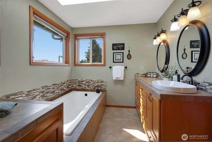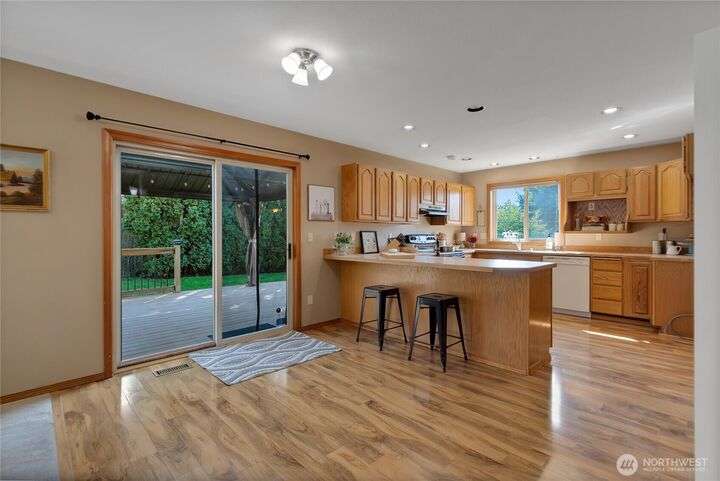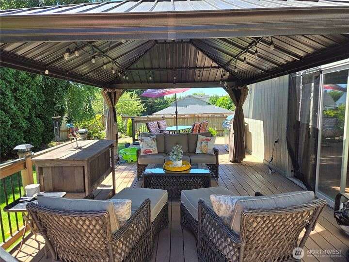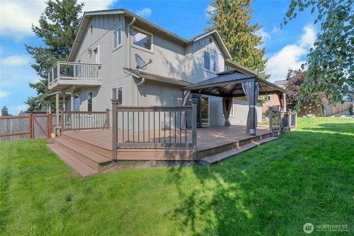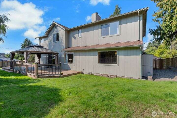 Welcome to this well maintained home in the Heart of University Place! This gem offers Formal Living & Dining Rooms, the kitchen is open to the informal living room w/gas fireplace. PLUS a bonus room on the main floor, 1/2 bath & laundry. The upstairs features the Primary suite w/remodeled bath, soaking tub & tiled shower, a large walk in closet, plus a deck for modest views of the water & Olympics. There are 4 more bedrooms upstairs, all are quite large with big closets. The hall bath has been recently remodeled with a tiled shower. Outside you will love the fenced yard, fire pit, large Trex Deck, Pergola, raised beds, Plum Tree & space to play! Gas Furnace w/ A/C & a 3 car garage! Super close to Shopping, Schools, & all things UP!