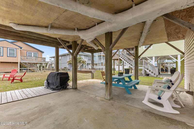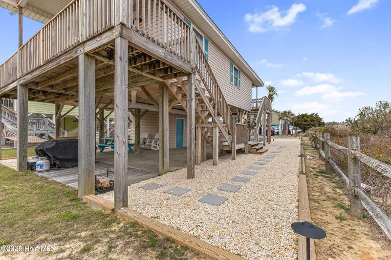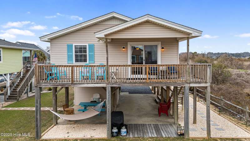 Welcome to your ocean view beach getaway! Nestled on a quiet street just a stone's throw away from the beach! In this prime location, you'll find yourself less than 5 minutes away from convenient beach access. This home is currently an active AirBnB booked through Summer 2025! Step inside this turnkey, fully furnished property and discover a well-appointed interior that perfectly combines comfort and coastal charm. The house features two inviting bedrooms and a shared bathroom. Additionally, an outdoor shower awaits, providing a delightful way to rinse off the beach sand. The roof was replaced in 2021 and there is a spacious outdoor storage room complete with beach chairs, towels, boards and a cart to carry it all to the beach as well as a newer washer and dryer. The true highlight of this beach house is its location, at the end of a dead-end street and next to over 17 acres of natural coastal land full of wildlife such as birds, deer and rabbits. Relax on one of the covered decks and enjoy the ocean views.