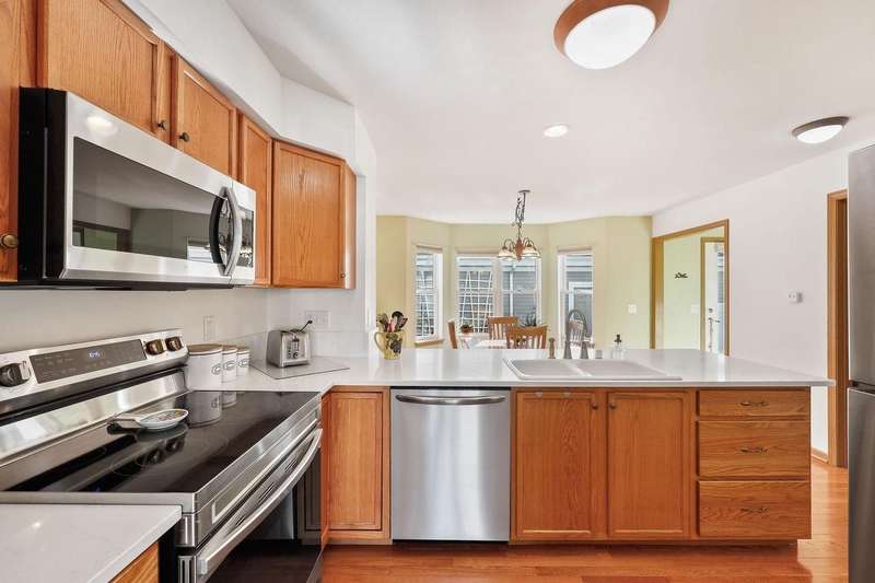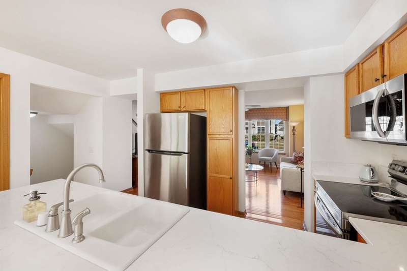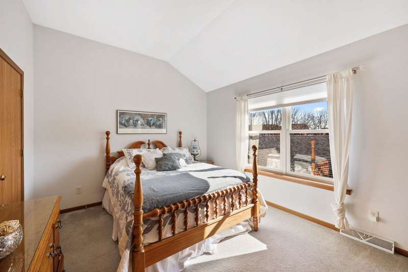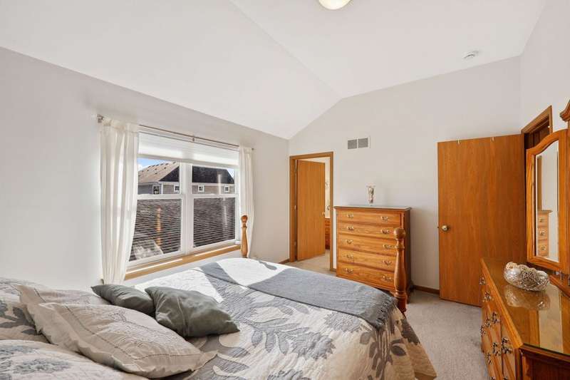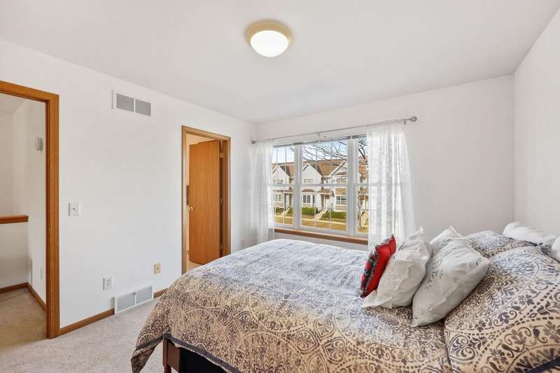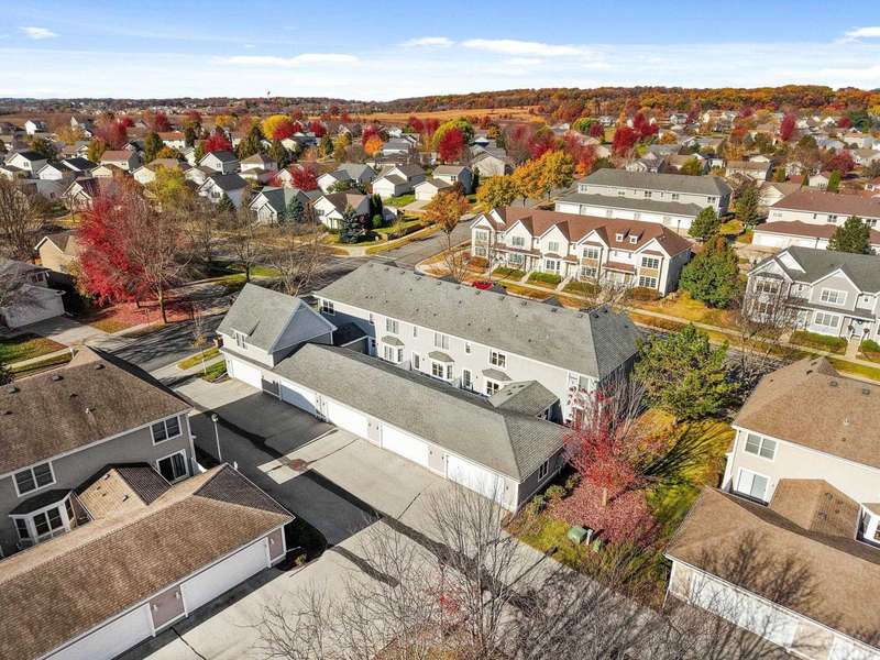 EASY TO LOVE, EASY TO LIVE IN! This inviting 2 bed, 2.5 bath townhouse with private entry offers a perfect blend of style and functionality. The light-filled living room features gleaming wood floors that stretch throughout the entire main level. The modern kitchen with a breakfast bar and new appliances is open to a big dining space. The upstairs features two generous bedrooms, each with an ensuite bath. The primary suite adds a walk-in closet and laundry is perfectly placed just steps from the bedrooms. The unfinished lower level has untapped potential for future development. Outside, enjoy a private patio and a 2-car garage. With its perfect location close to restaurants, shopping, Epic, and the Ice Age Trail, this home lets you live, relax, and entertain with ease!