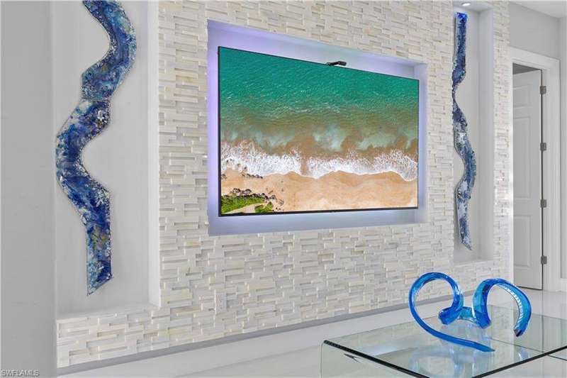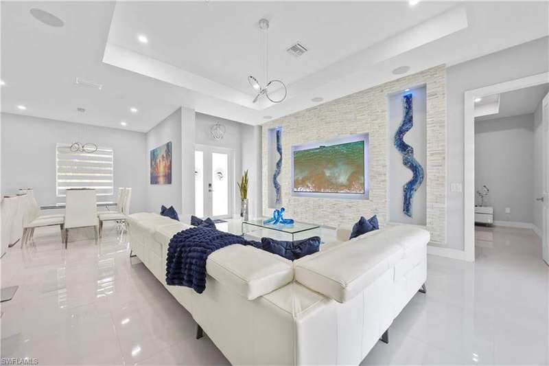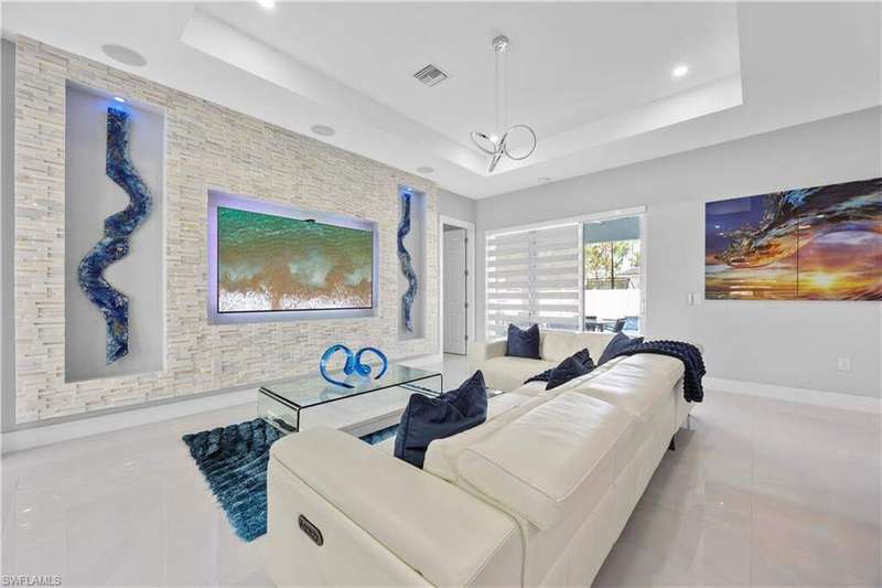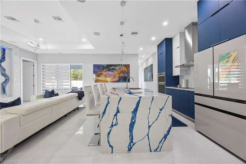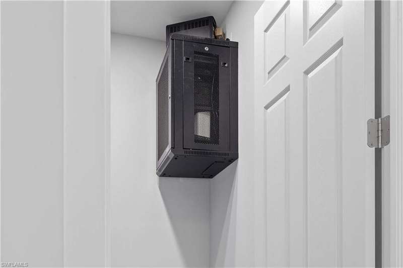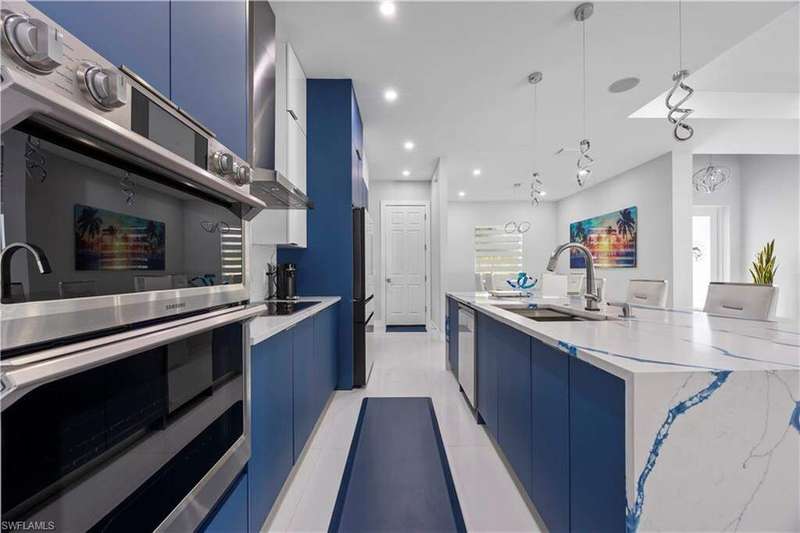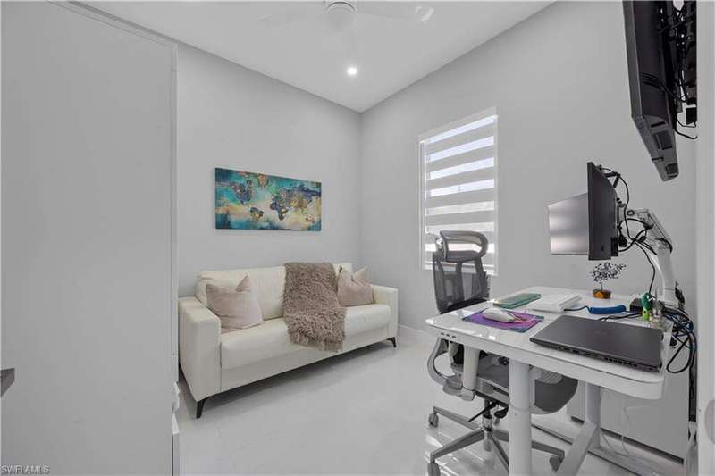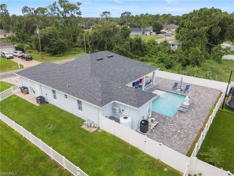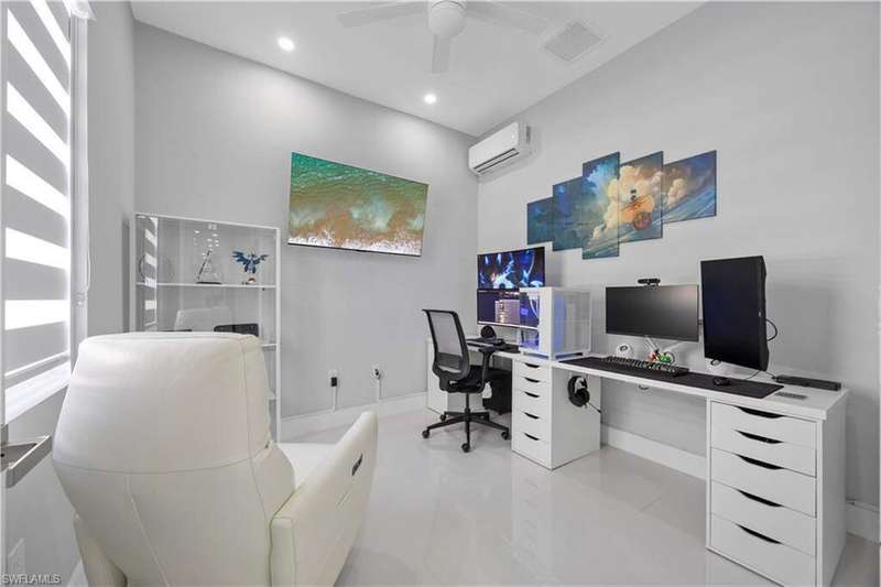 Step into modern luxury with this fully customized home that feels like brand-new construction. Featuring 3-bedroom plus 2 dens, 3-bathroom. Every detail has been thoughtfully designed and meticulously cared for, offering both elegance and functionality. Inside, the open-concept layout is enhanced by impact windows and doors, 89 smart lights throughout the home controlled with Alexa, and an embedded Yamaha surround sound system with five ceiling speakers in the living room. The living room showcases a custom TV wall accommodating up to 85", retractable sliding glass doors that open fully to the lanai, and electronic blinds for added convenience. The chef's kitchen is a true centerpiece, boasting an oversized quartz island with wireless charging outlets, floor-to-ceiling custom cabinetry, a deep hidden pantry, bespoke smart appliances with customizable panels, and a touch and voice-controlled faucet paired with a 32" stainless steel sink. Bathrooms feature quartz countertops, motion-operated LED mirrors, Delta stainless hardware, and in the primary suite, a deep soaking tub and custom closet system. Outdoor living is just as impressive with a heated pool featuring a smart lighting and pump system, a paved backyard, a lanai with Bluetooth ceiling speakers, and a seamless flow between indoor and outdoor spaces. The home also includes a patterned concrete and grass driveway, sprinkler system, two mango trees, and a marble dolphin sculpture valued at $15K. Smart-home enthusiasts will appreciate the Nest thermostat, pre-wired internet and cable throughout, an ethernet switch with backup power, and an extensive surveillance system with 11 cameras that allows for real-time viewing and up to 30 days of recording. The Ring camera operates separately from the surveillance system and requires its own app and subscription, and the total of 11 cameras includes both the Ring and the smart garage camera. Additional upgrades include a smart garage system with camera, impact-rated garage door, external generator hookup, and a whole-house reverse osmosis water system. Practical features such as a retractable attic ladder, a concrete side path for garage and bin access, and remote-controlled fans in all rooms complete the thoughtful design. This is more than a home, it's a lifestyle, blending luxury, technology, and comfort in one extraordinary package.
