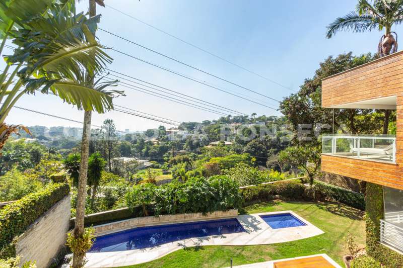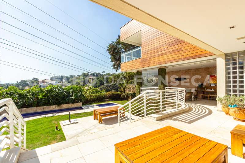 A área externa da casa dispõe de varanda, amplo jardim, piscina adulto e infantil, brinquedoteca, espaço kids e quatro vagas de garagem cobertas.